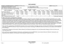 UNCLASSIFIED Exhibit R-2, RDT&E Budget Item Justification: PB 2012 Army DATE: February 2011 APPROPRIATION/BUDGET ACTIVITY 2040: Research, Development, Test & Evaluation, Army BA 3: Advanced Technology Development (ATD) COST ($ in Millions) FY 2010 R-1 ITEM NOMENCLATURE PE 0603008A: Electronic Warfare Advanced Technology FY 2011 FY 2012 Base FY 2012 OCO FY 2012 Total FY 2013 FY 2014 FY 2015 FY 2016 Cost To Complete Total Cost Total Program Element 55.903 50.359 57.963 - 57.963 54.882 55.429 55.962 56.623 Continuing Continuing TR1: TAC C4 TECHNOLOGY INT 36.346 37.862 36.673 - 36.673 34.328 34.455 34.404 34.740 Continuing Continuing TR2: Secure Tactical Information Integration 12.554 12.497 21.290 - 21.290 20.554 20.974 21.558 21.883 Continuing Continuing 7.003 - - - - - - - - Continuing Continuing TR8: C3 DEMONSTRATIONS (CA) A. Mission Description and Budget Item Justification This program element (PE) matures and demonstrates technologies to address the seamless integrated communications challenge with distributed, secure, mobile, wireless, and self-organizing communications networks that will operate reliably in diverse and complex terrains, in all environments. Efforts demonstrate seamlessly integrated communications and information security technologies across all network tiers, ranging from unattended networks and sensors through maneuver elements and airborne and space assets. Project TR1 investigates and leverages external communication technologies and combines technology options in a series of Command, Control, Communications, and Computers, Intelligence, Surveillance, and Reconnaissance (C4ISR) On-The-Move (OTM) demonstrations to measure the potential battlefield effectiveness. Project TR2 provides information security technologies for tactical wireless networks against modern network attacks; and supports collaborative technologies for information sharing between battlefield functional communities. Project TR8 funds congressional special interest items. Work in this PE is complimentary of PE 0602782A (Command, Control, Communications Technology), and fully coordinated with PE 0602783 (Computer and Software Technology), PE 0603772A (Advanced Tactical Computer Science and Sensor Technology), PE 0602120A (Sensors and Electronic Survivability), and PE 0602270A (EW Technology). The cited work is consistent with the Director, Defense Research and Engineering Strategic Plan, the Army Modernization Strategy, and the Army Science and Technology Master Plan. Work is performed by the Army Research, Development, and Engineering Command (RDECOM), Communications-Electronics Research, Development, and Engineering Center (CERDEC), Fort Monmouth, NJ and Aberdeen Proving Ground, MD. Army UNCLASSIFIED Page 1 of 13 R-1 Line Item #36 UNCLASSIFIED Exhibit R-2, RDT&E Budget Item Justification: PB 2012 Army APPROPRIATION/BUDGET ACTIVITY 2040: Research, Development, Test & Evaluation, Army BA 3: Advanced Technology Development (ATD) B. Program Change Summary ($ in Millions) Previous President's Budget Current President's Budget Total Adjustments • Congressional General Reductions • Congressional Directed Reductions • Congressional Rescissions • Congressional Adds • Congressional Directed Transfers • Reprogrammings • SBIR/STTR Transfer • Adjustments to Budget Years Army DATE: February 2011 R-1 ITEM NOMENCLATURE PE 0603008A: Electronic Warfare Advanced Technology FY 2010 FY 2011 FY 2012 Base FY 2012 OCO FY 2012 Total 57.199 55.903 -1.296 50.359 50.359 - - - - - - - - - 53.896 57.963 4.067 - - - 53.896 57.963 4.067 4.067 - 4.067 - 0.153 -1.449 - UNCLASSIFIED Page 2 of 13 R-1 Line Item #36 UNCLASSIFIED Exhibit R-2A, RDT&E Project Justification: PB 2012 Army DATE: February 2011 APPROPRIATION/BUDGET ACTIVITY 2040: Research, Development, Test & Evaluation, Army BA 3: Advanced Technology Development (ATD) COST ($ in Millions) TR1: TAC C4 TECHNOLOGY INT FY 2010 36.346 FY 2011 37.862 R-1 ITEM NOMENCLATURE PE 0603008A: Electronic Warfare Advanced Technology FY 2012 Base 36.673 FY 2012 OCO - FY 2012 Total 36.673 FY 2013 34.328 FY 2014 PROJECT TR1: TAC C4 TECHNOLOGY INT FY 2015 34.455 FY 2016 34.404 Cost To Complete Total Cost 34.740 Continuing Continuing A. Mission Description and Budget Item Justification This project matures and demonstrates key communications, mobile networking technologies, including antennas, radio components, and networking software to enable commanders and individual Soldiers to survive and fight by providing secure, reliable, mobile communications network solutions that function in complex and diverse terrains. Efforts here concentrate on three major goals: to provide a series of technology demonstrations of new and emerging Command, Control, Communications, Computers, Intelligence, Surveillance and Reconnaissance (C4ISR) technology enabled capabilities to significantly reduce risk associated with the network?of-networks concept; to provide critical links in the ability to communicate and move large amounts of information across the force structure in a seamless, integrated manner conducive to a highly mobile manned and unmanned force structure; and to assess the Technology Readiness Level (TRL) of emerging network technologies in an operationally relevant environment. Several tasks are conducted in conjunction with the Defense Advanced Research Projects Agency (DARPA) and the other Services. The cited work is consistent with the Director, Defense Research and Engineering Strategic Plan, the Army Modernization Strategy, and the Army Science and Technology Master Plan. Work in this project is performed by the Army Research, Development, and Engineering Command (RDECOM), Communications-Electronics Research, Development, and Engineering Center (CERDEC), Fort Monmouth, NJ and Aberdeen Proving Ground, MD. B. Accomplishments/Planned Programs ($ in Millions) FY 2010 5.969 Title: Antenna Technologies Description: This effort matures and demonstrates low cost, power efficient, antenn