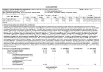 UNCLASSIFIED Exhibit R-2, RDT&E Budget Item Justification: PB 2012 Defense Information Systems Agency APPROPRIATION/BUDGET ACTIVITY 0400: Research, Development, Test & Evaluation, Defense-Wide BA 7: Operational Systems Development COST ($ in Millions) FY 2010 FY 2011 DATE: February 2011 R-1 ITEM NOMENCLATURE PE 0301144K: Joint/Allied Coalition Information Sharing FY 2012 Base FY 2012 OCO FY 2012 Total FY 2013 FY 2014 FY 2015 FY 2016 Cost To Complete Total Cost Total Program Element 10.713 9.379 7.093 - 7.093 6.159 8.147 5.535 5.544 Continuing Continuing NND: Multinational Information sharing 10.713 9.379 7.093 - 7.093 6.159 8.147 5.535 5.544 Continuing Continuing A. Mission Description and Budget Item Justification Through the Combined Enterprise Regional Information Exchange System (CENTRIXS) and Pegasus (formally GRIFFIN), the Multinational Information Sharing (MNIS) Program enables secure sharing of operational and intelligence information and enhances collaboration amongst United States forces, their most trusted allies and additional multinational partners in the ongoing war. This effort also increases overall combat effectiveness by leveraging capabilities and information from all partners and reducing the possibility of fratricide. These coalition information sharing systems are in direct support of the Department of Defense’s (DoD’s) strategic goals to “Win our Nation’s Wars” and “Deter conflict and promote security”. In addition, they are aligned with DISA’s strategy to “accelerate operational effectiveness and efficiency” and “enable sharing of information while staunchly defending it.” The MNIS program currently supports five Combatant Commands (COCOMs) with connectivity in 89 nations and North America Treaty Organization (NATO), 11 Bilateral agreements and 150 sites with in excess of 80,000 users worldwide. The MNIS also evaluates new technologies and develops tactics, techniques and procedures that facilitate the transition of technologies and capabilities into operational multinational information sharing capability enhancements. This is accomplished through the Combined Federated Battle laboratory Network (CFBLNet) and is in direct support of both CENTRIXS and Pegasus. The final component of the MNIS program, CENTRIXS Cross Enclave Requirement (CCER), in its objective state will move from the initial, converged enclave architecture serving 15% of the Communities of Interest (COI) with three basic services to 40+ COIs (virtually 100% of known requirements) with a full complement of collaboration tools supporting coordinated action and full situational awareness. If FY 2012 funding is reduced, it will delay the attainment of information exchange between multiple coalition networks, further extend a current capability shortfall in transferring secure information in a trusted way between members of separate coalition forces, delay attainment of objective CENTRIXS operational capability and necessitate additional funding to support the legacy CENTRIXS networks. B. Program Change Summary ($ in Millions) Previous President's Budget Current President's Budget Total Adjustments • Congressional General Reductions • Congressional Directed Reductions • Congressional Rescissions • Congressional Adds • Congressional Directed Transfers • Reprogrammings • SBIR/STTR Transfer • OtherAdjustments Defense Information Systems Agency FY 2010 FY 2011 FY 2012 Base FY 2012 OCO FY 2012 Total 10.722 10.713 -0.009 9.379 9.379 - - - - - - - - - 5.355 7.093 1.738 - - - 5.355 7.093 1.738 1.738 - 1.738 - - - -0.009 UNCLASSIFIED Page 1 of 12 R-1 Line Item #193 UNCLASSIFIED Exhibit R-2, RDT&E Budget Item Justification: PB 2012 Defense Information Systems Agency APPROPRIATION/BUDGET ACTIVITY 0400: Research, Development, Test & Evaluation, Defense-Wide BA 7: Operational Systems Development DATE: February 2011 R-1 ITEM NOMENCLATURE PE 0301144K: Joint/Allied Coalition Information Sharing Change Summary Explanation Funding decrease in FY 2010 of -$0.009 is the result of shifting of priorities to meet new Department goals. Funding increase in FY 2012 of +$1.738 is the net result of a +$2.100 to support Unclassified Information Sharing (UIS). The UIS capability will use existing systems to meet the combatant commands requirement for tools and technology to facilitate collaboration with non-traditional partners for humanitarian missions. The reduction of -$0.362 is due to Economic Assumptions and a reduction of the testing baseline for CENTRIXS, CCER and CFBLNet. As planned, CCER Phase 2 will complete IOC in FY11 which will significantly reduce its testing requirements in FY12. Defense Information Systems Agency UNCLASSIFIED Page 2 of 12 R-1 Line Item #193 UNCLASSIFIED Exhibit R-2A, RDT&E Project Justification: PB 2012 Defense Information Systems Agency APPROPRIATION/BUDGET ACTIVITY 0400: Research, Development, Test & Evaluation, Defense-Wide BA 7: Operational Systems Development COST ($ in Millions) NND: Multinational Information sharing FY 2010 10.713 FY 2011 9.379 DATE: February 2011 R-1 ITEM NOMENCLATURE PROJECT PE 0301144K: Joint/Allied Coalition Information NND: Multinational Information sharing Sharing FY 2012 Base 7.093 FY 2012 OCO - FY 2012 Total 7.093 FY 2013 6.159 FY 2014 8.147 FY 2015 5.535 FY 2016 Cost To Complete Total Cost 5.544 Continuing Continuing Quantity of RDT&E Articles A. Mission Description and Budget Item Justification The Multinational Information Sharing (MNIS) Program is a portfolio of three coalition information sharing capabilities designed to enable and improve sharing of operational and intelligence information among U.S. forces and our multinational partners. -First, Combined Enterprise Regional Information Exchange System (CENTRIXS), supports intelligence and classified operations and information exchange and sharing at the Secret Releasable (REL) level. There are multiple, cryptographically-isolated CENTRIXS enclaves serving various communit