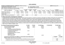 UNCLASSIFIED Exhibit R-2, RDT&E Budget Item Justification: PB 2012 Air Force DATE: February 2011 APPROPRIATION/BUDGET ACTIVITY 3600: Research, Development, Test & Evaluation, Air Force BA 3: Advanced Technology Development (ATD) COST ($ in Millions) FY 2010 FY 2011 R-1 ITEM NOMENCLATURE PE 0603680F: Manufacturing Technologies FY 2012 Base FY 2012 OCO FY 2012 Total FY 2013 FY 2014 FY 2015 FY 2016 Cost To Complete Total Cost Total Program Element 49.507 39.701 40.103 - 40.103 40.534 41.191 41.826 42.511 Continuing Continuing 635280: Manufacturing Technologies 45.632 37.701 39.119 - 39.119 40.534 41.191 41.826 42.511 Continuing Continuing 3.875 2.000 0.984 - 0.984 - - - - Continuing Continuing 635281: Manufacturing Readiness A. Mission Description and Budget Item Justification The Manufacturing Technology (ManTech) program executes technical programs to maintain and develop an affordable and reliable industrial base and manufacturing capability that will be responsive to warfighter needs. The program develops and improves manufacturing technologies and processes to enable cost reduction, improve component and system quality, and enhance industrial capability. Further, value stream modifications and manufacturing throughput improvements are effected to shorten cycle times of weapon systems during design, development, production and sustainment. ManTech objectives are conducted through industrial partnerships which enable the demonstration of manufacturing technologies for existing weapon system upgrades and/or for new warfighter systems. Efforts in the program have been coordinated through the Reliance 21 process to harmonize efforts and eliminate duplication. Manufacturing Technologies is in Budget Activity 3, Advanced Technology Development, since it develops and demonstrates manufacturing technologies for existing upgrades and/or new system developments that have military utility and address warfighter needs. B. Program Change Summary ($ in Millions) Previous President's Budget Current President's Budget Total Adjustments • Congressional General Reductions • Congressional Directed Reductions • Congressional Rescissions • Congressional Adds • Congressional Directed Transfers • Reprogrammings • SBIR/STTR Transfer • Other Adjustments FY 2010 FY 2011 FY 2012 Base FY 2012 OCO FY 2012 Total 50.502 49.507 -0.995 39.701 39.701 - - - - - - - - - 40.359 40.103 -0.256 - - - 40.359 40.103 -0.256 -0.256 - -0.256 -0.001 - -0.994 - Congressional Add Details ($ in Millions, and Includes General Reductions) Project: 635280: Manufacturing Technologies Air Force FY 2010 FY 2011 Congressional Add: Laser Peening for Friction Stir Welded Aerospace Structures 1.593 - Congressional Add: Production of Nanocomposites for Aerospace Applications 1.593 - UNCLASSIFIED Page 1 of 8 R-1 Line Item #25 UNCLASSIFIED Exhibit R-2, RDT&E Budget Item Justification: PB 2012 Air Force APPROPRIATION/BUDGET ACTIVITY 3600: Research, Development, Test & Evaluation, Air Force BA 3: Advanced Technology Development (ATD) DATE: February 2011 R-1 ITEM NOMENCLATURE PE 0603680F: Manufacturing Technologies Congressional Add Details ($ in Millions, and Includes General Reductions) FY 2010 0.797 Congressional Add: Mobil Laser Systems for Aircraft Structures (MLSAS) Air Force FY 2011 - Congressional Add: Wire Integreity Technology 1.593 - Congressional Add: Next Generation Casting Initiative 3.983 - Congressional Add: Automated Processing of Advanced Low Observables (RAPALO) 1.195 - Congressional Add Subtotals for Project: 635280 10.754 - Congressional Add Totals for all Projects 10.754 - UNCLASSIFIED Page 2 of 8 R-1 Line Item #25 UNCLASSIFIED Exhibit R-2A, RDT&E Project Justification: PB 2012 Air Force DATE: February 2011 APPROPRIATION/BUDGET ACTIVITY 3600: Research, Development, Test & Evaluation, Air Force BA 3: Advanced Technology Development (ATD) COST ($ in Millions) 635280: Manufacturing Technologies FY 2010 45.632 FY 2011 37.701 R-1 ITEM NOMENCLATURE PE 0603680F: Manufacturing Technologies FY 2012 Base 39.119 FY 2012 OCO - FY 2012 Total 39.119 FY 2013 FY 2014 40.534 41.191 PROJECT 635280: Manufacturing Technologies FY 2015 FY 2016 41.826 Cost To Complete Total Cost 42.511 Continuing Continuing A. Mission Description and Budget Item Justification The Manufacturing Technology (ManTech) program executes technical programs to maintain and develop an affordable and reliable industrial base and manufacturing capability that will be responsive to warfighter needs. The projects include development and improvement of manufacturing technologies and processes; collaboration with government program offices, industry, and academia; investments in generic technologies that can be applied to different applications, cost-sharing; multiple system/customer applications; potential for significant return on investment; and customer commitment to implement. To this end, ManTech develops and demonstrates advanced manufacturing processes and technologies to reduce costs, improve quality/capability, and shorten cycle times of weapon systems during design, development, production, and sustainment. Where mature processes are not available, laboratory-developed and demonstrated initial process capabilities are made available for transition into weapon system programs. ManTech objectives are conducted through partnerships with all industry levels, from large prime contractors to small material and parts vendors. B. Accomplishments/Planned Programs ($ in Millions) FY 2010 FY 2011 13.632 15.080 Title: Major Thrust 1 Description: Develop and implement cost-effective maintenance, repair, and manufacturing technologies for sustainment of Air Force weapon systems. FY 2010 Accomplishments: Continued cost-effective repair and manufacturing technologies for affordable sustainment of both aircraft and turbine engine components. Continued assessments and manufacturing technology development to reduce logistic support costs, lead times for high value supply ch