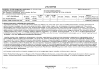 UNCLASSIFIED Exhibit R-2, RDT&E Budget Item Justification: PB 2012 Air Force DATE: February 2011 APPROPRIATION/BUDGET ACTIVITY 3600: Research, Development, Test & Evaluation, Air Force BA 7: Operational Systems Development COST ($ in Millions) FY 2010 FY 2011 R-1 ITEM NOMENCLATURE PE 0207445F: FIGHTER TACTICAL DATA LINK FY 2012 Base FY 2012 OCO FY 2012 Total FY 2013 FY 2014 FY 2015 FY 2016 Cost To Complete Total Cost Total Program Element 66.592 85.492 - - - - - - - Continuing Continuing 675043: Fighter Tactical Data Link 66.592 85.492 - - - - - - - Continuing Continuing A. Mission Description and Budget Item Justification Tactical Data Links (TDL), as a subset of the broader Aerial Layer Network, are used in both peace time and combat environments to exchange information such as fixed formatted messages, data, radar tracks, target information, platform status, imagery, free text messaging and command assignments. TDLs provide interoperability, local and global connectivity, and situational awareness to the user when operating under rapidly changing operational conditions. TDLs increase mission effectiveness, providing enhanced situational awareness, positive combat identification of aircraft in the network, correlation of on- and off-board sensor data, digital machine to machine target and threat information sharing; enabling time critical targeting and other mission assignment tasking. TDLs are used by all Service Theater Command and Control (C2) elements, weapons platforms, and sensors. TDLs include, but are not limited to: Link 16, Link 11, Situational Awareness Data Link (SADL), Variable Message Format (VMF), Intra-Flight Data Link (IFDL), and other Advanced Tactical Data Link technologies, such as Tactical Targeting Network Technology (TTNT), and Multifunction Advanced Data Link (MADL). This effort provides critical capability and enhancements to the Aerial Layer Network by creating common development, integration and interoperability among all Air Force fighter platforms including but not limited to A-10, F-15A-E, F-16 Blocks 30/40/50, F-22A, and F-35 aircraft. The funds associated with the Fighter TDL PE ensure the Air Force (AF) fighter fleet maintains standardization; develops interoperable data link exchanges; and enables Global Strike (GS), Global Persistent Attack (GPA), Offensive and Defensive Counterair (OCA and DCA), Suppression of Enemy Air Defenses (SEAD), and Destruction of Enemy Air Defenses (DEAD) missions. Incorporation of TDLs on the fighter fleet also expands Line of Sight (LOS) and Beyond Line of Sight (BLOS) data link connectivity. Additional efforts aimed at maintaining interoperability amongst the platforms in this portfolio include: AF and Joint interoperability certification testing, waveform crypto modernization, updates to the Link-16 message standard (MIL-STD-6016D) and integration of applicable Interface Change Proposals (ICPs) within platform Operational Flight Programs and incorporating Interoperable Systems Management and Requirements Transformation (iSMART); a process which enables network centric interoperability assessments to be made more quickly and effectively. Activities also include studies and analysis to support both current program planning and execution and future program planning. Fighter Tactical Data Link program is in Budget Activity 7, Operational System Development, because this budget activity includes development efforts to upgrade systems that have been fielded or have received approval for full rate production and anticipate production funding in the current or subsequent fiscal year. Air Force UNCLASSIFIED Page 1 of 10 R-1 Line Item #151 UNCLASSIFIED Exhibit R-2, RDT&E Budget Item Justification: PB 2012 Air Force APPROPRIATION/BUDGET ACTIVITY 3600: Research, Development, Test & Evaluation, Air Force BA 7: Operational Systems Development B. Program Change Summary ($ in Millions) Previous President's Budget Current President's Budget Total Adjustments • Congressional General Reductions • Congressional Directed Reductions • Congressional Rescissions • Congressional Adds • Congressional Directed Transfers • Reprogrammings • SBIR/STTR Transfer • Other Adjustments DATE: February 2011 R-1 ITEM NOMENCLATURE PE 0207445F: FIGHTER TACTICAL DATA LINK FY 2010 FY 2011 FY 2012 Base FY 2012 OCO FY 2012 Total 66.872 66.592 -0.280 85.492 85.492 - - - - - - - - - 169.748 - -169.748 - - - 169.748 - -169.748 -169.748 - -169.748 - - - -0.280 Change Summary Explanation FY12 funding realigned to higher AF priorities. Air Force UNCLASSIFIED Page 2 of 10 R-1 Line Item #151 UNCLASSIFIED Exhibit R-2A, RDT&E Project Justification: PB 2012 Air Force DATE: February 2011 APPROPRIATION/BUDGET ACTIVITY 3600: Research, Development, Test & Evaluation, Air Force BA 7: Operational Systems Development COST ($ in Millions) 675043: Fighter Tactical Data Link Quantity of RDT&E Articles FY 2010 R-1 ITEM NOMENCLATURE PE 0207445F: FIGHTER TACTICAL DATA LINK FY 2012 Base FY 2011 FY 2012 OCO FY 2012 Total FY 2013 PROJECT 675043: Fighter Tactical Data Link FY 2014 FY 2015 Cost To Complete Total Cost FY 2016 66.592 85.492 - - - - - - 0 0 0 0 0 0 0 0 - Continuing Continuing 0 A. Mission Description and Budget Item Justification Tactical Data Links (TDL), as a subset of the broader Aerial Layer Network, are used in both peace time and combat environments to exchange information such as fixed formatted messages, data, radar tracks, target information, platform status, imagery, free text messaging and command assignments. TDLs provide interoperability, local and global connectivity, and situational awareness to the user when operating under rapidly changing operational conditions. TDLs increase mission effectiveness, providing enhanced situational awareness, positive combat identification of aircraft in the network, correlation of on- and off-board sensor data, digital machine to machine target and threat information sharing; enabling time critical targeting and ot