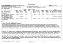UNCLASSIFIED DATE: February 2012 Exhibit R-2, RDT&E Budget Item Justification: PB 2013 Army APPROPRIATION/BUDGET ACTIVITY 2040: Research, Development, Test & Evaluation, Army BA 2: Applied Research COST ($ in Millions) FY 2011 FY 2012 R-1 ITEM NOMENCLATURE PE 0602624A: Weapons and Munitions Technology FY 2013 Base FY 2013 OCO FY 2013 Total FY 2014 FY 2015 FY 2016 FY 2017 Cost To Complete Total Cost Total Program Element 41.368 54.727 35.218 - 35.218 33.613 34.124 34.884 34.198 Continuing Continuing H18: Weapons & Munitions Technologies 18.728 11.945 16.596 - 16.596 12.700 13.011 12.671 12.795 Continuing Continuing H19: ASYMMETRIC & COUNTER MEASURE TECHNOLOGIES 11.386 16.207 7.762 - 7.762 9.049 8.989 8.819 8.886 Continuing Continuing - 14.976 - - - - - - - Continuing Continuing 11.254 11.599 10.860 - 10.860 11.864 12.124 13.394 12.517 Continuing Continuing H1A: WEAPONS & MUNITIONS TECH PROGRAM INITIATIVE H28: WARHEADS/ ENERGETICS TECHNOLOGIES Note FY12 funding increase is a congressional add. A. Mission Description and Budget Item Justification This program element (PE) investigates, designs and evaluates enabling technology to develop lethal and nonlethal weapons and munitions with increased performance and the potential for lower weight, reduced size, and improved affordability. Project H18 focuses on weapons and munitions development. Project 19 researches technologies to maintain the lethality of US weapons as well as directed energy (DE) capabilities and subsystems to support the weaponization of high power microwave (HPM), and short pulse lasers. Project H28 evaluatesH28 evaluates munition components such as fuzes, power, warheads with tailorable effects, and insensitive munition compliant energetic materials. Work in this PE is related to, and fully coordinated with, PE 0602303A (Aviation Advanced Technology), 0602105A (Materials Technology), PE 0602618A (Ballistics Technology), PE 0602772A (Advanced Tactical Computer Science and Sensor Technology), PE 0602782A (Command, Control, Communications Technology), PE 0603004A (Weapons and Munitions Advanced Technology), and, PE 0603008A (Electronic Warfare Advanced Technology). The cited work is consistent with the Assistant Secretary of Defense for Research and Engineering science and technology priority focus areas and the Army Modernization Strategy. Work in this PE is primarily performed by the Armament Research, Development, and Engineering Center (ARDEC) at Picatinny Arsenal, NJ, in cooperation with the Army Research Laboratory (ARL) at Aberdeen Proving Ground, MD; the Communications-Electronics Research, Development, and Engineering Center (CERDEC), Fort Belvoir, VA;, the Tank Automotive Research, Development, and Engineering Center (TARDEC), Warren, MI; and the Aviation and Missile Research, Development, and Engineering Center (AMRDEC), Huntsville, AL. PE 0602624A: Weapons and Munitions Technology Army UNCLASSIFIED Page 1 of 15 R-1 Line #17 UNCLASSIFIED DATE: February 2012 Exhibit R-2, RDT&E Budget Item Justification: PB 2013 Army APPROPRIATION/BUDGET ACTIVITY 2040: Research, Development, Test & Evaluation, Army BA 2: Applied Research B. Program Change Summary ($ in Millions) Previous President's Budget Current President's Budget Total Adjustments • Congressional General Reductions • Congressional Directed Reductions • Congressional Rescissions • Congressional Adds • Congressional Directed Transfers • Reprogrammings • SBIR/STTR Transfer • Adjustments to Budget Years • Other Adjustments 1 PE 0602624A: Weapons and Munitions Technology Army R-1 ITEM NOMENCLATURE PE 0602624A: Weapons and Munitions Technology FY 2011 FY 2012 FY 2013 Base FY 2013 OCO FY 2013 Total 42.645 41.368 -1.277 - - - - - - -0.825 - -0.452 39.813 54.727 14.914 - - - 15.000 - - - - -0.086 37.740 35.218 -2.522 - - - 37.740 35.218 -2.522 -2.522 - - - -2.522 - UNCLASSIFIED Page 2 of 15 R-1 Line #17 UNCLASSIFIED DATE: February 2012 Exhibit R-2A, RDT&E Project Justification: PB 2013 Army APPROPRIATION/BUDGET ACTIVITY 2040: Research, Development, Test & Evaluation, Army BA 2: Applied Research COST ($ in Millions) H18: Weapons & Munitions Technologies FY 2011 FY 2012 18.728 11.945 R-1 ITEM NOMENCLATURE PE 0602624A: Weapons and Munitions Technology FY 2013 Base 16.596 FY 2013 OCO - FY 2013 Total 16.596 FY 2014 12.700 PROJECT H18: Weapons & Munitions Technologies FY 2015 13.011 FY 2016 12.671 FY 2017 Cost To Complete Total Cost 12.795 Continuing Continuing A. Mission Description and Budget Item Justification This project designs, investigates, and evaluates component technologies to enable affordable precision munitions as well as provide increased lethality and performance with reduced logistics and advanced direct/indirect fire capabilities. This project sustains Army science and technology efforts supporting the Ground portfolio. Work in this project is related to, and fully coordinated with efforts in projects H19 and H28 (also in PE 0602624A), PE 0602105A (Materials Technology), PE 0602303A (Aviation Advanced Technology), PE 0602618A (Ballistics Technology), PE 0602782A (Command Control, Communication Technology), project 232 in PE 0603004A (Weapons and Munitions Advanced Technology), PE 0603008A (Electronic Warfare Advanced Technology), and PE 0603772A (Advanced Tactical Computer Science and Sensor Technology). The cited work is consistent with the Assistant Secretary of Defense for Research and Engineering priority focus areas and the Army Modernization Strategy Work in this project is performed by the Armament Research, Development, and Engineering Center (ARDEC), at Picatinny Arsenal, NJ in collaboration with a the Army Research Laboratory (ARL), Aberdeen Proving Ground, MD; the Aviation and Missile Research, Development, and Engineering Center (AMRDEC), Huntsville, AL; and the Communications-Electronics Research, Development, and Engineering Center (CERDEC), Fort Belvoir, VA. B. Accomplishments/Planned Programs ($ in Millions) FY 2011 3.150 Title