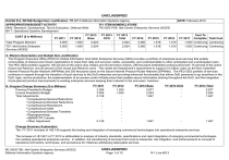 UNCLASSIFIED DATE: February 2012 Exhibit R-2, RDT&E Budget Item Justification: PB 2013 Defense Information Systems Agency APPROPRIATION/BUDGET ACTIVITY 0400: Research, Development, Test & Evaluation, Defense-Wide BA 7: Operational Systems Development COST ($ in Millions) FY 2011 FY 2012 R-1 ITEM NOMENCLATURE PE 0303170K: Net-Centric Enterprise Services (NCES) FY 2013 Base FY 2013 OCO FY 2013 Total FY 2014 FY 2015 FY 2016 FY 2017 Cost To Complete Total Cost Total Program Element 3.505 1.830 2.924 - 2.924 3.360 1.516 1.515 1.535 Continuing Continuing T57: Net-Centric Enterpise Services (NCES) 3.505 1.830 2.924 - 2.924 3.360 1.516 1.515 1.535 Continuing Continuing A. Mission Description and Budget Item Justification The Program Executive Office (PEO) for Global Information Grid (GIG) Enterprise Services (GES) provides a portfolio of enterprise level services that enable communities of interest and mission applications to make their data and services visible, accessible, and understandable to other anticipated and unanticipated users. The PEO GES portfolio supports 100 percent of the active duty military and Government civilians; 258 thousand embedded contract personnel; 75 percent of the active Guard and Reserve; and 25 percent of the Guard and Reserve users. This meets the Department’s requirement to support 2.5 million users on the Non-Classified Internet Protocol Router Network (NIPRNet) and 300 thousand users on the Secret Internet Protocol Router Network (SIPRNet). The PEO GES portfolio of services continues to expand through the transition of local services to the DoD enterprise and providing enhanced functionality that allows DoD personnel to go anywhere in the DoD, login, and be productive, the implementation of an access control infrastructure that enables secure information sharing throughout the DoD, and the integration of pre-planned product improvements to existing enterprise services keeping them relevant to the end-users’ missions. B. Program Change Summary ($ in Millions) Previous President's Budget Current President's Budget Total Adjustments • Congressional General Reductions • Congressional Directed Reductions • Congressional Rescissions • Congressional Adds • Congressional Directed Transfers • Reprogrammings • SBIR/STTR Transfer • Other Adjustment FY 2011 FY 2012 FY 2013 Base FY 2013 OCO FY 2013 Total 3.366 3.505 0.139 - - - - - - - 0.139 1.830 1.830 - - - - - - - - - 0.977 2.924 1.947 - - - 0.977 2.924 1.947 1.947 - 1.947 Change Summary Explanation The FY 2011 increase of +$0.139 supports the testing and integration of emerging commercial technologies into operational enterprise services. The increase of +$1.947 in FY 2013 is attributable to analysis of industry standards, specifications and rapid integration of emerging commercial technologies into existing operational enterprise service. In addition, the transitioning of services from local to enterprise; risk mitigation; and enhancements to concept of operations and tactics, techniques, and procedures for initiatives addressing deployable services. PE 0303170K: Net-Centric Enterprise Services (NCES) Defense Information Systems Agency UNCLASSIFIED Page 1 of 10 R-1 Line #213 UNCLASSIFIED DATE: February 2012 Exhibit R-2A, RDT&E Project Justification: PB 2013 Defense Information Systems Agency APPROPRIATION/BUDGET ACTIVITY 0400: Research, Development, Test & Evaluation, Defense-Wide BA 7: Operational Systems Development COST ($ in Millions) T57: Net-Centric Enterpise Services (NCES) FY 2011 3.505 FY 2012 1.830 R-1 ITEM NOMENCLATURE PROJECT PE 0303170K: Net-Centric Enterprise Services T57: Net-Centric Enterpise Services (NCES) (NCES) FY 2013 Base 2.924 FY 2013 OCO - FY 2013 Total 2.924 FY 2014 3.360 FY 2015 1.516 FY 2016 1.515 FY 2017 Cost To Complete Total Cost 1.535 Continuing Continuing Quantity of RDT&E Articles A. Mission Description and Budget Item Justification The Program Executive Office (PEO) for Global Information Grid (GIG) Enterprise Services (GES) continues to expand their portfolio of services that currently includes the capabilities delivered by the Net-Centric Enterprise Services (NCES) Program, a resilient and flexible access control infrastructure that enables secure information sharing in the DoD, and the transition and operationalization of local services into the larger Department of Defense (DoD) enterprise. Critical Warfighter, Business, and Intelligence Mission Area services within the PEO GES portfolio include an enterprise Collaboration capability supporting over 500,000 DoD users, User Access (Portal) supporting two million users, Enterprise Search that exposes data sources throughout the DoD, and Service Oriented Architecture Foundation (SOAF). The PEO GES portfolio also includes the Strategic Knowledge Integration Web (SKIWeb) providing decision and event management support to all levels of a widespread user-base that ranges from the Combatant Commanders to the Joint Staff to Coalition partners on the SIPRNet and DoD Visitor that allows personnel to “go anywhere in the DoD, login, and be productive.” The individual suite of capabilities within the portfolio of services provides the user with the flexibility to couple the services in varying ways to support their mission needs. This flexibility provides unprecedented access to web and application content, critical imagery, intelligence and warfighter information, and stores critical data in a secure environment. The PEO GES portfolio of enterprise services delivers tangible benefits to the Department by providing capabilities that are applied by U.S. Forces, Coalition forces, and Allied forces to produce Net-Centricity and support full spectrum joint and expeditionary campaign operations. These benefits include: • Enhanced collaborative decision-making processes; • Improved information sharing and integrated situational awareness; • Ability to share and exchange knowledge and services between enterprise units and 