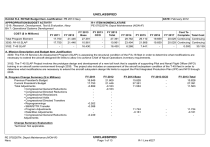 UNCLASSIFIED DATE: February 2012 Exhibit R-2, RDT&E Budget Item Justification: PB 2013 Navy APPROPRIATION/BUDGET ACTIVITY 1319: Research, Development, Test & Evaluation, Navy BA 7: Operational Systems Development COST ($ in Millions) FY 2011 R-1 ITEM NOMENCLATURE PE 0702207N: Depot Maintenance (NON-IF) FY 2012 FY 2013 Base FY 2013 OCO FY 2013 Total FY 2014 FY 2015 FY 2016 FY 2017 Cost To Complete Total Cost Total Program Element 17.750 21.446 27.391 - 27.391 29.762 29.110 19.659 20.029 Continuing Continuing 3030: FA-18 SLAP 17.750 21.446 10.961 - 10.961 23.494 21.669 19.659 20.029 Continuing Continuing - - 16.430 - 16.430 6.268 7.441 - 3182: T-45 SLAP - 0.000 30.139 A. Mission Description and Budget Item Justification 3030: The F/A-18 Service Life Assessment Program (SLAP) is assessing the structural condition of the F/A-18 fleet in order to determine what modifications are necessary to extend the aircraft designed life limits to allow it to achieve Chief of Naval Operations inventory requirements. 3182: The T-45 SLAP Project involves the prototype design and development of a new tail hook that is capable of supporting Pilot and Naval Flight Officer (NFO) training in an aircraft carrier environment through 2035. The project also includes an assessment of the aircraft subsystem condition of the T-45 fleet in order to determine what modifications are necessary to extend the aircraft subsystem design life limits to support the Pilot Integrated Production Plan (IPP) and NFO through 2035. B. Program Change Summary ($ in Millions) Previous President's Budget Current President's Budget Total Adjustments • Congressional General Reductions • Congressional Directed Reductions • Congressional Rescissions • Congressional Adds • Congressional Directed Transfers • Reprogrammings • SBIR/STTR Transfer • Program Adjustments • Rate/Misc Adjustments • Congressional General Reductions Adjustments FY 2011 FY 2012 FY 2013 Base FY 2013 OCO FY 2013 Total 18.649 17.750 -0.899 - - - - - -0.262 -0.388 - - -0.249 21.609 21.446 -0.163 -0.163 - - - - - - - - - 15.828 27.391 11.563 - - - 15.828 27.391 11.563 11.724 -0.161 - - - - 11.724 -0.161 - Change Summary Explanation Technical: Not applicable. PE 0702207N: Depot Maintenance (NON-IF) Navy UNCLASSIFIED Page 1 of 13 R-1 Line #227 UNCLASSIFIED DATE: February 2012 Exhibit R-2, RDT&E Budget Item Justification: PB 2013 Navy APPROPRIATION/BUDGET ACTIVITY R-1 ITEM NOMENCLATURE 1319: Research, Development, Test & Evaluation, Navy PE 0702207N: Depot Maintenance (NON-IF) BA 7: Operational Systems Development Schedule: 3030: The Structures Phase B effort is extended to 3rd Quarter 2016. The Structures Phase C effort will begin in 2nd Quarter 2015. Phase B is updated to reflect a larger scope of work required to complete Structures tasking. Structures Phase C schedule movement is a product of the Structures Phase B schedule change. The Subsystems Phase B effort will be completed in 3rd Quarter 2013 and Subsystems Phase C will start in 4th Quarter 2013 and end in 1st Quarter 2016. This change reflects a more narrow scope of work required to complete Subsystems Phase B Tasking. Subsystems Phase C schedule movement is a product of the Subsystems Phase B schedule change. 3182: Not Applicable PE 0702207N: Depot Maintenance (NON-IF) Navy UNCLASSIFIED Page 2 of 13 R-1 Line #227 UNCLASSIFIED DATE: February 2012 Exhibit R-2A, RDT&E Project Justification: PB 2013 Navy APPROPRIATION/BUDGET ACTIVITY 1319: Research, Development, Test & Evaluation, Navy BA 7: Operational Systems Development COST ($ in Millions) 3030: FA-18 SLAP FY 2011 R-1 ITEM NOMENCLATURE PE 0702207N: Depot Maintenance (NON-IF) FY 2013 Base FY 2012 FY 2013 OCO FY 2013 Total FY 2014 PROJECT 3030: FA-18 SLAP FY 2015 FY 2016 17.750 21.446 10.961 - 10.961 23.494 21.669 19.659 0 0 0 0 0 0 0 0 Quantity of RDT&E Articles Cost To Complete Total Cost FY 2017 20.029 Continuing Continuing 0 A. Mission Description and Budget Item Justification The F/A-18 Service Life Assessment Program (SLAP) is assessing the structural condition of the F/A-18 fleet in order to determine what modifications are necessary to extend the aircraft designed life limits to allow it to achieve Chief of Naval Operations (CNO) inventory requirements. The goal of the SLAP program is to identify critical structures and components that can achieve the extended service life limit goals. An increase in total landings and flight hours would allow the F/A-18 to meet CNO inventory requirements, to include planning for the announced one year Joint Strike Fighter slide. This effort is required to be conducted for these airframes to ascertain what actions and modifications must be taken to safely operate each system beyond its designed life until the targeted end of service life. B. Accomplishments/Planned Programs ($ in Millions, Article Quantities in Each) Title: F/A-18 SLAP Articles: FY 2011 17.750 0 FY 2012 21.446 0 FY 2013 10.961 0 17.750 21.446 10.961 Description: Funding supports assessing the structural condition of the F/A-18 fleet in order to determine what modifications are necessary to extend the aircraft designed life limits to allow it to achieve CNO inventory requirements. FY 2011 Accomplishments: Continue analysis of numerous data points to provide exploitation of complete structural fatigue testing with the expectation of extending the current service life of F/A-18E/F flight hours from 6,000 to 9,000 hours. FY 2012 Plans: Continue analysis of numerous data points to provide exploitation of complete structural fatigue testing with the expectation of extending the current service life of F/A-18E/F flight hours from 6,000 to 9,000 hours. FY 2013 Plans: Continue analysis of numerous data points to provide exploitation of complete structural fatigue testing with the expectation of extending the current service life of F/A-18E/F flight hours from 6,000 to 9,000 hours. Accomplishments/Planned Programs Subtotals PE 0702207N: Depot Maintenanc