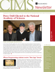 Newsletter Departments of Mathematics and Computer Science, and the Center for Atmosphere-Ocean Science at New York University Pictured: Leslie Greengard, Percy Deift, Peter Lax Volume 7, No. 1 Fall / Winter 2009 Percy Deift Elected to the National Academy of Sciences Photo credit: Annemarie Poyo Furlong On the morning of April 28th, together with 71 other new members, Percy Deift was elected to the National Academy of Sciences, joining an active membership of 2,150. The Courant Institute celebrated the election at a special reception in May, with a talk about Deift’s work by Peter Lax. Gerard Ben Arous, Acting Director of the Institute, said that “Percy is the grandmaster of a school of classical and spectral analysis which has a long history at the Courant Institute, where the tradition of the Riemann-Hilbert method is nurtured and enriched. He has successfully used this expertise in various domains ranging from Integrable Systems to Random Matrices Theory and to Combinatorics. In 2001, with Jinho Baik and Kurt Johansson, he solved one of the deepest conjectures of the field, the Ulam conjecture on the fluctuations of the longest increasing subsequence of a random permutation, and thus opened a rich new vein of results. We are honored to have a colleague of such an extraordinary caliber at the Institute, and very pleased to hear that he has, quite deservedly, received one of the highest levels of scientific recognition.” n iPhone Programming students receive “Best App” Award The Institute’s Computer Science Department is among the Nation’s first to offer an iPhone Programming course. Led by Professor Nathan Hull, students developed applications such as “Crossroads,” a social application that allows users to share content on a GPS-enabled map, and “Vinyl,” an interactive MP3 interface that looks like a record player. A panel of judges attending the Spring Computer Science Demo Show, comprised of an Apple executive and Computer Science faculty, presented the pictured application, “Pet Wars,” with the “Best App” award. Co-creators Ricky Cheng, Jamin Ma, and Andrew Saladino received scholarships from Apple to attend their June 2009 Worldwide Developers Conference in San Francisco. n In this Issue: Percy Deift Elected 1 iPod “Best App” Award 1 Amir Pnueli 2 Chris Bregler 3 50 Years and Going 4-5 Eugene Isaacson Memorial 6 Herb Keller Memorial 6 Secret to Mark Spitznagel’s Success 7 Mathematics in Finance 8 The Generosity of Friends 8 Donors 9 New Faculty Bios 10 Harry Hochstadt Memorial 10 Fall 2009 Puzzle 11 CSO Student Conference 11 Courant Institute Celebrates 75 Years 11 Professor Amir Pnueli, Distinguished Computer Scientist, Passes Away at 68 The NYU Department of Computer Science and the entire university community mourn the sudden passing of Professor Amir Pnueli, who died on November 2 of a brain hemorrhage. Professor Pnueli was an internationally recognized pioneer in the area of verification, the process of formally proving that systems, such as computer hardware and software, behave as intended by their designers. Motion Capture sessions of subjects for a new “Body Language” study currently underway at the NYU Movement Group Chris Bregler: A Motion Capture Expert Who’s Always on the Move by M.L. Ball It makes perfect sense that Chris Bregler’s career has focused on the mechanics and the art of human movement because he himself is always in motion. Whether describing his latest research project, or technology he has developed that has appeared in projects by Disney Feature Animation and films by Lucasfilm’s Industrial Light & Magic, his hands gesture wildly as he bounces excitedly in his chair. And he’s only getting started. Telecommunications Program). I work with them a lot because as well as animation, my NYU Movement Group collaborates with modern dancers. And New York is the city of dance. Long term, I’m trying to figure out the secret of human motion, and the real experts in that are dancers and choreographers and animators. New York is the perfect place to do that, which is another reason I love New York and NYU.” Originally from Germany, Chris received his M.S. in 1995 and Ph.D. in 1998 in Computer Science from U.C. Berkeley. His first project was developing computer vision to track the movement of human lips, followed by a Ph.D. thesis on full body tracking from head to toe, including motion capturing the well-known Eadweard Muybridge footage. In 2002, soon after his second arrival at NYU, Chris was granted National Science Foundation funding for a collaboration between Courant’s computer science department and the Steinhardt School’s Dance Education Department. In 2003, NYU funded the creation of a motion capture lab, the only one in Manhattan at the time, and Chris’s group was off and running. “It’s very hard to do human motion,” Chris explained. “If you look at Pixar movies, there’s a reason why most of the main characters are toys or animals. So for the NSF project, we over-exaggerated the motion capture so the animated characters looked more expressive.” In 1998 he spent a year at NYU as a visiting scholar, then joined the faculty at Stanford University in 1999. In 2002 he returned to NYU and is now a tenured professor. This photograph was taken on the occasion of Amir Pnueli winning the Israel Prize, 2000 proved to be of lasting value. His work has been characterized as the most important contribution to program verification in the last twenty years and it has set the agenda for research and practice in the area.” As well as introducing him to New York, his year at NYU was responsible for changing his career. “While I was here I took a class, ‘Action Analysis,’ on traditionally-drawn animation taught by John Canemaker in the film department,” Chris said. “John is one of the best traditionally-trained animators and won the Oscar for Short Animated Film three years ago. He doesn’t lik
