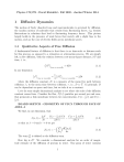 Physics 178/278 - David Kleinfeld - Fall 2002 - checked Winter 2014 1 Diffusive Dynamics The motion of freely dissolved ions and macromolecules is governed by diffusion, the random motion of molecules that results from fluctuating forces, e.g, density fluctuations in solutions that lead to fluctuating buoyancy forces. This picture largely holds in the presence of weak forces that merely add a slight bias to the motion, such as the case of electric fields across membrane pores. 1.1 Qualitative Aspects of Free Diffusion A fundamental feature of diffusion is that there is no time-scale or distance-scale for this process, as opposed to a relaxation or attenuation process. We are simply left, in free diffusion, with the relation between root-mean-square distance, |~r|2 and time, t, i.e., D |~r|2 E time or ensemble = 6Dt (1.1) In one dimension 1 D 2E = 2Dt (1.2) |~r| time or ensemble time or ensemble 3 where the diffusion constant, D, is a measure of the mean free path between 2 collisions, λ, to the mean time between collisions, τ , i.e., D ∝ λτ . In principle, D can be dependent on space and time, but we take it as a constant. Let’s do some simple dimensional analysis to see where the scale of the diffusion ~ r, t) particles per second per unit area, constant comes from. Consider the flux, J(~ that permeates a thin membrane between two concentration, C(x − λ2 , t) and C(x − λ , t). 2 D x2 E = BOARD SKETCH - GEOMETRY OF FLUX THROUGH FACE OF AREA A We find, in one dimension, that C(x − λ2 , t)λ2 A C(x + λ2 , t)λ2 A ∆N = − Aτ 2Aτ λ 2Aτ λ so that as λ → 0 and τ → 0 we get J(x, t) = λ2 J(x, t) = − 2τ The term λ2 2τ ! dC(x, t) dx (1.3) (1.4) is defined as the diffusion term. How big is D? We consider a dimensional analysis for an order of magnitude estimate of the diffusion of protons in water. One gram of water contains 1 2·6·1023 protons M ole · M ole 20gm 3 · 1gm ≈ 6 · 1022 protons and occupies 1 ml or 1024 Å . Thus, each 3 water molecule occupies a volume of roughly 15Å , so λ ∼ 2.5Å where the inequality follows from the fact that the oxygen will exclude volume. We can estimate τ from 1 m|~v |2 = 32 kB T ( 12 kB T per degree of freedom), where |~v | can be taken be be the 2 q q m mc2 λ λ . average velocity over one collision, or |~v | ≈ 2τ . Thus τ ≈ 12kB T λ = 12k BT c 2 q This gives D ≈ λ2τ < λc 3kmcB2T = 60 · 10−4 cm2 /s, which agrees VERY roughly with the measured value of DH + = 0.9 · 10−4 cm2 /s; the fast that our thermal averaging was flawed did not help. A more useful unit is DH + = 9µm2 /ms. FIGURE - Diffusion-coef.eps 2 The key is that for small molecules. D ∼ 1 µm ms A secondary issue that we can take away from this analysis is to compare the relation between the relaxation time calculated from the requirement of equipartition (above) and that calculated for a particle moving in a viscous medium. We recall that for a particle of radius a in goop with viscosity η, the motion is governed by an equation of the form mr̈ + (6πηa)−1 ṙ = F lutuating F orce so that τ= m mD = kB T 6πηa (1.5) This is known as the Einstein-Stokes relation, and says the thicker the goop the slower the diffusion. 1.2 The Diffusion Equation Let’s move on and recall a couple of things about free diffusion in 3-dimensions. ~ r, t), in molecules per unit area and time, is related to the gradient in The flux, J(~ concentration, C(~r, t), by ~ r, t) = −D ∇C(~ ~ r, t) J(~ (1.6) and the divergence of the flux is related to the rate of change of the concentration by ~ · J(~ ~ r, t) = − ∂C(~r, t) ∇ ∂t (1.7) so that ∂C(~r, t) = 0 (1.8) ∂t This is the diffusion equation in the absence of a source, which is useful if we want to determine how an initial concentration profile evolves. The general case involves the presence of sources, such as a constant plume of molecules that is created or absorbed in some region, so that the diffusion equation is of the form D∇2 C(~r, t) − 2 ∂C(~r, t) = 4πρ(~r, t) (1.9) ∂t where ρ(~r, t) has units of concentration per unit time. In order to solve this equation, we need to specify a boundary condition, i.e., the values of C(~r, t) or ∂C(~ r,t) on a surface within the volume of interest, where n is a normal to the surface ∂n at point ~r. We also need to specify an initial condition, i.e., the values of C(~r, 0). The solution of the diffusion equation for a large variety of geometries is the subject of some excellent text books, such as Crank’s ”The mathematics of Diffusion” and Carslaw and Jaeger’s ”Conduction of Heat in Solids” (heat conduction and particle diffusion follow the same equations). Since we (that is I) want to avoid mathematical gymnastics, we will consider first the solution in an infinite region, so that there are no boundaries at finite distances. This precludes some biophysically relevant cases, such as the concentration in response to continuous flux into a cell. The idea is to solve the diffusion for a source that exists only as a single point, which we take as the origin, for a single instance of time, which we take to be t = 0. Thus we seek to solve D∇2 C(~r, t) − ∂G(~r, t) = δ(~r)δ(t) (1.10) ∂t for which we build the source as a weighted average over the delta functions, or point sources, i.e. D∇2 G(~r, t) − ρ(~r, t) = Z d3~r0 Z dt0 δ(~r − ~r0 )δ(t − t0 )ρ(~r0 , t0 ) (1.11) This is just a 4-dimensional version of the convolution integral we considered for linear filtering, and G(~r, t) will play the role of the transfer function in the calculation of C(~r, t). To complete the circle, as one says in ”Phys-Rev-ese”, it can be shown that C(~r, t) = 4π Z 3 0 d ~r Z 0 0 0 0 0 dt G(~r − ~r , t − t )ρ(~r , t ) − Z d3~r0 G(~r − ~r0 , t)C(~r0 , 0) (1.12) The solution of the diffusion equation with a delta function source is best done by Fourier transforming from ~r to ~k and complete the square in the Gaussian 