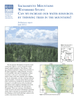 New Mexico Bureau of Geology and Mineral Resources at New Mexico Tech Sacramento Mountains Watershed Study: Can we increase our water resources by thinning trees in the mountains? Preliminary report June 20 1 2 Figure 1–Study area location in Otero County, New Mexico The Sacramento Mountains, located in southcentral New Mexico, receive among the largest annual rainfall amounts in New Mexico. Average annual precipitation ranges from 26 inches in the high mountains to approximately 14 inches in the foothills to the east. Precipitation in these mountains is the source of groundwater and surface water in the area, sustains water supplies for local communities, and also recharges adjacent regional aquifers. Concerns about future groundwater resources has resulted in an interest by land managers to possibly increase the groundwater and surface water supply by thinning trees in the high mountain watersheds in the Sacramento Mountains. This is an overview of preliminary results from the Sacramento Mountains watershed study, which is focused on assessing the effects of tree thinning on the local hydrologic system in the southern Sacramento Mountains. Three L Canyon Figure 2–Sacramento Mountains Watershed study area. NEW MEXICO BUREAU OF GEOLOGY AND MINERAL RESOURCES Should we be concerned about our water supply? Scarcity of groundwater and surface water is currently a problem faced by communities all over the world. Increases in groundwater pumping due to population growth combined with drought over the last decade has resulted in significant groundwater level declines in much of the western United States. Water managers and users in local communities in the Sacramento Mountains have observed declines in water levels and spring discharges in the past few decades, with dramatic decreases in the early 2000s. The Sacramento Mountains watersheds have undergone significant land use and hydrologic changes during the 20th century, including changes in vegetation patterns, an increase in tree density, variable climatic conditions, localized and severe fire impacts, and new groundwater and surface water diversions. Solutions to these problems need to be addressed by deciding the best ways to use water and how to conserve this precious resource. However, there are perhaps some ways to increase the amount of available water at the supply side. Climate and geology are the primary factors that control groundwater and surface water supply, with precipitation providing the primary water input, and the geology controling how water moves from the recharge area and headwaters to where it is used. Presently, we cannot significantly alter either climate or regional geology in a controlled manner. However, we can, and do, change the interface between these two systems, which includes the shallow subsurface and vegetation. By altering vegetation patterns and or the landscape, we change the way climate interacts with the geology, and therefore can possibly affect the amount of water that makes its way into the groundwater and surface water systems. Does tree thinning increase water supply? Figure 3–Forests in the southern Sacramento Mountains are characterized by high tree densities as seen in the top photograph (up to 1000 trees per acre). Thinning trees (bottom photograph) decreases fire danger, improves wild life habitat, and may increase groundwater recharge. Thinning trees in the Sacramento Mountains is a popular restoration technique that is being used to improve wildlife habitat and reduce fire danger (Fig. 3). This restoration technique also has implications for increasing the groundwater and surface water supply. Presumably, a decrease in tree density will correlate to a decrease in the amount of water used by trees and therefore increase groundwater recharge and stream base flow. Much research has been done on the effect of thinning and clear cutting of trees on stream flow due to concerns about the consequences of logging. These studies usually focus on a watershed with a perennial stream and compare the amount of precipitation in the watershed to stream flow before and after thinning. Water that is produced in streams is termed “water yield.” In general, the increase in water yield due to tree thinning depends on the proportion of trees that are cut. For many of the Southwestern states, including New Mexico, Colorado and Arizona, data suggest that the removal of at least 15% of trees is necessary to result in a measurable increase in water yield. (Stednick, 1996). There is a rough correlation between the percentage of trees cut and the measured increase in water yield. However, measured increases in water yield were highly variable. The effects of tree thinning on water yield appear to depend on many different factors that vary from site to site. In some areas, tree thinning may not have a significant effect on water yield. Because the effects of tree thinning on the local hydrology are largely site specific, it is necessary to understand the regional and local hydrogeology and to conduct scientific research to assess the effects of tree thinning on the local hydrology in the area of interest. Then a cost benefit analysis can be conducted before tree thinning is implemented as a method to increase the water supply. Researchers at the New Mexico Bureau of Geology and Mineral Resources (NMBGMR) recently completed a comprehensive hydrogeology study in the southern Sacramento Mountains (Newton et al., 2012) that identified recharge areas, determined groundwater flow directions and velocities, and assessed groundwater/surface water interactions. This regional scale study set the groundwork for the Sacramento Mountains watershed study. S acramento M ountains W A T E R S H E D S tudy Sacramento Mountains Watershed Study Introduction Study Area The Sacramento Mountains watershed study (SMWS) is focused on understanding the local hydrologic system in a high-mountain watershed, and the impacts that forest m