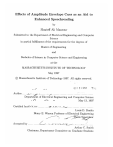 Effects of Amplitude Envelope Cues as an Aid to Enhanced Speechreading by Sharieff Ali Mansour Submitted to the Department of Electrical Engineering and Computer Science in partial fulfillment of the requirements for the degrees of Master of Engineering and Bachelor of Science in Computer Science and Engineering at the MASSACHUSETTS INSTITUTE OF TECHNOLOGY May 1997 @ Massachusetts Institute of Technology 1997. All rights reserved. S/ Author. . 7 .O'iT .f-.,Ea 2 1997 ............. E..n.......... Department of Electrical Engineering and Computer Science May 13, 1997 Certified by .'v.. .......... v.~ ..- .-., ................... ... Louis D. Braida Henry E. Warren Professor of Electrical Engineering ýJj."is Su • vor 'I Accepted by ............ v.. ,.... .. Arthur C. Smith Chairman, Department Committee on Graduate Students Effects of Amplitude Envelope Cues as an Aid to Enhanced Speechreading by Sharieff Ali Mansour Submitted to the Department of Electrical Engineering and Computer Science on May 13, 1997, in partial fulfillment of the requirements for the degrees of Master of Engineering and Bachelor of Science in Computer Science and Engineering Abstract This thesis developed methods of presenting two speech envelope cues in the small bandwidth likely to be available to people with severe hearing impairments. Identifying such methods could facilitate face-to-face communication substantially. Seven presentation conditions were evaluated. Two of the conditions, the OneEnvelope Monaural and the Two-Envelope Monaural, were developed by Grant, Braida and Renn (1991), and were used as a basis of comparison to the new conditions developed. The One-Envelope "Rough" Monaural, Two-Envelope "Rough" Monaural, Simple Binaural, Combination Binaural, and Low Binaural are the five presentation conditions developed in this project. Initial tests used normal hearing subjects to evaluate each proposed scheme. This avoided compounding perceptual interference factors with hearing loss. To ensure that these tests were indicative of the full potential of each method, subjects were familiarized with the envelope cues prior to testing. Results of testing suggest that two of the new presentation conditions may prove beneficial to the hearing impaired. Both the Two-Envelope "Rough" Monaural and the Combination Binaural conditions were particularly successful in conveying speech (average scores using Harvard sentences were 74.1% and 72.1%, respectively). Thesis Supervisor: Louis D. Braida Title: Henry E. Warren Professor of Electrical Engineering Acknowledgments I would like to thank my family and my beloved girlfriend, Nori, for all their love and support, not only during this project, but throughout my MIT career. I would also like to thank David Lum for all the time and effort he gave to help me throughout the project. Finally, I would especially like to thank Professor Louis D. Braida, my thesis advisor, for all the help, patience and time he gave to my thesis. His guidance made this project a truly fulfilling and enjoyable experience. Contents 1 Introduction 2 1.1 Background ................................ 1.2 Objective ................................. Method 2.1 2.2 Speech Materials 2.1.1 CUNY sentences 2.1.2 Harvard sentences 2.1.3 Clarke sentences Subjects ......... 2.2.1 2.3 2.4 ............................. Screening . . . . Procedure ........ ..... ... .... ... 15 . .. .. .... .... .. 15 .. .... ... .... .. 16 .. .... .... .... . 16 ... .... ... .... . 16 2.3.1 Training ..... 2.3.2 Testing ...... .... . 2.3.3 2.3.4 .... . 17 . . . . .. . 18 Feedback Form . . ... .... ... .... 18 Follow-up Testing .. . . .... .... ... 19 ... Presentation Schemes . . 2.4.1 One-Envelope Monaural 2.4.2 .. . . . . . . Two-Envelope Monaural . . . . 2.4.3 One-Envelope "Rough" IVMonaura . . . . . . 2.4.4 Two-Envelope "Rough" MonaurE 2.4.5 Simple Binaural 2.4.6 Combination Binaural . . . . . . . 20 . . . . . 20 . . . . . . 21 . . . . . 22 . . . . . 22 . . . . . . . . . . . . . . . . 23 . 24 2.4.7 2.5 200Hz Binaural ................. Signal Processing ........ . ........ 24 ................. .. 24 3 Results 27 3.1 Training ................. 3.2 Training Feedback . . . . .............. 3.2.1 Question 1 ................... 3.2.2 Question 2 ................... 3.2.3 Question 3 ................. 3.2.4 Question 4 ................... 3.3 Testing ......... 3.4 Testing Feedback ....... 3.5 ....... ........ 27 .......... 28 .. ....... 28 ........ . .......... 29 ........ .. . ...... ....... 3.4.1 Question 1 ....... 3.4.2 Question 2 ................. 3.4.3 Question 3 ....... ... 3.4.4 Question 4 ........ ..... . .......... .... . . .. ... 31 .......... 31 ........... 31 .......... . 32 .......... . 32 Follow-up Testing ................... ...... . . 4 Discussion 4.1 4.2 5 29 30 ............ .... 28 33 34 Presentation Schemes Reviewed ................... .. 4.1.1 One-Envelope Monaural ................ 4.1.2 Two-Envelope Monaural . . . ........... 4.1.3 One-Envelope "Rough" Monaural ......... 4.1.4 Two-Envelope "Rough" Monaural . ............... 4.1.5 Simple Binaural . ................. 4.1.6 Combination Binaural 4.1.7 Low Binaural .......... .... ..... . 34 .... . 35 ... ........... .. .. .. ..... ...... . ................ . . . . . . 35 36 .............. Follow-up Testing Reviewed ..... Recommendations ..... 34 . . . . . .... 36 37 .... 37 . 38 39 42 A.1 SIVO PROJECT ................... . A.1.1 Background .. A.1.2 SIVO Code ............. A.1.3 Subjects .... A.1.4 Summary and Suggestions . ... . . ..... .. . ..... ... . .... ........ ... .... ....... 42 ....... 42 ......... 42 . 44 . . ....... .......... . B 45 47 B.1 Feedback Form ......... ....... . .. ........ 47 C 48 C.1 Spectra Plots . .................. ..... ... . D 48 49 D.1 "ENVS" Code ....... D.2 "BIENVS" Code . ..... ...... . . .. ... . . ... .... ... ....... ..... .. 49 .. 56 E Training and Test Results 65 E.1 Training ....... . E.2 Testing ......... ..... . . ........ ... ..