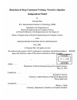 Detection of Stop Consonant Voicing: Toward a Speaker Independent Model by Xiaomin Mou B.S., Massachusetts Institute of Technology (2000) Submitted to the Department of Electrical Engineering and Computer Science in Partial Fulfillment of the Requirements for the Degree of Master of Engineering in Electrical Engineering and Computer Science at the MASSACHUSETTS INSTITUTE OF TECHNOLOGY June, 2001 ©Xiaomin Mou. All rights reserved. The author hereby grants to M.I.T. permission to reproduce and distribute publicly paper and electronic copies of this thesis document in whole or in part. SARKER MASSAChUSETT S W9TITUTE OF TECH4OLOGY JUL 3 1 2002 Author........ ................. LIBRARIES Oepartment of Electrical Engineering and Computer Science May 23, 2001 Certified by ...... Kenneth N. Stevens Clarence J. LeBel Professor of Electrical Engineering Thesis Supervisor Accepted by ........... . Aithur C. Smith Chairman, Department Committee on Graduate Students Detection of Stop Consonant Voicing: Toward a Speaker Independent Model by Xiaomin Mou Submitted to the Department of Electrical Engineering and Computer Science on May 23, 2001, in Partial Fulfillment of the Requirements for the degree of Master of Engineering in Electrical Engineering and Computer Science ABSTRACT In this thesis, a method is described for determining from acoustic analysis whether a stop consonant is voiced or voiceless. Stop consonant production and conditions for voicing are first presented. A preliminary set of acoustic cues for determining voicing is formulated next from knowledge of acoustic theory. The acoustic cues include the fundamental frequency, first formant frequency, and the relative amplitudes of the first harmonic, first formant prominence and third formant prominence. The fundamental frequency in the adjacent vowel is used to gauge the stiffness of the vocal folds. Additional cues are the voice onset time (VOT) from release to the onset of voicing and the voice offset periodicity (VOP) immediately after the closure. Some of the measures are used to estimate the spread of the glottis and are measured immediately before the closure and after the onset of voicing, and others provide evidence for stiffening or slacking of the vocal folds. VOT and VOP are the most important voicing cues. VOT of unvoiced stop consonants is on average 45ms higher than that of their voiced counterparts and VOP of voiced stop consonants is on average significantly greater than that of their voiced counterparts. The fundamental frequency, the change in first harmonic amplitude and the change in the difference between the amplitudes of first and second harmonic are cues that can contribute to voicing identification. The results show that a small set of acoustic cues based on theory of speech production may be reliable in determining voicing. Thesis supervisor: Kenneth N. Stevens Title: Clarence Lebel Professor of Electrical Engineering 2 Acknowledgements I thank my advisor, Ken Stevens, who fostered my interest in the field of speech communications, for his unfailing encouragement and illuminating insight which helped me grow both as a researcher and as a person. His feedback during our meetings raised important questions and challenged me to be more critical with my research. I thank members of the speech communications group for the weekly seminars which often brought in speakers across the disciplines and gave me a chance to appreciate the complexity of this field. I thank Dan Shub, Laura Dilley, Stefanie Shattuck-Hufnagel, and Ariel Salomon, for recording the speech data used in this thesis. I thank Arlene for her support. I am grateful for my best friend Cherry Liu, who has been my cheerleader through frustrating moments and all the way to the final stretch. Finally, I thank my parents for loving me and believing in me, always. 3 Contents 1. Introduction 9 1.1 Lexical representation in terms of segments and features 10 1.2 Landmarks and acoustic cues 13 1.3 Thesis outline 15 1.3.1 Past work 15 1.3.2 Present study 16 2. Production and cues of stop consonant voicing 17 2.1 Voicing 17 2.2 Stop consonant voicing 18 2.3 Acoustic cues for stop consonant voicing 19 2.3.1 Voicing context 19 2.3.2 Voicing cues 21 4 3. Databases and acoustic measurements 23 3.1 Description of database 23 3.2 Description of analysis tool 24 3.3 Measurements 25 3.4 Data 28 3.4.1 Voice onset time (VOT) 28 3.4.2 Voice offset periodicity (VOP) 30 3.4.3 Glottalization 32 3.4.4 H1, H2, F1, Al, and A3 34 4. Acoustic cue analysis 41 4.1 Analysis of Hl, H2, Fl, Al, and A3 42 4.2 Average data for voicing cues 42 4.2.1 Average FO data 48 4.3 Combining acoustic cues 50 5. Summary and Discussion 56 5.1 Voicing in isolated utterances 56 5.2 Further work 57 Appendix A 58 Appendix B 76 5 List of Figures 1.2 Vowel and consonant landmarks for "We took a hike." 14 2.3 Measures of stop consonant voicing 22 3.3 An example of gathering measurements for a VCV utterance 26 3.4.1 Average voice onset time (VOT) 30 3.4.2 Average voice offset periodicity (VOP) 31 3.4.3a Glottalization of /t/ 33 3.4.3b Average Fl decrease for unvoiced stops 34 3.4.4a Measurements for determining voicing at the closure and release for voiced and unvoiced consonants in VCV utterances by male speakers 37 3.4.4b Measurements for determining voicing at the closure and release for voiced and unvoiced consonants in VCV utterances by female speakers 38 3.4.4c Measurements for determining voicing at the closure and release for voiced and unvoiced consonants in CVC utterances by male speakers 39 3.4.4d Measurements for determining voicing at the closure and release for voiced and unvoiced consonants in CVC utterances by female speakers 6 40 4.2a Average VCV measurements 43 4.2b Average CVC measurements 44 4.2. 1a Average FO values at the release and closure landmarks for VCVs and CVCs 49 4.2.1b FO values for male and female utterances 50 4.3a Scatter plots of voicing cues in VCV utterances using MAX values 5