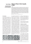 Žaneta Rukuižienė, Rimvydas Milašius Kaunas University of Technology, Faculty of Design and Technologies, Department of Textile Technology Studentų 56, LT-51424 Kaunas, Lithuania E-mail: zaneta.rukuiziene@stud.ktu.lt Influence of Reed on Fabric Inequality in Width Abstract Earlier experimental investigations have demonstrated the particular regularity of inequality in warp projections in the loom-state fabric width, while the projections of wefts were constant throughout the whole width of the fabric. The changes in warp projections have a great influence upon some fabric properties. The porosity, air permeability, thickness, crimp of wefts, elongation and strength in weft of the fabric are higher in the central part of the fabric than in the border areas. The aim of this article is to investigate and analyse the influence of reed on the warp projections’ inequality in fabric width. The investigations of the reed’s influence on the shape of the yarns’ cross-sections was carried out by imitating the weaving process on laboratory equipment. The results of these investigations demonstrated the high influence of the reed on warp projection alteration. The shrinkage of fabric increases the reed’s influence on the warps’ cross-section; as shrinkage (distance l) increases, so does the projection of warps increase. Herewith, the influence of the reed decreases (projections are more stable) as the stress of warps decreases; in other words, the influence of shrinkage is not so high. Key words: warp projections, shrinkage, influence of reed. n Introduction Earlier experimental investigations have shown the particular regularity of warp projection inequality in fabric width], while the projections of wefts are steady throughout the whole width of the fabric [1]. This structural inequality has a significant influence on some fabric properties. The porosity, air permeability, thickness, crimp of wefts, elongation and strength in weft of the fabric are higher in the central part of the fabric than in the border areas. This inequality depends on fabric shrinkage in the loom. The investigations of 20 different loom-state fabrics (various weaves, raw materials, sets, looms etc.) demonstrated the particular regularity of the fabric structure and the inequality of the properties in width and their dependence on shrinkage [4]. An example of such regular structural inequality in width is presented in Figure 1. Here we see that the images of fabric at different places in width are not the same; the warps are more flatter in the border part of the fabric (Figure 1), while in the central part of the fabric the projections of the warps in the plane of the fabric are significantly lower. a) The warp threads are particularly under the influence of many factors in the looms. We wished to find out why the projections of warps, as mentioned in earlier investigations, are not stable in the fabric’s width. It is well known that during the weaving process the reed blades move between ends and change the structure of the fabric (especially with rather high density structure); causing the ends’ spacing in these places to increase [2]. It is also known that the weaving process changes the mechanical properties of warp and weft yarns. The changes in the mechanical properties of warp and weft after weaving depend on warp and weft density, weave, raw material composition, and the properties of fibres, yarn and fabric. Parameters affecting the changes of warp threads in the weaving process are dynamic forces caused by shed formation, the beat-up of weft, loom speed, loom type, climatic conditions, warp preparation, etc. It is known that in addition to stress in the weaving process, yarn properties change (becoming weaker) at friction points. The greatest friction ensues when the warp yarns come into contact with the dents of the reed which is moving forward and backward [3]. b) c) Figure 1. Image of fabric at distances of 5 cm (a), at 25 cm (b), and 70 cm (c) from its edge [1]. 44 Therefore, we see that the reed has a very great influence on fabric properties and structure. Due to fabric shrinkage, the yarns pass the dents of the reed in different ways (the angle is different), and so they are affected differently. The reed may thus be the cause of such fabric inequality in width, as well. The main aim of this article is to investigate and analyse the influence of the reed on warp projection inequality in fabric width. n Materials and methods The plain-weave polyester 158 cm-width fabric manufactured from multifilament 29.4 tex yarns in warps and 27.7 tex yarns in wefts (one of twenty fabrics investigated earlier [4]) was chosen for the present investigation because it well characterises all the investigated fabrics – the inequality in width is high, but the variation of yarns projection values at experimental points is low. The presented fabric was woven on a PN 170 air-jet loom, the reed’s width is 162 cm, and the shrinkage of fabric is 4 cm (2.47%). The reed’s influence on fabric inequality was investigated with yarns which are used in warp, i.e. 29.4 tex yarns. As seen in Figure 2, the fabric width in the reed LR differs from the loom-state fabric width L. During our investigations, the fabric weaving in the loom was imitated with laboratory equipment. As seen in Figure 3, the five warp yarns were fixed in one side, and thereafter they beaded to the dents of the reed accordingly, imitating the yarn’s position in the loom during weaving. FIBRES & TEXTILES in Eastern Europe October / December 2006, Vol. 14, No. 4 (58) here: LR – fabric width in the reed, L – loom-state fabric width. According to the above-mentioned equation, the distance l = 2 cm is the maximum warp yarn leaning to the dent of the reed. Closer to the central part of the reed, this distance decreases; in the central part of the reed, the warp yarns pass the dents of the reed without leaning. 5 different values of distance l were 
