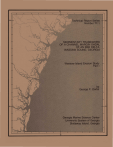-~- 32 / Technical Report Series Number 77-1 '-. L ~ r \ ....,.?-"*'- 32 '\ I l ) I . ..... .... - SEDIMENTARY FRAMEWORK OF A CHANNEL MARGIN SHOAL OF AN EBB DELTA, WASSAW SOUND, GEORGIA Wassaw Island Erosion Study Part I by George F. Oertel 31 31 Georgia Marine Science Center University System of Georgia Skidaway Island, Georgia 81 SEDIMENTARY FRAM~AORK OF A CHANNEL MARGIN SHOAL OF AN EBB DELTA, WASSAW SOUND, GEORGIA WASSAW ISLAND EROSION STUDY PART I BY George F. Oertel Skidaway Institute of Oceanography P.O. Box 13687 Savannah, Georgia 31406 JANUARY 1976 The Technical Report Series of the Georgia Marine Science Center is issued by the Georgia Sea Grant Program and the Marine Extension Service of the University of Georgia on Skidaway Island (P.O. Box 13687, Savannah, Georgia 31406). It was established to provide dissemination of technical information and progress reports resulting from marine studies and investigations mainly by staff and faculty of the University System of Georgia. In addition, it is intended for the presentation of techniques and methods reduced data and general information of interest to industry, local, regional, and state governments and the public. Information contained in these reports is in the public domain. If this prepublication copy is cited, it should be cited as an unpublished manuscript. INTRODUCTION The Wassaw Sound is located on the northern margin of Wassaw Island, 10 miles south of the Savannah River entrance. Although used by the majority of the Savannah shrimping fleet, it does not require maintenance dredging. (Hoyt, Weimer and Henry, 1964). Wassaw Island i s a Holocene barrier Historically the northern end of this island has illustrated alternating periods of erosion and accretion (Oertel and Chamberlain, 1975). These patterns of shore development are natural since there is no private or commercial development on Wassaw Island which is a Federal Wildlife Refuge. Patterns of fore- shore sedimentation are believed to be controlled by the changes in shape of a large sand shoal adjacent to the north end of the Island (Oertel, in Press). This report is a detailed description of the sediment carpet on the shoal based on the analysis of 36 box cores taken from 2 x 4 mile grid (Fig. 1). The coring device took relatively undisturbed samples that could be analyzed for primary and biogenic sedimentary structures, grain size and textures. The cores sampled a surface 10 x 17 centimeters and penetrated the sea bed to a depth of 22 centimeters. Sediment samples were extruded from the core cans and trimmed to wafers 2.5 centimeters thick which were x-ray radiographed. Surface and bottom plugs were taken from each core for grain size analysis. The constituent portions of very coarse, coarse, medium, fine and very fine sand and mud (silt and clay } were determined by sieving. The relative stability of sediment on the shoal surface was also estimated by comparing the areal-distribution percentages of primary sedimentary structures and bioturbated sedimentary structures. 3 SEDIMENT DISTRIBUTION Sediments of the shoal were composed of varying grain-size concentrations, which were plotted on maps in order to illustrate their spatial distribution. Very coarse and coarse sand Cores with high percentages of very coarse (Fig. 2) and coarse sand (Fig. 3) generally also contained large amounts of shells and shell fragments (Fig. 4). Shells and shell fragments of Mulinia lateralis and Donax variabilis were quite common; however, numerous fragments of gastropods and other bivalves were also present. The distribution pattern of coarse and very coarse sand had a shore normal orientation which corresponded to the channel bottom entering Wassaw Sound. The highest concentrations of coarse material occurred in the deepest part of the scour channel. Cores from the marginal shoal gen- erally contained less than 5% very coarse sand and less than 10% coarse sand. The coarse and very coarse sand on the shoal was found only on the channelward side. Moderate concentrations of coarse grained shell fragments were also occasionally found on the distal and leeward side of the shoal. The coarse material in the bottom of the scour channel was apparently a lag deposit. Foresets of coarse material were generally indicative of megaripple type deposition. Bedload transport of this material was apparently only possible during maximum tidal current velocities. The percentage of coarse sand and shell fragments also increased approximate ly 8 mil~s offshore in a shore parallel orientation. This Figure 2. / ' .,,; •' ' ' ' 1 Map illustrating the percentage distribution of the very coarse sand ( > lrr~l, 0.0~) fraction in box core samples from the shoal and shoreface at the north end of Wassaw Island 1 ' ( 0.0¢) Percentage Very Coarse Sand .p. / \ \ \ \ \ ' Figure 3. I I ..... 10 20 , ~~ --~ \ I \ I 1 Map illustrating the percentage d·i stribution of the coarse sand (.5-l.Omnt, 1.0- 0.0~) fraction in box core samples from the shoal and shoreface at the north end of Wassaw Island. .... 1 1oJ \ \ ( 1.0 ¢ ) I \ I \ Percentage Coarse Sand U1 Fig. 4. ' 5 )5 25 10 5 10 ~ Map illustrating the percentage distribution of shell fragments in box core samples fr~n the shoal and shoreface at the north end of Wassaw Island. ~ 10 Percentage Shell en 7 may in fact be the landward limit of the relict surface described by Gorsline (1963) and Pilkey and Frankenberg (1964). Medium sand High percentages of medium sand occurred in cores from several different areas of the sample grid (Fig . 5) . Occurrences in the scour channel and the offshore zone were sim ilar to the distributions found for the coarse and very coarse deposits. Several other isolated occurrences were on the leeward side of the shoal. These areas apparent- ly corresponded to large complex sand waves that were produced by reversing tidal currents (Oertel, 1974). Cores from the shoal surface generally contained less than 20% and often less than 10% medium 