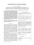 Smoothed Finite Element Method 2 K.Y. DAI 1 and G.R. LIU 1, 2 1 Singapore-MIT Alliance (SMA), E4-04-10, 4 Engineering Drive 3, Singapore, 117576 Center for Advanced Computations in Engineering Science (ACES), Department of Mechanical Engineering, National University of Singapore, 10 Kent Ridge Crescent, Singapore, 119260 benefits arising from this novel combination. Abstract—In this paper, the smoothed finite element method (SFEM) is proposed for 2D elastic problems by incorporation of the cell-wise strain smoothing operation into the conventional finite elements. When a constant smoothing function is chosen, area integration becomes line integration along cell boundaries and no derivative of shape functions is needed in computing the field gradients. Both static and dynamic numerical examples are analyzed in the paper. Compared with the conventional FEM, the SFEM achieves more accurate results and generally higher convergence rate in energy without increasing computational cost. In addition, as no mapping or coordinate transformation is performed in the SFEM, the element is allowed to be of arbitrary shape. Hence the well-known issue of the shape distortion of isoparametric elements can be resolved. Index Terms —finite element method (FEM), Gauss quadrature, isoparametric element, smoothed finite element method (SFEM), strain smoothing. A I. INTRODUCTION fter more than half a century of development, finite element method (FEM) has become a very powerful technique for numerical simulations in engineering and science. Mapped elements, such as the well-known isoparametric elements, play a very important role in FEM. When using a mapped element, a basic requirement is that the element has to be convex and a violent distortion is not permitted so that a one-to-one coordinate correspondence between the physical and natural coordinates associated with an element can be guaranteed. In numerical implementation, the determinant of the Jacobian matrix should be always checked for its positivity to avoid severely distorted elements [1, 2]. Recently, a stabilized conforming nodal integration has been proposed using a strain smoothing technique for a Galerkin mesh-free method which shows higher efficiency, desired accuracy and convergent properties [3]. In addition, a linear exactness can be guaranteed in the solution of Galerkin weak-form based mesh-free methods. In this paper, we implement the strain projection idea to formulate and code a novel method, smoothed finite element method (SFEM) [4, 5], which combines the existing FEM technology with the strain smoothing technique. We will demonstrate through intensive case studies the significant Manuscript received November 17, 2006. II. STRIAN SMOOTHING A 2D static elasticity problem can be described by equilibrium equation in the domain Ω bounded by Γ σ ij , j + bi = 0 in Ω (1) which subject to the boundary conditions: σ ij n j = t i on Γt and ui = ui on Γu , where σ ij is the component of stress tensor and bi the component of body force; ni is the unit outward normal. Its variational weak form is derived as ∫ δ∇ s (u ) ij Dijkl ∇ s (u ) kl dΩ − ∫ δui t i dΓ = 0 Ω (2) Γt In the SFEM, elements are used as in the FEM. Galerkin weak form given in Eq. (2) is applied and integration is performed on the basis of element. Depending on the requirement of stability, an element may be further subdivided into several smoothing cells (SC) [4]. A smoothing operation is performed for each smoothing cell within an element, as expressed by ∇u h (x C ) = ∫ ∇u h (x)Φ (x − x C )dΩ (3) ΩC where Φ is a smoothing function. For simplicity, a piecewise constant function is applied here, as given by Φ(x − x C ) = 1 / AC (x ∈ Ω C ) and Φ(x − x C ) = 0 ( x ∉ Ω C ) , where the area of the cell AC = ∫ dΩ and Ω C is the domain ΩC occupied by the smoothing cell (see Fig. 1). Substituting Φ into Eq. (3), one can get the smoothed gradient of displacement ~ ∇u h (x C ) = ∫ u h (x)n(x)Φ (x − x C )dΓ ΓC = 1 h ∫ u (x)n(x)dΓ AC Γ (4) C The displacement field in an element can be approximated as in the FEM by u h (x) = ∑ N I u I NP (5) Similarly the smoothed strain in discrete form can be obtained as follows ~ ~ε h (x ) = B (6) ∑ I (x C )d I C NP cell. The SFEM shape functions should possess the following criteria: (1) Delta function: N i (x j ) = δ ij ; (2) n Partition of unity: ∑ N i (x) = 1 ; (3) Linear compatibility: i =1 ~ where B I is the smoothed strain matrix. For a 2D case ∑ N i ( x) x i = x ; ⎡ b~I 1 (x C ) 0 ⎤ ⎥ ⎢ ~ ~ B I (x C ) = ⎢ 0 bI 2 (x C ) ⎥ ⎢b~ (x ) b~ (x ) ⎥ I1 C ⎦ ⎣ I2 C satisfying the four conditions can be used in the SFEM. ~ 1 bIk (x C ) = AC where ∫ N I (x)nk (x)dΓ, (k = 1, 2) . The ΓC smoothed element stiffness matrix can be obtained by assembly of all the smoothing cells associated with the element, i.e., ~ ~ K e = ∑ B TC DB C (7) C 4 7 3 i =1 (4) N i (x) ≥ 0 . Any shape functions Let’s take a quadrilateral element for example. For any point on its side, e.g., the midpoints #5, #6, #7 and #8 shown in Fig. 1(b), the values of the shape functions are calculated linearly using shape functions of two related nodes on the side. The values of the shape functions at point #9, the intersection of two bimedians, are the average of those at the four midpoints. If this point happens to coincide with one field node, its shape functions should adopt the values of this node accordingly. Shape functions for other interior points needed in line integrations can be easily obtained in a similar way [4]. In eigenvalue analysis of a free element using SFEM, if an entire element is used as one smoothing cell (SC=1) as shown in Fig. 1(a), five spurious zero-energy modes are found, which is similar to the case of FEM using one Gauss point. Later on it is found that one SC is equivalent to three independent relations ( nσ = 3 ). The difference between the displacement freedo