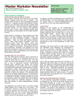 Master Marketer Newsletter http://mastermarketer.tamu.edu Volume 15lIssue 1lMarch 2015 Master Marketer Highlights Master Marketer, Making a Mark for 20 Years Steve Amosson hosted the 20th Anniversary of the Master Marketer Program earlier this year in Amarillo. The program began January 20 and 56 participants graduated on March 3. Graduates primarily held interests in wheat, sorghum, corn, and cotton crops and also in stocker cattle and cow/calf pairs. The total number of Master Marketer graduates reaches 1177 and, reported from participant surveys, have a yearly impact averaging $35,000 using the knowledge and tools gained from the Master Marketer Program. Special thanks is extended to Steve Amosson and Mark Welch for all their hospitality, coordination efforts, and making this 20th Anniversary Program a milestone celebration. Thank you Texas A&M AgriLife Extension Service, Cotton State Support Committee, Texas Corn Producers Board, Texas Farm Bureau, Texas Grain Sorghum Producers Board, and Texas Wheat Producers for your support to this program. We appreciate the many great participants, presenters, and supporters who have allowed this program to continue for the last 20 years with great success. Again, congratulations to the 2015 Amarillo Master Marketer Graduates. Generation Next: Our Turn to Ranch The Texas A&M AgriLife Extension Service would like to invite you to register for a “Generation Next: Our Turn to Ranch” School April 9-10 in Corpus Christi. This 2-day school will have expert presenters on topics concerning how to start an agricultural business, understanding business taxes, marketing your product and yourself, using technology to your benefit, how to set up grazing and wildlife lease agreements, multigenerational ranching, understanding market fluctuations, land management techniques, coping with invasive species, and alternative operations to add to the business. The Generation Next Schools are specifically targeting children or grandchildren of landowners, although the schools are open to all who are interested in attending. Staying connected to the land and finding your place in the family ranch can be difficult, but these schools are specifically designed to provide ideas and direction to make multigenerational ranching successful. The registration fee is $100 (or $75 if a currently enrolled college student) until 2 weeks prior to the course. This fee includes 2 full days of classes from expert instructors, a resource notebook and jump drive, 5 meals, and a Generation Next: Our Turn to Ranch School Completion Certificate at the end of the course. Registration will be limited to the first 50 participants, so sign up early! In this Issue: Master Marketer Highlights Celebrating 20 Years FARM Assistance Update 1 2 3 To Register, visit https://agriliferegister.tamu.edu/ESSM OR call 979-845-2604. For more information, please contact Dr. Morgan Russell at morgan.russell@ag.tamu.edu or 325-657-7317 or your local County Extension Office. Annie’s Project Designed to help educate on the fundamentals of maintaining a farm, Annie’s Project, a women’s workshop series, is being offered in six sessions, from 6-9 p.m. each Tuesday beginning April 9 through May 14, at the Fort Worth Botanic Garden – Garden Center, 3220 Botanic Garden Blvd. Dr. Jason Johnson, Texas A&M AgriLife Extension Service Economist, of Stephenville is leading the project. The series provides a place where farm women can learn both from the perspectives of local agricultural professionals as well as the experiences of other class members. Participants will receive training in critical decision-making and information areas addressing risk management in the areas of production, marketing, financial, legal and human resources, as well as estate planning. Annie’s Project is intended to empower farm women to be better business partners through networks and by managing and organizing critical information. Annie’s Project is an educational program dedicated to strengthening women’s roles in the modern farm enterprise. Cost is $50 per person, and class size is limited to 30. Registration slots will be filled on a first-come, first-served basis. The conference is sponsored by Texas A&M AgriLife Extension, with program support provided by Farm Credit Bank of Texas. Interested participants with questions about the program can request a brochure and registration form by contacting Johnson at 254-968-4144 or the AgriLife Extension office for Tarrant County in Fort Worth at 817-884-1941. The registration form is also available at http://bit.ly/1JmMUG9 National Value-Added Agriculture Conference The 17th National Value-Added Agriculture Conference is scheduled for May 18-20 at the Austin Marriott South, 4415 South Interstate 35 in Austin. The conference is hosted by the Texas A&M AgriLife Extension Service and the Department of Agricultural Economics at Texas A&M University. The theme of the conference is “The Future of the U.S. Food System: Providing Nutritious, Sustainable, and Healthy Food for All Americans.” (Continued on Page 3) Master Marketer Program Celebrates 20 Years Congratulations to the 2015 Master Marketer Class! Kay Ledbetter, Communications Specialist, Texas A&M AgriLife Extension Service, Texas A&M University When a Master Marketer class is offered by the Texas A&M AgriLife Extension Service, seats fill up fast. That’s because the program, celebrating its 20th anniversary, is making a difference in farm operators’ bottom line, according to attendees and coordinators. Dr. Steve Amosson, AgriLife Extension economist in Amarillo, initiated the first training in 1996 and hosted the 27th training in Amarillo this year. Graduation of the 62 class members was March 3. During the past 20 years, the program has offered agricultural producers a way to develop better risk management skills to deal with price volatility year in and year out, Amosson said. It has been conducted around the state in 