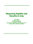 Measuring Stability and Security in Iraq June 2007 Report to Congress In accordance with the Department of Defense Appropriations Act 2007 (Section 9010, Public Law 109-289) Table of Contents Executive Summary .................................................................................................................... iii 1. Stability and Security ............................................................................................................1 1.1. Political Stability .....................................................................................................1 National Reconciliation ..........................................................................................1 Political Commitments ............................................................................................2 Government Reform ...............................................................................................3 Rule of Law .............................................................................................................5 Provincial Reconstruction Teams ............................................................................6 Transnational Issues ................................................................................................6 1.2. Economic Activity ..................................................................................................9 Government of Iraq Economic Commitments ........................................................9 Budget Execution ....................................................................................................9 IMF Standby Arrangement ...................................................................................10 Indicators of Economic Activity ...........................................................................10 Oil Infrastructure Integrity.....................................................................................11 Essential Services ..................................................................................................13 1.3. Security Environment ...........................................................................................17 Iraqi Security Commitments .................................................................................17 Overall Assessment of the Security Environment ................................................19 Overall Attack Trends and Violence .....................................................................23 Public Perceptions of Security ..............................................................................24 1.4. Transferring Security Responsibility ....................................................................29 2. Iraqi Security Forces Training and Performance ..............................................................30 2.1. Assessed Capabilities of the Iraqi Security Forces ...............................................30 2.2. Ministry of Interior Forces ....................................................................................31 Ministry of Interior Transition Issues ...................................................................31 Iraqi Police Service ...............................................................................................34 National Police ......................................................................................................34 Directorate of Border Enforcement and Directorate of Ports of Entry .................35 Facilities Protection Service .................................................................................36 National Information and Investigation Agency ...................................................36 2.3. Ministry of Defense ..............................................................................................37 Ministry of Defense Transition .............................................................................37 Army …. ................................................................................................................40 National Counter-Terror Capability ......................................................................41 Navy …..................................................................................................................42 Air Force ...............................................................................................................42 Annex A List of Acronyms .................................................................................................44 i June 7, 2007 This page intentionally left blank. ii June 7, 2007 Executive Summary This report to Congress, Measuring Stability and Security in Iraq, is submitted pursuant to Section 9010 of the Department of Defense Appropriations Act 2007, Public Law 109-289. The report includes specific performance indicators and measures of progress toward political, economic, and security stability in Iraq, as directed in that legislation. This is the eighth in a series of reports on this subject. The most recent report was submitted in March 2007. The report complements other reports and information about Iraq provided to Congress and is not intended as a single source of all information about the combined efforts or the future strategy of the United States, its Coalition partners, or Iraq. The strategic goal of the United States in Iraq remains a united Iraq that can govern, defend and sustain itself and is an ally in the war on terror. This report measures progress toward— and setbacks from—achieving this goal during this reporting period. Although the objectives have not changed, the strategy and tactics for achieving them have been modified and will continue to adapt to an evolving situation. The United States and its Coalition partners remain committed to help the Iraqi people assume full responsibility for their country. In support of the New Way Forward, Operation Fardh al-Qanoon2 (FAQ) was l