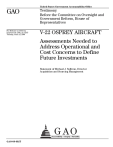United States Government Accountability Office GAO Testimony Before the Committee on Oversight and Government Reform, House of Representatives For Release on Delivery Expected at 2:00 p.m. EDT Tuesday, June 23, 2009 V-22 OSPREY AIRCRAFT Assessments Needed to Address Operational and Cost Concerns to Define Future Investments Statement of Michael J. Sullivan, Director Acquisition and Sourcing Management GAO-09-692T May 2009 V-22 OSPREY AIRCRAFT Accountability Integrity Reliability Highlights Assessments Needed to Address Operational and Cost Concerns to Define Future Investments Highlights of GAO-09-692T, a testimony before the Committee on Oversight and Government Reform, House of Representatives T Why GAO Did This Study What GAO Found Since the 1980s, the V-22, developed to transport combat troops, supplies, and equipment for the U.S. Marine Corps and to support other services’ operations, has experienced several fatal crashes, demonstrated various deficiencies, and faced virtual cancellation—much of which it has overcome. Although recently deployed in Iraq and regarded favorably, it has not performed the full range of missions anticipated, and how well it can do so is in question. As of January 2009, the 12 MV-22s in Iraq successfully completed all missions assigned in a low-threat theater of operations—using their enhanced speed and range to deliver personnel and internal cargo faster and farther than the legacy helicopters being replaced. However, challenges to operational effectiveness were noted that raise questions about whether the MV-22 is best suited to accomplish the full repertoire of missions of the helicopters it is intended to replace. Additionally, suitability challenges, such as unreliable component parts and supply chain weaknesses, led to low aircraft availability rates. Given concerns about the V-22 program, GAO recently reviewed and on May 11, 2009, reported on MV-22 operations in Iraq; strengths and deficiencies in terms of the capabilities expected of the V-22; and past, current, and future costs. In that report, GAO recommended that the Secretary of Defense require (1) a new alternatives analysis of the V-22 and (2) that the Marine Corps develop a prioritized strategy to improve system suitability, reduce operational costs, and align future budget requests. The Department of Defense (DOD) concurred with the second recommendation, but not the first. GAO believes both recommendations remain valid. This testimony highlights GAO’s findings from that report. In speaking of the V-22, we are actually speaking of two variants of the same aircraft. The MV-22 is used by the Marine Corps; and the CV-22 by the Air Force to support special operations. This statement largely focuses on the MV-22, but also refers to the V-22 and CV-22. Additional challenges have been identified with the MV-22’s ability to operate in high-threat environments, carry the required number of combat troops and transport external cargo, operate from Navy ships, and conduct missions in more extreme environments throughout the world. While efforts are underway to address these challenges, it is uncertain how successful they will be as some of them arise from the inherent design of the V-22. The V-22’s original program cost estimates have changed significantly. From 1986 through 2007, the program’s Research, Development, Test, and Evaluation cost increased over 200 percent—from $4.2 to 12.7 billion—while the cost of procurement increased 24 percent from $34.4 to $42.6 billion. This increase coincided with significant reductions in the number of aircraft being procured—from nearly 1,000 to less than 500—resulting in a 148 percent increase in cost for each V-22. Operations and support costs are expected to rise. An indication is the current cost per flying hour, which is over $11,000— more than double the target estimate for the MV-22. After more than 20 years in development, the MV-22 experience in Iraq demonstrated that the Osprey can complete missions assigned in low-threat environments. Its speed and range were enhancements. However, challenges may limit its ability to accomplish the full repertoire of missions of the legacy helicopters it is replacing. If so, those tasks will need to be fulfilled by some other alternative. Additionally, the suitability challenges that lower aircraft availability and affect operations and support costs need to be addressed. The V-22 program has already received or requested over $29 billion in development and procurement funds. The estimated funding required to complete development and procure additional V-22s is almost $25 billion (then-year dollars). In addition, the program continues to face a future of high operations and support cost funding needs, currently estimated at $75.4 billion for the life cycle of the program. Before committing to the full costs of completing production and supporting the V-22, the uses, cost, and performance of the V-22 need to be clarified and alternatives should be reconsidered. View GAO-09-692T or key components. For more information, contact Michael J. Sullivan at 202-512-4841 or sullivanm@gao.gov. United States Government Accountability Office Mr. Chairman and Members of the Committee: I am very pleased to be here today to discuss the current status of the V-22 Osprey program. Since the V-22 Osprey began development in the mid1980s, it has experienced several fatal crashes, demonstrated a variety of deficiencies, and faced the virtual cancellation of the program—much of which it has been able to overcome. There are two variants of the V-22 tiltrotor aircraft currently being used. The MV-22 variant for the Marine Corps will replace the CH-46E helicopter as the Marine Corps’ medium-lift aircraft—to be used along with the heavy-lift CH-53 1 —to fulfill operational requirements such as transporting combat troops, supplies, and equipment. The Air Force’s CV-22 variant will augment existing U.S. Special Ope