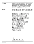 United States Government Accountability Office GAO Report to the Subcommittee on Oversight of Government Management, the Federal Workforce, and the District of Columbia, Committee on Homeland Security and Governmental Affairs, U.S. Senate June 2007 DEFENSE LOGISTICS Efforts to Improve Distribution and Supply Support for Joint Military Operations Could Benefit from a Coordinated Management Approach GAO-07-807 June 2007 DEFENSE LOGISTICS Accountability Integrity Reliability Highlights Highlights of GAO-07-807, a report to the Subcommittee on Oversight of Government Management, the Federal Workforce, and the District of Columbia, Committee on Homeland Security and Governmental Affairs, U.S. Senate Efforts to Improve Distribution and Supply Support for Joint Military Operations Could Benefit from a Coordinated Management Approach Why GAO Did This Study What GAO Found During Operation Iraqi Freedom, the Army and the Marine Corps experienced problems with the delivery of supplies to the warfighter. Such problems highlight long-standing weaknesses in the Department of Defense’s (DOD) supply chain management. DOD has identified joint theater logistics as a key effort aimed at improving distribution and supply support. GAO was asked to examine DOD’s efforts to develop and implement joint theater logistics. GAO assessed (1) the extent to which DOD’s approach to managing joint theater logistics departmentwide encompasses sound management principles and (2) the progress DOD has made in implementing joint theater logistics initiatives. GAO reviewed DOD documents and interviewed officials from the Joint Staff, services, agencies, and geographic combatant commands. DOD has not developed a coordinated and comprehensive management approach to guide and oversee implementation of joint theater logistics across the department. Efforts to develop and implement joint theater logistics initiatives have been fragmented among various DOD components due largely to a lack of specific goals and strategies, accountability for achieving results, and outcome-oriented performance measures—key principles of sound management. Further complicating DOD’s ability to adopt a coordinated and comprehensive management approach to joint theater logistics are the diffused organization of DOD’s logistics operations, including separate funding and management of resources and systems, and changes in DOD’s overall logistics transformation strategy. DOD is currently testing a new approach to managing joint capabilities and is considering a realignment of capabilities in its long-term logistics strategy, which could affect the future of joint theater logistics. Without a more coordinated and comprehensive approach to managing joint theater logistics, DOD lacks assurance that it is on the right path toward achieving this capability and that individual initiatives will collectively address gaps in logistics capabilities. Further, DOD will have difficulty achieving improvements in theater distribution and asset visibility associated with joint theater logistics. What GAO Recommends GAO recommends DOD develop and implement a coordinated and comprehensive management approach to guide and oversee efforts across the department to improve distribution and supply support to U.S. forces in a joint theater. GAO also recommends that DLA assess opportunities to consolidate storage and shipping activities within all geographic combatant commands. DOD concurred with GAO’s recommendations. www.gao.gov/cgi-bin/getrpt?GAO-07-807. To view the full product, including the scope and methodology, click on the link above. For more information, contact William M. Solis at (202) 512-8365 or solisw@gao.gov. DOD components have made progress developing and implementing joint theater logistics initiatives in the areas of distribution and supply support, but the department faces challenges that hinder its ability to realize the full benefits of these efforts. For example, • While Joint Deployment Distribution Operations Centers have been established in each geographic combatant command to help manage supplies moving across the distribution system, senior commanders in Kuwait said achieving asset visibility has been difficult because of a lack of interoperability among information technology systems. • Initiatives being developed to improve the coordination of surface transportation assets theaterwide also face challenges with issues of command and control, the availability of information technology tools, and potential duplication of responsibilities with other organizations. Unless DOD successfully addresses these and other challenges GAO identified, the initiatives are not likely to significantly improve the ability of a joint force commander to effectively and efficiently direct logistics functions, including distribution and supply support activities, across the theater of operations to accomplish an assigned mission. Moreover, without addressing such challenges, DOD is likely to continue to experience some of the same types of distribution and asset visibility problems that have occurred during Operation Iraqi Freedom. United States Government Accountability Office Contents Letter 1 Results in Brief Background DOD Has Not Developed a Coordinated and Comprehensive Management Approach to Joint Theater Logistics DOD Has Made Progress on Joint Theater Logistics Initiatives but Faces Challenges That Hinder Its Ability to Fully Realize the Benefits of These Efforts Conclusions Recommendations for Executive Action Agency Comments and Our Evaluation Scope and Methodology 3 6 19 51 52 53 54 Appendix I Comments from the Department of Defense 57 Appendix II GAO Contact and Staff Acknowledgments 59 Table 1: Challenges Hindering DOD’s Ability to Fully Implement Joint Theater Logistics Initiatives 19 9 Table Figures Figure 1: Recent Strategic Planning Documents Addressing DOD Logistics Figure 2: Military Storage Containers in Kuwait (October 2006) Figu