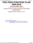 WVDE - School System Strategic Plan Page 1 of 31 FIVE-YEAR STRATEGIC PLAN 2005-2010 Annual Update 2007 E-rate Funding Year 2008-2009 TUCKER COUNTY SCHOOLS TUCKER COUNTY SCHOOLS-CNTY WIDE PERSONNL 501 CHESTNUT STREET PARSONS WV 26287-0 Telephone: (304) 478-2771 Fax: (304) 478-3422 "Good plans shape good decisions. That's why good planning helps to make elusive dreams come true." Lester R. Bittel, The Nine Master Keys of Management https://wveis.k12.wv.us/oneplan2008/district/print_plan.cfm?action=p 8/28/2008 WVDE - School System Strategic Plan Page 2 of 31 SCHOOL SYSTEM STRATEGIC PLANNING COMMITTEE Administration Business & Community Assistant Principal Larry McCune Director Eleanor Nestor Superintendent Rick Hicks Assistant Superintendent/Director of Technology/SP Deborah Calhoun Director Robert Dunkerley Coordinator Karen Dunkerley Principal Joyce Carrico Assistant Principal Shawn Dilly Principal David Dilly Principal Daryla Rapp Sheriff Tom Felton James Snyder Other Attorney John Cooper Minister Father Timothy J. Grass Community Susan McKenzie Former BOE Member David Cooper Former BOE Member Howard Dale Moore Board Member Jared Parsons Board Member Janet Preston Board Member Marvin Parsons Former Board Member Jerry Cosner Board Member Jerry DiBacco Board President Parents Eldon Harper Mary Waters Sherry Mauzy Beth Clevenger Rob Gilligan Denice Reese Donna Patrick Service Personnel Linda Nelson Students April Gaither Drew Brubaker Teachers Heather Mullenex ThisbeCooper Technology Committee Technology Systems Engineer Eric Georg Technology Teacher Amy Moore Technology Plan Deborah Calhoun Technology Coordinator/Teacher Kimberly Falls Technology Coordinator/Business Teacher John Eye Technology Coordinator/Teacher Sam Goughnour Technology Coordinator/Teacher Tom Klus The committee broke into subgroups to work on the sections of the plan. They then brought back a draft of their section to review and revise with the group. The entire plan was presented to the Faculty Senate and Local School Improvement Council for review, before submission. https://wveis.k12.wv.us/oneplan2008/district/print_plan.cfm?action=p 8/28/2008 WVDE - School System Strategic Plan Page 3 of 31 SCHOOL SYSTEM MISSION STATEMENT Learning for All CORE BELIEFS THAT DRIVE SCHOOL SYSTEM IMPROVEMENT We believe... 1. We believe all individuals can learn and achieve success. 2. We believe all individuals have the right to be provided with a safe, caring and welcoming environment. 3. We believe all individuals have a right to be treated with respect and dignity. 4. We believe it is the responsibility all stake holders including the community, school personnel, parents and the students themselves to increase student achievement levels. https://wveis.k12.wv.us/oneplan2008/district/print_plan.cfm?action=p 8/28/2008 WVDE - School System Strategic Plan Page 4 of 31 Annual Budget Required Strategic Plan Budget Funding Source Totals Funding Source Amount Step 7 28,000.00 Technology E-rate 38,283.51 Technology E-rate County Match 11,435.34 Technology Infrastructure 16,495.00 Technology Local Share 4,683.00 Technology TFS/Elementary E-rate 0.00 Technology TFS/Elementary E-rate County Match 0.00 Technology TFS/Secondary E-rate 0.00 Technology TFS/Secondary E-rate County Match 0.00 Telecommunications 17,310.00 TFS/Elementary Technology 28,671.00 TFS/Secondary Technology Title I Title II Title V Total https://wveis.k12.wv.us/oneplan2008/district/print_plan.cfm?action=p 18,935.00 254,445.00 83,617.00 1,680.00 $ 503,554.85 8/28/2008 WVDE - School System Strategic Plan Page 5 of 31 DATA ANALYSIS A. EXTERNAL DATA ANALYSIS What enrollment increases or decreases have occurred in your school system? How has this impacted the system? While Tucker County experienced a modest increase in student enrollment during the05/06 school year, future projections point to a decline in enrollment in the next several years. The second month enrollment totals for 06/07 indicated a decrease of 50 students. This will have a major impact in funding for the next fiscal year. The county will be over six professional and close to five service personnel over formula for the 2007-2008 school term. The major concern is the funding level provided through the West Virginia school aide formula. As the number of students decreases, the funding also decreases making it more difficult to maintain adequate staffing and resources to provide a high quality program. This would include curricular offerings at the high school level. Tucker County Schools has made a concerted effort to keep within the school aide formula. However, as enrollment decreases, services will have to be cut. Funding sources need to be maintained to assure adequate personnel and resources to maintain a quality school system. In addition to funding cuts from the school aid formula, Tucker County Schools faces the loss of funding from the federal government in lieu of taxes program in the amount of close to $150,000. This represents a significant reduction in financial support. On the positive side, some additional funding has been allocated by the legislature with the increase in local share monies counties are permitted to utilize. This will provide some relief to the continuing decrease in funding in other programs. According to available data, what changes have occurred in the age, ethnic, or racial population demographics of your county? What are the implications? There are no significant changes in the demographics of the community. With the exception of a decrease in the number of school age children, the overall demographics are not changing significantly. Have there been any significant changes in the socio-economic demographics of your county? If so, what are the implications? Tucker County continues to be at a disadvantage econmically with very few employment opportunities. Tucker County currently has the lowest per household income in the state. Hopes of new businesses and the employment opportunities