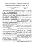 Using Network Traffic to Remotely Identify the Type of Applications Executing on Mobile Devices Lanier Watkins, Cherita Corbett, Benjamin Salazar, and Kevin Fairbanks Johns Hopkins University Applied Physics Laboratory Laurel, MD USA Abstract—In an effort to ultimately develop a network-based mobile device resource monitor, we demonstrate the feasibility of remotely detecting the types of applications (i.e., CPU intensive, I/O intensive or non-CPU intensive) actively executing on a mobile device. The distinguishing characteristic of this method is its uncanny ability to remotely infer the types of applications executing on a mobile device when there is no native network traffic being generated from it. To do this, we inconspicuously solicit network traffic from the mobile device by pinging it. Then we capture the timestamps of the ICMP replies, calculate the average inter-packet spacing, and finally use a Neural-Fuzzy Classifier (NFC) that has been previously trained on CPU intensive, I/O intensive, and non-CPU intensive correlated network traffic to discern between the three application types. The NFC acts as a dynamic threshold by grouping the training patterns into clusters and uses these clusters to create membership functions to separate future patterns of each type. We evaluate several Android and Apple devices, and we show that our approach is feasible for Android mobile devices. The key to this method is CPU throttling (when the on-demand governor is used), which scales the CPU performance according to the needs of the presently executing applications in an effort to save power. We exploit CPU throttling to extract embedded delays from solicited ICMP network traffic. Our results show that our method is at least 95% effective in remotely detecting the types of applications executing on Android mobile device. Keywords—Android, mobile devices, forensics, application fingerprinting security, network I. INTRODUCTION Enterprises have recognized that mobile devices are here to stay, so they must determine new and better methods of managing their security; otherwise, mobile device security concerns will overwhelm the security staff and thus leave little or no time to address the security concerns of the rest of the enterprise network. This paper investigates the feasibility of developing a network-based mobile device resource monitor by empirically demonstrating that the type of application executing on a mobile device can be inferred by simply pinging the device. Such a network-based tool can be used to ascertain initial information about a mobile device that is actively connected to the network, but is not natively generating any network traffic. In such a scenario, host-based methods would normally be used to provide detailed information about the processes executing on a remote device, but since a precedent of circumventing anti-virus software has been set [1], it is conceivable that any information garnered for any host-based tool may be spoofed. In [2], it was shown that the passive inference of CPU usage William H. Robinson Vanderbilt University Nashville, TN in wireline general-purpose nodes can be used to create a resource monitor. In this paper the authors venture to extend this logic to the realm of mobile devices. The key here is the extraction of delays embedded into network traffic due to CPU throttling. Specifically, when the on-demand governor is used, Android based mobile devices throttle the CPU in an attempt to lower power consumption [3]. This gives us a direct relationship between the state of hardware (i.e., CPU) and the applications running on the device. We demonstrate that this relationship is detectable in network traffic generated from Android devices. In our case, we analyze ICMP network traffic which we solicit from the mobile device by pinging it. The capability to remotely infer the type of application executing on a mobile device has many applications. For instance, this capability can be used as an initial step in application white/black listing for specific situations where the mobile device produces no network traffic. This fills a monitoring void which cannot be filled by a traditional intrusion detection system (IDS) like Snort or a web proxy like Squid (because there is no natively generated network traffic). A host-based system like Mobile device managers (MDMs) could functionally fill this void; however, as stated previously, a precedent of circumventing anti-virus software has been set, so it is conceivable that host-based monitoring tools may be ineffective. Also, their maintenance can be time consuming since each device must have software installed on it and constantly updated and patched. Another application of this capability could be to develop an anomaly detection tool which learns the application usage pattern of users and alerts when this pattern changes. Again, this tool would be most effective in situations where the mobile device is executing applications that produce no native network traffic. Such a tool could determine when a user’s mobile device executes more or less of a specific type of application over a certain time period which may indicate anomalous behavior. The contributions of our work are three-fold: (1) the method is network-based and thus does not require any software to be installed on each mobile device, (2) we evaluate mobile devices from multiple vendors and identify specific and exploitable vendor traits, and (3) the method can be used to remotely identify the types of applications (i.e., CPU intensive, I/O intensive or non-CPU intensive) executing on mobile devices. Our paper is organized into the following sections. In Section II we list the assumptions used and the limitations of our work. In Section III, we discuss related works. In Section IV, we discuss the categories of applications that we consider in this paper. While in Section V, we briefly discuss the power management differences between Android an
