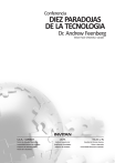 Ten paradoxes of Technology Andrew Feenberg (Feenberg@sfu.ca) Diez paradojas de la tecnología Andrew Feenberg (feenberg@sfu.ca) This paper presents a philosophy of technology. It draws on what we have learnt in the last 30 years as we abandoned old Heideggerian and positivist notions and faced the real world of technology. It turns out that most of our common sense ideas about technology are wrong. This is why I have put my ten propositions in the form of paradoxes, although I use the word loosely here to refer to the counter-intuitive nature of much of what we know about technology. En esta ponencia se presenta una filosofía de la tecnología. Se basa en lo que hemos aprendido en los últimos 30 años: abandonamos las antiguas nociones heideggeriana y positivista, y enfrentamos al mundo real de la tecnología. Resulta que la mayoría de nuestras ideas de sentido común acerca de la tecnología es errónea. Por eso formulé mis diez propuestas en forma de paradojas, aunque aquí uso la palabra “vagamente” para referirme a la naturaleza contraintuitiva de gran parte de lo que sabemos acerca de la tecnología. 1. The paradox of the parts and the whole. Martin Heidegger, once asked whether birds fly because they have wings or have wings because they fly. The question seems silly but it offers an original point of entry for reflection on technology and development. 1. La paradoja de las partes y el todo. Una vez, Martin Heidegger se preguntó si las aves vuelan porque tienen alas o si tienen alas porque vuelan. La pregunta parece tonta, pero ofrece un punto de entrada original para la reflexión sobre la tecnología y el desarrollo. Birds appear to be equipped with wings and it is this that explains their ability to fly. This is the obvious common sense answer to Heidegger's question. But this answer has implications that are less than obvious. Although our intuitions tell us birds belong in the air, our language seems to say that they are separate from the environment on which they act and even separate from the "equipment" they use to cope with that environment. Birds use wings to fly in something like the way in which we humans use airplanes. Las aves parecen estar equipadas con alas y esto es lo que explica su capacidad de volar. Esta es la respuesta obvia de sentido común a la pregunta de Heidegger. Pero esta respuesta tiene implicaciones que son menos evidentes. Aunque nuestras intuiciones nos dicen que las aves pertenecen al aire, nuestro lenguaje parece decir que son independientes del entorno en el que actúan e incluso independientes del "equipo" que utilizan para hacer frente a ese entorno. Las aves utilizan las alas para volar de la misma forma en que los seres humanos utilizamos aviones. Pursuing the analogy we could say that if birds did not have wings they would be just as earthbound as were humans before the Wright brothers—or was it Santos Dumont —invented the airplane. But this makes no sense. Although there are a few species of flightless birds, most birds could not survive without flying. Flying is not just something birds do; it is their very being. Continuando con la analogía, podríamos decir que si las aves no tuvieran alas, serían sólo terrestres, como los seres humanos antes de que los hermanos Wright (o fue Santos Dumont) inventaran el avión. Pero esto no tiene ningún sentido. Aunque hay unas pocas especies de aves no voladoras, la mayoría de las aves no podrían sobrevivir sin volar. Volar no es sólo algo que las aves hacen; es su propio ser. A better analogy to birds' flight would be human speech. Although speechless humans do exist, they lack an essential aspect of what it is to be human. Speech is not properly understood as a tool humans use to communicate because without it they are not fully human. Speech, like flight for birds, is essential in a way tools are not. One can pick up and put down a tool, but humans can no more abandon speech than birds can abandon flight. Una mejor analogía al vuelo de las aves sería el habla humana. Aunque existen los mudos, ellos carecen de un aspecto esencial de lo que es ser un humano. El habla no es entendida como una herramienta que los seres humanos usan para comunicarse porque sin ella no son totalmente humanos. El habla, como el vuelo para las aves, es esencial de un modo en que las herramientas no lo son. Uno puede recoger y dejar una herramienta, pero los seres humanos no pueden abandonar el habla como tampoco las aves pueden abandonar el vuelo. 1 Pushed to the extreme the common sense answer to Heidegger's puzzling question breaks down. Of course we usually do not fall into such absurdities when talking about animals, but the misleading implications of ordinary language do reflect our inadequate common sense understanding of technology. This has consequences I will discuss in the rest of this paper. Llevado al extremo, la respuesta del sentido común a la enigmática pregunta de Heidegger se descompone. Por supuesto, normalmente no caemos en tales cuestiones absurdas cuando se habla de los animales, pero las consecuencias engañosas del lenguaje común reflejan nuestra comprensión insuficiente del sentido común de la tecnología. Esto tiene consecuencias que voy a comentar en el resto de esta ponencia. Heidegger's second option, that birds have wings because they fly, challenges us in a different way. It seems absurd on the face of it. How can birds fly unless they have wings? So flying cannot be the cause of wings unless an effect can precede a cause. La segunda opción de Heidegger, que las aves tienen alas porque vuelan, nos desafía de manera diferente. Parece absurdo. ¿Cómo podrían volar las aves si no tuvieran alas? Volar, por lo tanto, no puede ser la causa de que tengan alas a menos que un efecto pueda preceder una causa. If we are going to make any sense of Heidegger's point we need to reformulate it in less paradoxical language. Here is what he really means. Birds belong to a specif