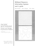 Wildland Resource Information System: user's guide Robert M. Russell PACIFIC SOUTHWEST Forest and Range Experiment Station FOREST SERVICE U.S.DEPARTMENT OF AGRICULTURE P. 0 . BOX 245, BERKELEY, CALJFORNIA 94701 USDA FOREST SERVICE GENERAL TECHNICAL REPORT PSW- 10 I1975 David A. Sharpnack Elliot L. Amidon Russell, Robert M., David A. Sharpnack, and Elliot L. Amidon 1975. Wildland Resource Information System: user's guide. USDA Forest Serv. Gen. Tech. Rep. PSW-10, 36 p., illus. Pacific Southwest Forest and Range Exp. Stn., Berkeley, Calif. This user's guide provides detailed information about how to use the computer programs of WRIS, a computer system for storing and manipulating data about land areas. Instructions explain how to prepare maps, digitize by automatic scanners or by hand, produce polygon maps, and combine map layers. Support programs plot maps, store them on tapes, produce summaries, and perform housekeeping tasks. Oxford:624:U681.3:(084.3) Retrieval Terms: timber management; wildland management; resource use planning; computer programs; map compilation; WRIS; management information systems. The Authors are assigned to the Station's research unit investigating measurement and analysis techniques for management planning, with headquarters in Berkeley, Calif. ROBERT M. RUSSELL, the unit computer programmer, received a bachelor's degree in mathematics at the University of Michigan (1956), and worked as a programmer at the University of California, Berkeley, from 1958 until 1966, when he joined the Station staff. DAVID A. SHARPNACK, a research forester, was educated at the University of Idaho (bachelor's degree in forestry, 1961) and the University of California, Berkeley (master's degree in statistics, 1969), and has been with the Station since 1962. ELLIOT L. AMIDON is in charge of the measurement and analysis techniques research unit. He earned a bachelor's degree in forest management at Colorado State University (1954) and a master's degree in agricultural economics at the University of California, Berkeley (1961), and was assigned to production economics research at the Station until he assumed his present position in 1971. CONTENTS Page 1. Preparing Maps ....................................... 1 2. Digitizing Maps With a Scanning Densitometer ............... 1 2.1 Equipment ...................................... 1 2.2 Aperture and Spacing Alternatives .................... 1 2.3 Photographic Reduction ............................ 2 2.4 Scanning Procedure ............................... 2 2.5 Selection of Density Threshold ....................... 2 2.6 Converting to Binary Map (FREQTB) .................. 8 3 . Digitizing Maps by Hand ............................... 8 3.1 Equipment ...................................... 8 3.2 Digitizing Procedure ............................... 8 3.3 Converting to Binary Map (HANDY) .................. 8 4 . Producing a Polygon Map ............................... 9 4.1 Editing the Binary Map ............................. 9 4.1.1 Editing Guidelines ............................ 9 4.1.2 Recording Error Corrections ................... 11 4.2 Recording Polygon Labels .......................... 11 4.2.1 Setup ..................................... 11 4.2.2 Symbol Transcription ........................ 11 4.2.3 Label Recording ............................ 11 4.2.4 Master Label Accumulation .................... 11 4.3 Extracting Polygons fr6m a Binary Map (POLLY) ....... 12 4.4 Editing POLLY Printout ........................... 12 4.5 Editing a Polygon File with a Line Plotter .............. 18 4.6 Work Flow ..................................... 19 5. Combining Layers ................................... 19 5.1 Overlaying Maps from Two Layers (MOSAIC) .......... 19 5.2 Aggregating Overlay Acreages (TALLY) ............... 20 6 . Support Programs .................................... 21 6.1 Plotting a Map (CHART) ........................... 21 6.2 Storing Several Maps on One Tape (FLEET) ............ 21 6.3 Printing Diagnostic Summary of a Map (GOSSIP) ........ 22 6.4 Printing General Summary of a Map(RUM0R) . . . . . . . . . 22 6.5 Housekeeping Program (SIGNAL) .................... 22 7. Program Notes 7.1 Computer System ................................. 24 7.2 Files .......................................... 24 7.3 Card Formats ................................... 25 7.3.1 System Cards ............................... 25 7.3.2 Header Records ............................. 25 7.3.3 Integer Lists ............................... 26 7.3.4 Comments ................................. 26 7.4 Printout ........................................ 26 8 . Appendixes ........................................ 27 A-Transcribing Forest-type Descriptions to Computer-Readable Format ........................ 27 B-Major Forest-type Assignments ....................... 28 C-Operating the PDS Microdensitometer . . . . . . . . . . . . . . . . . 36 PREFACE The Wildland Resource Information System (WRIS) is a computerized system for storing and manipulating data about land areas. The resource manager defines a geographic area by drawing a boundary around it on a map. In nature, such boundaries are irregular in shape. We retain their shapes within the system by representing them mathematically as multiple-edged polygons. Polygons are the fundamental building blocks of WRIS. They can represent timber stands, soil types, alternative treatments, and many other categories. WRIS has so far been used mostly for timber management; therefore examples and terminology in this report are taken from that activity. But the system can be put to work in other fields-even those outside of forestry. A group of polygons forms a map. The mosaic of polygons must exhaust the surface area, but polygons must not overlap each other. All polygons on one map must be from the same layer (sometimes called an overlay by other workers). The layer can represent one kind of attribute, such as timber type. Other layers ma