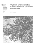 United States Department of Agriculture Forest Service Pacific Southwest Forest and Range Experiment Station Physical Characteristics of Some Northern California Brush Fuels General Technical Report PSW-61 Clive M. Countryman The Author: CLIVE M. COUNTRYMAN was, until his retirement in 1977, in charge of the Station's fire behavior studies, with headquarters at the Forest Fire Laboratory, Riverside, Calif. He earned a bachelor's degree in forestry at the University of Washington in 1940, and joined the Forest Service the following year. He is now a consulting fire scientist with the Physical Dynamics Corporation, Bellevue, Washington. Acknowledgment: The original study was designed and conducted by Charles C. Buck, former Assistant Director, Divisionof Forest Fire and Atmospheric Sciences Research, Forest Service, U.S. Department of Agriculture, Washington, D.C. This report was prepared under Forest Service Contract 43-9AD6-0-755. Cover: Snowbrush (Ceanothus velutinus Dougl.), a major brush fuel in northern California, grows on the lower slopes of Mount Shasta. Publisher: Pacific Southwest Forest and Range Experiment Station P.O. Box 245, Berkeley, California 94701 December 1982 Physical Characteristics of Some Northern California Brush Fuels Clive M. Countryman CONTENTS Introduction .......................................... 1 Species Characteristics . . . . . . . . . . . . . . . . . . . . . . . . . . . . . . . . . 1 Greenleaf Manzanita .................................. 1 .......................................... 1 Chinkapin . . . . . . . . . . . . . . . . . . . . . . . . . . . . . . . . . . . . . . . . . . . 1 Mountain Whitethorn ................................... 1 Bitter Cherry ......................................... 2 Fuel Element Characteristics . . . . . . . . . . . . . . . . . . . . . . . . . . . . 2 Ash Content . . . . . . . . . . . . . . . . . . . . . . . . . . . . . . . . . . . . . . . . . 2 FuelDensity . . . . . . . . . . . . . . . . . . . . . . . . . . . . . . . . . . . . . . . . . 2 Solvent Extractives . . . . . . . . . . . . . . . . . . . . . . . . . . . . . . . . . . . 3 Surface-to-Volume Ratio . . . . . . . . . . . . . . . . . . . . . . . . . . . . . . . 3 Snowbrush ....................................... Fuel Bed Characteristics . . . . . . . . . . . . . . . . . . . . . . . . . . . . . . . . Heating Value 4 4 Standing Fuel Loading . . . . . . . . . . . . . . . . . . . . . . . . . . . . . . . . 5 Single Species Plots ................................... 5 Mixed Species Plots . . . . . . . . . . . . . . . . . . . . . . . . . . . . . . . . . . 5 Vertical Distribution of Fuel . . . . . . . . . . . . . . . . . . . . . . . . . . . . 6 Litter Loading . . . . . . . . . . . . . . . . . . . . . . . . . . . . . . . . . . . . . . . 7 References . . . . . . . . . . . . . . . . . . . . . . . . . . . . . . . . . . . . . . . . . . . . 8 1 1 Countryman, Clive M. Physical characteristics of some northern California brush fuels. Gen. Tech. Rep. PSW-61. Berkeley, CA: Pacific Southwest Forest and Range Experiment Station, Forest Service, U.S.Department of Agriculture, 1982. 8 p. Brush species make up much of the fuel load in forested wildlands. Basic physical and chemical characteristics of these species influence ease of ignition, rate of fire spread, burning time, and fire intensity. Quantitative knowledge of the variations in brush characteristics is essential to progress in fire control and effective use of fire in wildland management. Five shrub species common to northern California brush fuels were analyzed in this study-greenleaf manzanita, snowbrush, mountain whitethorn, chinkapin, and bitter cherry. Quantitative data on ash content, fuel density, solvent extractives, surface-to-volume ratios, heating values, fuel loading by size classes of material, relative amounts of dead and living fuels, vertical distribution of fuel elements, and amount of litter fuel are provided. 1 Retrieval Terms: fuel characteristics, fuel loading, brush fuels, wildland fuels I 1 I 1 I 1 1 ! 1 I 1 T hermal energy from burning fuel provides the basic driving force for the fire phenomena observed in wildland fire. The physical characteristics of the wildland fuel array and of the fuel elements in the array determine the amount of energy available and the rate at which it is released as the fuel bums. Fuels such as small twigs and foliage, for example, release their energy quickly. But large logs usually bum slowly, and may require hours to release all of their potential energy. In varying degree, fuel characteristics influence ease of ignition, rate of spread, burning time, and fire intensity. Quantitative knowledge of the variations in fuel characteristics and the effect of the variations on fire behavior, therefore, are essential to progress in wildland fire control and for effective use of fire as a wildland management tool. How variations in most fuel characteristics affect fire behavior is known in a general way. But few explicit relationships have been established, particularly for combinations of fuel characteristics as they appear naturally. Procedures for estimating fuel characteristics are not well developed: knowledge of the characteristics and range of variation for many of the common wildland fuels is scant. In spring and early summer, living material in the brush has a high moisture content and a brushfield will bum slowly, if at all. But as the dry summer typical of interior northern California progresses, the brush becomes dormant and its moisture content drops drastically. It then becomes highly flammable and a major fire hazard. Brush fuels cover extensive areas of the foothills and mountains of northern California. The fuel type consists of numerous species, most of which are evergreen. Large areas of a single species are not uncommon, but a mixture of two to several species is found more frequently. The fuel type is a climax vegetative cover for many sites, often a natural understory 