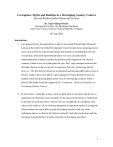 Corruption: Myths and Realities in a Developing Country Context Second Richard Sabot Memorial Lecture Dr. Ngozi Okonjo-Iweala Distinguished Fellow, The Brookings Institution and Former Finance Minister, Federal Republic of Nigeria 20th June 2007 Introduction 1. I am pleased to have this opportunity to deliver the second Richard Sabot Memorial Lecture at the Center for Global Development. Given his interest in examining diverse issues such as the role of government policy and markets in contributing to the East Asia miracle, Dick Sabot demonstrated that he was very concerned about understanding the conditions needed for growth and development in low-income countries. Indeed it was very fitting that last year, Prof. Larry Summers delivered the first Sabot lecture on Harnessing the Development Potential of Emerging Market Reserves. The first lecture focused on an important and pressing public policy issue of the day. Today, I have been asked, or press ganged, by Nancy Birdsall to focus on another critical and pressing public policy issue for developing countries, which I believe Dick Sabot would have approved of: ‘Corruption – Myths and Realities in a Developing Country Context’. 2. In this lecture, I would like to take a more in-depth look at corruption, and the way it undermines development in poor countries. In the course of the lecture, I would touch on this idea of myth and reality: what are the easy assumptions on corruption? And what are the realities? Are we focusing adequately on important aspects of corruption? What solutions can one proffer to guide developing countries with very weak institutions such as we find on the African continent? And what can be done, and has been done as good practice, to tackle corruption in developing countries? 1 3. It is probably best to begin with definitions – and to lay out what is meant by the interrelated terms: corruption and good governance. In a recent report prepared for the UNDP by Prof. Rose-Ackerman: Corruption is a symptom of something gone wrong in the management of the state. When institutions designed to govern the relationships between citizens and the state are used instead for the personal enrichment of public (and I would add private) officials, then you have corruption and the provision of benefits to the corrupt. (UNDP, 1997; pp vii) 1 The World Bank notes simply that corruption is the outcome of poor governance. 4. Viewed in its broadest sense, corruption is simply the misuse of public office or public assets for private gains. It is also the misuse of these assets in a way that creates an unlevel playing field and which makes people feel that injustice has been done. Perhaps this is why the average citizen in any country, in fact we all, feel so badly about corruption. Corruption may be manifested in various forms such as: theft, fraud, bribery, extortion, request for kickbacks, nepotism, patronage and so on. A distinction is often made between grand and petty corruption. In the case of grand corruption, big businesses are seen greasing the palms of senior state officials to receive favours. And in petty corruption, junior civil servants may be enticed to receive side payments or bribes to facilitate administrative arrangements for their clients. The existence of corruption clearly indicates that something is gone awry. And it is indeed symptomatic of weak governance and more importantly weak institutions. Of course, the desired outcome is that of good governance – a situation in which public institutions are strong, and public resources and public goods and services are managed efficiently to address the needs of society. Economic and Social Costs of Corruption 5. In the past, some skeptics often provided a rational defense for corruption based on economic efficiency arguments. It was argued that bribes helped in lowering the cost 1 UNDP (1997), Corruption and Good Governance, Discussion Paper 3 2 of doing business, in clearing the market, in providing incentive bonuses, and in distributing monopoly rents from a single agent to other officials who collude in sharing a bribe. These are all interesting economic arguments which merit some discussion. 6. For example, it has been argued that in an environment where there are restrictive or bureaucratic government procedures – such as bottlenecks in paying taxes, burdensome customs procedures or difficulties in obtaining licenses – bribes could actually provide an efficient way of reducing burdensome transaction costs. Similarly, in cases where a government needs to allocate a scarce resource to various private agents, a bribe payment may help the market to clear more efficiently by allocating the resource to the highest bidder. Bribes could also be explained as a rational incentive bonus to public sector workers whose wages may be artificially depressed. And finally, some scholars have also argued that bribe payments ensure distribution of monopoly rents among other private agents participating for example in a large procurement contract or perhaps in the sale of some government asset 2 . 7. Some literature even showed evidence of growth and economic development in countries with high degrees of corruption (such as Indonesia under Suharto, Bangladesh, and China) as evidence that corruption had a limited or ambiguous impact on growth. 8. The problem with many of these arguments above is that they point to the microeconomic efficiency of an isolated corrupt event without examining its long-run systemic impacts. In the long-run, widespread corruption often creates much larger negative externalities which could hinder the long-term dynamic efficiency of an economy. We understand this in Nigeria, and many countries in Africa where we have long struggled with systemic corruption that has diverted resources, corrupted values, and led to rent-seeking activities in place of productive ones. 2 See Chapter 1 of UNDP (1997), Corruption and Good Governance, Discussion Paper 3 fo