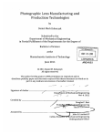 Photographic Lens Manufacturing and Production Technologies by Daniel Mark Kubaczyk Submitted to the Department of Mechanical Engineering in Partial Fulfillment of the Requirements for the Degree of Bachelor of Science BMA SSACHUSETTS INSTITUTE OF TECIOLOGY at the OCT 2 0 2011 Massachusetts Institute of Technology L LIBRARIES June 2011 ARCHIVES © 2011 Daniel M. Kubaczyk All rights reserved The author hereby grants to MIT permission to reproduce and to distribute publicly paper and electronic copies of this thesis document in whole or in part in any medium now known or hereafter created. Signature of Author ........................... . ................. .... ............. Depa ment of Mechanical Engineering Mav 6. 2011 Certified by .................................................................... ..... ... ................................................... Douglas P. Hart Profes "hncal Engineering Thes -isSunn i p v - A ccep ted b y ....................................................................... ....................... ......... John H. Lienhard V Collins Profe echanical Engineering Undergraduate Officer [This page left intentionally blank] Photographic Lens Manufacturing and Production Technologies by Daniel Mark Kubaczyk Submitted to the Department of Mechanical Engineering on May 6, 2011 in Partial Fulfillment of the Requirements for the Degree of Bachelor of Science in Mechanical Engineering Abstract An investigation was conducted to determine the methods and processes required for the manufacture of photographic objective lenses. Production of photographic lenses requires incredible precision in the melting, mixing, molding and machining of optical glass. Manual inspection methods are required to ensure optimum quality and to avoid inclusion of defects in glass. Manual assembly procedures are required to ensure delicate operation of glass elements but contribute significantly to the consumer expense of these lenses. Newly developed technologies in the field of lens machining are discussed in terms of commercial advances and scientific advances. Companies like Canon have sought greater automation in pre-assembly procedures as well as a reduction in the number of machining steps. New advances including precision machining of aspherical lenses, fluid-jet polishing and magnetorheological finishing are pushing the boundaries of lens machining and its characteristic surface roughnesses to depths not seen before. Thesis Supervisor: Douglas P. Hart Title: Professor of Mechanical Engineering [This page left intentionally blank] Acknowledgements I would like to thank Professor Douglas Hart for granting me the freedom to explore this topic on my own terms. I would also like to extend thanks to Professor Timothy Gutowski who struggled with me in finding a suitable thesis topic. I want to extend infinite gratitude to Canon whose virtual photographic lens plant helped me to visualize just how photographic lenses are made and supplied a large portion of the images seen in this thesis. Many thanks to Peter Lu, whose dogged search for an enticing thesis topic helped me to find something which sparked my passion. Finally, I want to thank my parents and family - most of whom would understand almost none of what is written in this document. I owe my diligence to them. Table of Contents Abstract........................................................................................................................................... 3 Acknowledgem ents......................................................................................................................... 5 Table of Contents............................................................................................................................ 6 List of Figures................................................................................................................................. 7 List of Tables ................................................................................................................................ 10 1 - Introduction............................................................................................................................. 11 1.1 - Technical Foundations of Photography ....................................................................... 11 1.2 - Cam era and Lens............................................................................................................. 13 2 - Photographic Lens M anufacturing....................................................................................... 19 2.1 -M aterial Selection and Processing ................................................................................ 19 2.2 - Lens M achining Processes........................................................................................... 24 2.3 - Finishing Processes and A ssembly .............................................................................. 32 3 - Technological A dvances in Grinding .................................................................................. 40 3.1 - Physics of Grinding..................................................................................................... 40 3.2 - Comm ercial Advances in Grinding Technology ........................................................ 42 3.3 - Scientific Advances in Grinding Technology.............................................................. 48 4 - Conclusion .............................................................................................................................. 54 Bibliography ................................................................................................................................. 55 6 List of Figures Figure 1-1: A digital photograph .............................................................................................. 11 Figure 1-2: Cutaway view of a DSLR camera showing critical components .......................... 14 Figure 1-