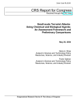 Order Code RL32391 CRS Report for Congress Received through the CRS Web Small-scale Terrorist Attacks Using Chemical and Biological Agents: An Assessment Framework and Preliminary Comparisons May 20, 2004 Dana A. Shea Analyst in Science and Technology Policy Resources, Science, and Industry Division Frank Gottron Analyst in Science and Technology Policy Resources, Science, and Industry Division Congressional Research Service ˜ The Library of Congress Small-scale Terrorist Attacks Using Biological and Chemical Agents: An Assessment Framework and Preliminary Comparisons Summary This report, which will be updated as necessary, presents a means of assessing the relative threat from terrorist-use of individual chemical, biological, and toxin agents. It focuses on small-scale, targeted chemical and biological attacks, rather than mass-casualty attacks. The framework considers the elements of access, public health impact, medical treatment, prophylaxis, and dissemination. Other factors that may affect potential use by terrorists include the range of lethality, covert employment of an agent, and the availability of dual-use technologies. The results of this framework may be useful in addressing the threat these agents pose, for example by indicating priorities for countermeasure funding. Other uses include weighing the potential effectiveness of policy options, assessing threat reduction approaches to specific agents, and serving as a resource for developing other specialized frameworks. Defense against chemical and biological agents is high on the list of the nation’s priorities. No clear consensus exists with respect to which agents pose the greatest threat. Previous analyses of the chemical and biological threat have largely revolved around historical and comparative treatments or been based in a military framework. Examination of the chemical and biological threat to civilians is more complicated. Agents whose characteristics make them poor military weapons may still be powerful if deployed as weapons of terror. Chemical and biological weapons used in the past have not always been chosen for the highest potential fatalities, but rather for other reasons. Some chemical and biological agents are closely regulated, both domestically and internationally. Expansion or further refinement of policies controlling these agents may lower the threat posed by terrorist use of them. Domestic policy options to reduce the threat posed by these agents include methods to prevent their use, consequence management after their use, and methods for protecting the public from them. Specific policies to implement these goals include improving the general public health system, increasing prophylaxis research, development of new medical countermeasures treatments, increasing intelligence gathering, and increasing regulation of dual-use technology. International policy options include development of new biosecurity agreements and increasing participation in current nonproliferation organizations. It is impossible to eliminate the risk of chemical or biological terrorism. Important issues facing policymakers include balancing the need for increased security with the potential economic costs associated with increased regulation and redirected federal resources, determining the relative ratio between general and specific countermeasures against chemical and biological terrorism, and assessing the success of federal efforts at reducing chemical and biological terrorism vulnerability. Contents Introduction . . . . . . . . . . . . . . . . . . . . . . . . . . . . . . . . . . . . . . . . . . . . . . . . . . . . . . 1 Background . . . . . . . . . . . . . . . . . . . . . . . . . . . . . . . . . . . . . . . . . . . . . . . . . . . . . . 4 Definition of C/B Terrorism . . . . . . . . . . . . . . . . . . . . . . . . . . . . . . . . . . . . . 4 Probability of a C/B Weapon Attack . . . . . . . . . . . . . . . . . . . . . . . . . . . . . . . 5 Historical Acquisition and Use of C/B Agents . . . . . . . . . . . . . . . . . . . . . . . 8 C/B Assessments . . . . . . . . . . . . . . . . . . . . . . . . . . . . . . . . . . . . . . . . . . . . . . 9 Assessments by Government Agencies . . . . . . . . . . . . . . . . . . . . . . . . . 9 Military-use Assessment Compared to Terrorist-use Assessment . . . . 10 How Difficult Is it to Develop C/B Agents for Terrorist Use? . . . . . . 11 Agent Analysis . . . . . . . . . . . . . . . . . . . . . . . . . . . . . . . . . . . . . . . . . . . . . . . . . . . 16 Chemical Agent Comparison . . . . . . . . . . . . . . . . . . . . . . . . . . . . . . . . . . . . 16 Choice of Chemical Agents Assessed . . . . . . . . . . . . . . . . . . . . . . . . . 17 Criteria . . . . . . . . . . . . . . . . . . . . . . . . . . . . . . . . . . . . . . . . . . . . . . . . . 17 Biological Agent Comparison . . . . . . . . . . . . . . . . . . . . . . . . . . . . . . . . . . . 22 Choice of Biological Agents Assessed . . . . . . . . . . . . . . . . . . . . . . . . 22 Criteria . . . . . . . . . . . . . . . . . . . . . . . . . . . . . . . . . . . . . . . . . . . . . . . . . 23 Toxin Agents Comparison . . . . . . . . . . . . . . . . . . . . . . . . . . . . . . . . . . . . . . 29 Choice of Toxin Agents Assessed . . . . . . . . . . . . . . . . . . . . . . . . . . . . 30 Criteria . . . . . . . . . . . . . . . . . . . . . . . . . . . . . . . . . . . . . . . . . . . . . . . . . 30 Discussion . . . . . . . . . . . . . . . . . . . . . . . . . . . . . . . . . . . . . . . . . . . . . . . . . . . . . . 35 Potential Uses of Framework . . . . . . . . . . . . . . . . . . . . . . . . . . . . . . . . . . . . 35 Deviations From Assumptions . . . . . . . . . . . . . . . . . . . . . . . . . . . . . . . . . . . 37 Terrorist Motivation-Specific Factors . . . . . . . . . . . . . . . . . . . . . . . . . . . . . . . . . 37 Potential for Covert Deployment . . . . . . . . . . . . . . . . . . . . . . . . . . . . . . . . . 38 Range of Lethality and Impact . 