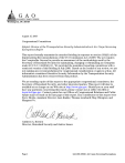 Washington, DC 20548 August 15, 2008 Congressional Committees Subject: Review of the Transportation Security Administration’s Air Cargo Screening Exemptions Report This report formally transmits the attached briefing in response to section 1602(b) of the Implementing Recommendations of the 9/11 Commission Act of 2007. The act requires the Comptroller General to provide an assessment of the methodology used by the Secretary of Homeland Security for maintaining, changing or eliminating an exemption under 49 U.S.C. § 44901(i)(1). We provided the mandated reporting committees with a restricted version of this briefing in July 2008. Based on the results of our review, we are not making any recommendations for congressional consideration or agency action. All information considered Sensitive Security Information by the Transportation Security Administration has been removed from this product. We are sending copies of this report to the appropriate congressional committees, the Secretary of Homeland Security, and other interested parties. This report will also be available at no charge on our Web site at http://www.gao.gov. Should you or your staff have any questions concerning this report, please contact me at (202) 512-3404 or berrickc@gao.gov. Contact points for our Offices of Congressional Relations and Public Affairs may be found on the last page of this report. Key contributors to this report were Steve Morris, Assistant Director; Lara Kaskie; Thomas Lombardi; Meg Ullengren; and Margaret Vo. Cathleen A. Berrick Director, Homeland Security and Justice Issues Page 1 GAO-08-1055R Air Cargo Screening Exemptions List of Committees The Honorable Daniel K. Inouye Chairman The Honorable Kay Bailey Hutchison Ranking Member Committee on Commerce, Science, and Transportation United States Senate The Honorable Joseph I. Lieberman Chairman The Honorable Susan M. Collins Ranking Member Committee on Homeland Security and Governmental Affairs United States Senate The Honorable Bennie G. Thompson Chairman The Honorable Peter T. King Ranking Member Committee on Homeland Security House of Representatives Page 2 GAO-08-1055R Air Cargo Screening Exemptions Enclosure: Briefing Slides Enclosure: Briefing Slides Review of the Transportation Security Administration’s (TSA) Air Cargo Screening Exemptions Report Briefing to Congressional Committees July 8, 2008 1 Page 3 GAO-08-1055R Air Cargo Screening Exemptions Enclosure: Briefing Slides Overview • • • • • • Introduction Objectives, Scope, and Methodology Summary Background Results Agency Comments and Our Evaluation 2 Page 4 GAO-08-1055R Air Cargo Screening Exemptions Enclosure: Briefing Slides Introduction • Section 1602(b) of the Implementing Recommendations of the 9/11 Commission Act of 2007 (Public Law 110-53) requires TSA to submit to the appropriate committees of Congress and GAO a report containing an assessment of each exemption granted under 49 U.S.C. § 44901(i)(1) for the screening of cargo transported on passenger aircraft and an analysis of the risk of maintaining each exemption. The report is required to include (1) the rationale for each exemption; (2) the percentage of cargo not screened in accordance with 49 U.S.C. § 44901(g) (which defines “screening” in this context to mean a physical examination or nonintrusive method of assessing whether cargo poses a threat to transportation security); (3) the impact of each exemption on aviation security; (4) the projected impact on the flow of commerce of eliminating an exemption; and (5) plans and rationale for maintaining, changing, or eliminating each exemption. • Section 1602(b) of the act also requires GAO to provide an assessment of the methodology of determinations made by TSA for maintaining, changing, or eliminating an exemption under section 44901(i)(1). 3 Page 5 GAO-08-1055R Air Cargo Screening Exemptions Enclosure: Briefing Slides Objectives, Scope, and Methodology • In conducting our study, we reviewed TSA’s methodology for determining which air cargo screening exemptions to maintain, revise, or eliminate. Specifically, our objectives were to determine: 1) the extent to which TSA’s methodology for determining whether to maintain, revise, or eliminate an exemption addresses the requirements set forth in the act was risk-based and was consistent with the mission of TSA’s air cargo program to balance security with the flow of commerce; and 2) any challenges TSA may face in implementing its plans to maintain, revise or eliminate air cargo screening exemptions, and potential vulnerabilities that may continue to exist as a result of cargo being exempt from physical screening. 4 Page 6 GAO-08-1055R Air Cargo Screening Exemptions Enclosure: Briefing Slides Objectives, Scope, and Methodology (cont’d) • 1 This review is focused on TSA's air cargo screening exemptions report.1 In conducting our study, we: • Reviewed TSA’s Air Cargo Strategic Plan, security directives, and other documents that provide details on existing air cargo screening exemptions to obtain an understanding of TSA’s current air cargo screening requirements. • Compared the results from TSA's report to our previous findings2 on air cargo screening exemptions to determine whether the continued use of alternative means to secure air cargo exempt from physical screening3 may result in any vulnerabilities, as identified by TSA and other stakeholders. Transportation Security Administration, Report to Congress on Air Cargo Subject to Alternate Screening, February 2008. See GAO, Aviation Security: Federal Action Needed to Strengthen Domestic Air Cargo Security, GAO-06-76 (Washington, D.C.: October 17, 2005) and GAO, Aviation Security: Federal Efforts to Secure U.S.-Bound Air Cargo Are in the Early Stages and Could Be Strengthened, GAO-07-660 (Washington, D.C.: April 30, 2007). 2 For certain types of cargo, TSA has authorized the use of TSA-approved alternative methods for screening cargo carried on