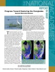 Progress Toward Restoring the Everglades Second Biennial Review Photo courtesy of the South Florida Water Management District. T If environmental restoration goals for the Everglades are to be realized, demonstrable progress needs to come soon. Science and engineering supporting the restoration program has been of high quality, but the Comprehensive Everglades Restoration Plan has made only scant progress toward achieving restoration goals and is mired in budgeting, planning, and procedural matters. Without appreciable progress, the system will continue to lose vital parts, and more importantly, the effort will lose the support of the public. To expedite Everglades restoration and to begin reversing the decades of decline, clear funding priorities; modifications to the project planning, authorization, and funding process; and strong political leadership are needed. he Florida Everglades is one of the Interior, the National Research Council convened a world’s treasured ecosystems. Its vast committee to review the Restoration Plan’s progress area of sawgrass plains, ridges, sloughs, in a series of biennial evaluations. This report (the and tree islands once supported a high diversity of second biennial review) concludes that the Plan plant and animal life. However, an extensive wateris making only scant progress toward achieving control infrastructure designed to improve flood restoration goals. The project is bogged down in control and provide urban and agricultural water budgeting, planning, and procedural matters while supply has drastically altered the flow of water that the ecosystem that it was created to save is in peril. shaped the ecosystem, changing the landscape of the entire Everglades area. Remnants of the original Everglades now compete for vital water with these urban and agricultural interests, and contaminated runoff further impairs the ecosystem. In an effort to reverse the decline of the Everglades ecosystem, the state of Florida and the federal government launched the Comprehensive Everglades Restoration Plan (hereafter, the Restoration Plan) in 2000. The founders of this unprecedented project envisioned that billions of dollars would be invested over several decades in efforts to, where feasible, restore the hydrologic characteristics of the Everglades and to create a water system that simultaneously serves both natural and human needs. Based on Congress’s mandate in the Reconstructed pre-drainage and current satellite images of the Water Resources Development Act of 2000 and with support from the U.S. Army Corps of Everglades. The yellow line in (a) outlines the historical ecosystem; the yellow line in (b) outlines the remnant ecosystem. Engineers, the South Florida Water Management District, and the U.S. Department of the Courtesy of the South Florida Water Management District. Meanwhile, construction costs are escalating and population growth and associated development make restoration increasingly difficult. To avert further declines, the report recommends that the Restoration Plan address major project planning and authorization hurdles and move forward expeditiously with projects that have the greatest potential for making progress in the restoration of the ecosystem. Challenges Contribute to the Urgency for Restoration The report identifies several overarching challenges to Everglades restoration: Fish & Wildlife Conservation Commission photo. Ecosystems continue to decline. Ongoing delay in are likely to impact the effectiveness of Everglades restoration projects; therefore, planners should factor the most recent projections of the impacts of climate change into project planning and implementation. Impending climate change should not be an excuse for delay or inaction in the restoration but instead should provide further motivation to restore the resilience of the ecosystem. Evaluation of Restoration Efforts No Restoration Plan projects have been completed. The Plan is essential to improve the condition of the Everglades ecosystem and strengthen its resiliency to future stresses. However, as of mid-2008, the first components of the project have not been completed. Furthermore, key foundational projects, such as Mod Waters (see Box 1), remain far behind schedule. Some partial benefits have been produced from a few phased Restoration Plan projects, but overall, progress has been limited. Unless progress is made in the near term, opportunities for restoration may close with further species loss and habitat deterioration. Additionally, the continuation of such limited progress could increase frustration among stakeholders and agency staff, diminishing public support. Several related projects are positive harbingers of future Restoration Plan programs. For example, the success of the Kissimmee River restoration effort, which has restored portions of the channelized river to its former meandering course, demonstrates the potential for successful restoration of the Everglades ecosystems. Everglades restoration has not only postponed improvements—it has allowed ecological decline to continue. For example, recent water management strategies have not produced conditions conducive to restoring the endangered Cape Sable seaside sparrow and appear to be negatively impacting the snail kite, an endangered hawk. Additionally, tree islands, which are visually striking biodiversity “hotspots” in the Everglades landscape, have declined in number and area over the The endangered past few decades—a trend that snail kite. appears likely to continue until significant restoration progress has been made. Parts Box 1: Modified Water Deliveries to Everglades National Park of the region are experiencing continued The history of the Modified Water Deliveries to Everglades Nationwater quality and habitat degradation; al Park project—known as Mod Waters—is one of the most discouraging meanwhile, invasive species are increasstories in Everglades restoration. The project was 