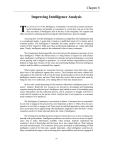 Chapter 8 Improving Intelligence Analysis T raison d’etre of the Intelligence Community is to provide accurate and meaningful information and insights to consumers in a form they can use at the time they need them. If intelligence fails to do that, it fails altogether. The expense and effort invested in collecting and processing the information have gone for naught. HE Assessing how well the Intelligence Community accomplishes this fundamental task is a complicated matter. A great deal of analysis is published; much of it is timely and of excellent quality. The Intelligence Community has many analysts who are recognized experts in their respective fields and whose professional judgments are valued and relied upon. Clearly, intelligence analysis has substantial value to many consumers. The Commission found especially close ties between the producers and users of military intelligence. Within the military there is a long history of respect for, and reliance upon, intelligence. Intelligence is factored into strategic and tactical planning, is exercised in war gaming, and is integral to operations. As a result, military requirements are better defined, in large part, because of the close and continuing dialogue between intelligence analysts and the military commands they support. Where policy agencies are concerned, however, consumers more often take a jaundiced view of the analytical support they receive. The President and senior cabinet officials appear to be relatively well served, but many decisionmakers at lower levels find that intelligence analysis comes up short. Often what they receive fails to meet their needs by being too late or too unfocused, or by adding little to what they already know. In fact, only a small percentage of the resources allocated to intelligence goes to “allsource” analysis. Relatively few resources are devoted to developing and maintaining expertise among the analytical pool. Intelligence lags behind in terms of assimilating open source information into the analytical process, and it continues to struggle with how to avail itself of expertise in the private sector. Analysis that is not responsive to consumer needs continues to be produced. The Intelligence Community is not entirely to blame. Consumers have a responsibility not only to engage in the process but, more important, to drive it. Often, they are uncooperative or too busy to engage at all. Since most are political appointees, many enter and leave government never appreciating what intelligence might have done for them. Clearly, consumers need to be better educated about the value of intelligence. The Commission did find numerous instances where there was a close working relationship with policymakers. Intelligence producers were able to focus on issues of significance and to make information available when needed. Analysts understood the consumer’s level of knowledge and the issues he or she wanted help on. Their analysis was read and relied upon. The consumer, for his part, developed an understanding of what intelligence could do for him and—equally important—what intelligence could not do. Many considered the support vital to meeting their responsibilities and actively engaged in 83 Chapter 8 a dialogue with analysts to refine the support they received. But these instances appear to be the exception rather than the rule. For the Commission, the lesson from all this is clear: there must be a concerted effort to make intelligence analysis more useful to the policymakers it serves. Just as elements of the private sector have re-engineered themselves to improve the quality of their products and their responsiveness to customers, so, too, must intelligence agencies. In the sections that follow, the Commission explains how we believe this might be accomplished. Building Relationships Policymakers receive their support from a variety of sources. CIA’s Directorate of Intelligence (DI) as well as the National Intelligence Officers who comprise the National Intelligence Council are responsible for providing all-source intelligence analysis to the Government as a whole, with the President, the National Security Advisor, and the Secretaries of Defense and State being the foremost customers to be served. The CIA continues to be viewed by most policymakers as the preeminent all-source analytical element within the Government for providing independent judgments free of policy or departmental bias. Departments and agencies that have substantial requirements for intelligence also have internal elements that provide tailored all-source analysis to the agency head and his or her staff, using what is provided by CIA and other sources available to the agency. In the Department of Defense, this function is performed by the Defense Intelligence Agency; in the Department of State, by the Bureau of Intelligence and Research; and in the Departments of Energy, Commerce, and Treasury, by small dedicated components. These departmental organizations also participate in the production of National Intelligence Estimates (discussed later in this chapter) and other analyses produced under Community auspices. (See Chapter 10 for a description of the agencies that provide analytical support to military users.) In addition, consumers receive “single-source” reports based on data obtained by NSA, CIA, DoD and diplomatic reporting from the Department of State. Such reports are valued by consumers, although they may not provide the context of all-source analysis. Intelligence producers interact with their customers in various ways. At one end of the spectrum, intelligence analysts may be assigned to the staffs of certain consumers and integrated into their work force, taking part in the substantive work of the office, participating in foreign travel, discussions with foreign representatives, etc. This type of support was universally acclaimed by the consumers who had it, but because the assigned analyst is then unavailab