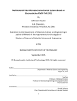 Multimaterial Fiber Microelectromechanical Systems Based on Electrostrictive P(VDF-TrFE-CFE) By Jefferson Clayton B.A. Chemistry, Princeton University, Princeton, NJ, 2011 Submitted to the Department of Materials Science and Engineering in partial fulfillment of the requirements for the degree of Masters of Science in Materials Science and Engineering at the MASSACHUSETTS INSTITUTE OF TECHNOLOGY September 2015 © Massachusetts Institute of Technology 2015. All rights reserved. Author________________________________________________________________________ Department of Materials Science and Engineering August 13, 2015 Certified by____________________________________________________________________ Yoel Fink Professor of Materials Science Professor of Electrical Engineering and Computer Science Thesis Supervisor Accepted by____________________________________________________________________ Donald Sadoway Chair, Departmental Committee on Graduate Students 1 2 Multimaterial Fiber Microelectromechanical Systems Based on Electrostrictive P(VDF-TrFE-CFE) By Jefferson Clayton Submitted to the Department of Materials Science and Engineering on August 13, 2015, in partial fulfillment of the requirements for the degree of Masters of Science in Materials Science and Engineering Abstract The miniaturization of electromechanical transducers using bulk and surface micromachining processes has enabled the deployment of microelectromechanical systems (MEMS) in a variety of applications, from cell phones and ink-jet printers to drug delivery devices. A recently developed approach for the fabrication of multimaterial fiber devices presents a unique opportunity to realize MEMS in a novel form. In this paper a thermally drawn MEMS fiber device based on P(VDF-TrFE-CFE) ferrorelaxor terpolymer is presented. Electromechanical actuation capabilities of this fiber device are established with a maximum strain of 0.78% and a maximum transverse deflection of 7µm under an applied voltage of 300VDC. The potential of this approach to realize complex electromechanical systems in fibers is illustrated by the fabrication of an electrostrictive device capable of modulating a light source reflected off the surface of the fiber. Amplitude modulation of incident light through electric field induced deflection is demonstrated up to the second harmonic frequency of the fiber at 158.3Hz, and a modulation depth of 22.5% is reported; for an array of such fibers in PDMS, amplitude modulation is demonstrated at low frequencies with a modulation depth of 25.8%. These results pave the way to the realization of sophisticated MEMS in fiber, with potential applications in large surface area devices such as interactive haptic displays, acoustic modulators, and energy harvesting systems. Thesis Supervisor: Yoel Fink Title: Professor of Materials Science and Engineering Professor of Electrical Engineering and Computer Science 3 4 Acknowledgements First and foremost, I would like to thank my thesis advisor, Dr. Yoel Fink, for his inspiration and guidance throughout my time spent at MIT. His advice and insights played critical roles in the research described in this thesis. I would also like to thank Dr. Noemie Chocat, who first taught me how to fabricate and characterize piezoelectric fibers. I would also like to thank Dr. Alexander Gumennik and Dr. Alexander Stolyarov, who taught me much of what I know about optics. I owe a sincere thank you to Dr. Etgar Levy, who not only assisted with challenging measurements but who also taught me how to be a better scientist. I would like to thank the rest of my labmates: Michael Rein, Benjamin Grena, Dr. Xiaoting Jia, Dr. Lei Wei, Chong Hou, and Rodger Yuan for being supportive and always willing to chat about new ideas or measurements. I reserve a special thank you for fellow labmate, Tara Sarathi, for being a great friend throughout grad school. Finally, I would like to thank my family and friends, as well as my fiancé, for supporting me through the tough times these past few years. I could not have done any of this alone. 5 6 Table of Contents 1. Introduction 11 2. Background 15 2.1 Multimaterial Functional Fibers 15 2.1.1 Fabrication Process 15 2.1.2 Materials Selection Criteria 19 2.2 Electromechanical Transduction Mechanisms 2.2.1 Electrostriction 20 21 3. Electrostrictive Fiber Fabrication 23 3.1 Materials Selection 23 3.2 Fiber Assembly and Fabrication Results 24 4. Simulated and Measured Behavior 29 4.1 Finite-Element Simulations 29 4.2 High-Voltage Atomic Force Microscopy 31 4.3 Contact Profilometry 34 5. Fiber Actuation for Amplitude Modulation 37 5.1 Optical Setup 37 5.2 Amplitude Modulation Measurements 39 5.3 Fiber Array in Polymer Matrix 40 6. Conclusions and Future Directions 43 References 45 7 8 Table of Figures Figure 1: Preforms 16 Figure 2: Draw Tower 17 Figure 3: Plots of Draw Parameters 18 Figure 4: Schematic and SEM of Fiber Draw 25 Figure 5: Schematic of Fiber Assembly with Mirror 26 Figure 6: SEM Micrograph of Fiber with Mirror 27 Figure 7: Images of Fibers After Draw 28 Figure 8: Schematic and Simulation of Fiber Operation 30 Figure 9: Photos of HVAFM Setup 31 Figure 10: Schematic of HVAFM Measurement 32 Figure 11: HVAFM Measurement of Deflection vs. Voltage 32 Figure 12: Strain vs. Electric Field from HVAFM 33 Figure 13: Photo of Contact Profilometer Setup 35 Figure 14: Profilometer Measurement of Deflection 36 Figure 15: Schematic of Optical Setup for Modulation 38 Figure 16: Photos of Optical Setup for Modulation 38 Figure 17: Modulation Depth Measurements 39 Figure 18: Photo of Fiber Array in PDMS 41 Figure 19: Modulation Depth Measurement on Fiber Array 42 Figure 20: Future Direction – Fabry-Perot Etalon for IFF 44 9 10 Chapter 1 Introduction Although the potential for miniature machines was appreciated as early as the 1960s, most famously in Richard Feynman's seminal lecture "There is plenty of room at the bottom" [1], the key enabler for the realization of microele
