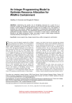 An Integer Programming Model to Optimize Resource Allocation for Wildfire Containment Geoffrey H. Donovan and Douglas B. Rideout ABSTRACT. Determining the specific mix of fire-fighting resources for a given fire is a necessary condition for identifying the minimum of the Cost Plus Net Value Change (C+NVC) function. Current wildland fire management models may not reliably do so. The problem of identifying the most efficient wildland fire organization is characterized mathematically using integer-programming techniques. This mathematical exposition is then solved using the LINGO optimization language. Sensitivity analysis is conducted on model inputs to demonstrate the flexibility of the model architecture. Further, the model is used to model budget constraints commonly faced by fire managers. For. Sci. 49(2):331-335. Key Words: Linear programming, integer programming, wildfire management, optimization. E CONOMIC THEORY has played a central role in wildland fire management since Headley (1916) and Sparhawk (1925) described trade-offs involved in establishing an optimal wildfire management program level (Pyne et al. 1996, p. 428). The theoretical framework used to identify the most economically efficient level of fire management expenditure has been the Cost plus Net Value Change model (C+NVC) (Gorte and Gorte 1979). This model minimizes the cost of wildfire by minimizing the sum of presuppression (expenditures on wildfire management prior to a fire season), suppression (direct wildfire suppression expenditures during a fire season), and NVC (net wildfire damages). While the C+NVC model, as typically illustrated (Pyne et al. 1996, p. 428), provides a theoretical framework for wildfire management, it does not specify which fire-fighting resources should be used to achieve the minimum value of C+NVC. A solution that is to have operational value must also indicate the specific mix (i.e., which fire-fighting resources are employed, not just total budgets) of fire-fighting resources to be employed for a given wildfire (Gonzalez-Caban 1986). In response to a 1978 congressional mandate (Gorte and Gorte 1979) requiring cost-benefit analysis of future budget requests, the USDA Forest Service developed the National Fire Management Analysis System (NFMAS). NFMAS was the first operational model based on the C + NVC theoretical framework designed to solve for the most efficient mix of fire-fighting resources. The user selects specific fire-fighting resources, presuppression budgets, and dispatch rules [1], and tracks the resulting costs and damages for a given geographical area and set of fire behavior conditions. The user systematically changes these inputs to identify the mix of fire-fighting resources, and dispatch rules, which are intended to identify the minimum value of C+NVC. NFMAS is a simulation model that requires the user to make multiple runs to identify the optimal solution. Such an iterative approach has certain drawbacks (Donovan et al. 1999), principally that the optimal mix of fire-fighting resources may not be reliably identified. While NFMAS is the most widely used economic fire management model for public lands in the United States, others not so closely tied to economic theory have been developed. For example, the CFES- IAM model (Fried and Gilless 1988) was developed for the California Division of Forestry. It does not directly consider the economic costs of The authors are, respectively, research forester, USDA Forest Service, Pacific Northwest Research Station, Portland, OR 97205, and professor, Department of Forest Science, Colorado State University, Fort Collins, CO 80523. Geoffrey H. Donovan can be reached at (503) 808-2043; E-mail: gdonovan@fs.fed.us. Acknowledgments: The authors thank Steve Botti of the National Park Service for supporting this work. Thanks also to Willem Bohm, Phil Omi, Charles Revier, and Chuen-Mei Fan for their helpful suggestions and encouragement. Manuscript received March 1,2001, accepted September 24,2002. This article was written by U.S. Government employees and is therefore in the public domain. Reprinted from Forest Science, Vol. 49, No.2, April 2003. Not for further reproduction. 331 wildfire damages, but rather implements a California legislative mandate to provide equal protection for lands of equal value. The National Park Service (NPS) uses a fire management model called FIREPRO (NPS 1997), which does directly consider resource values, nor was it designed to solve for the optimal mix of fire-fighting resources. The fire management models described above are used for strategic fire management and determining fire organizations for an entire season with multiple fire events. This article develops a model to determine the optimal fire organization for a single historic fire. The purpose of the model is to demonstrate the feasibility of using optimization techniques for wildfire planning and budgeting; to suggest ways that this approach may be extended to more complex fire events. The optimal fire organization problem is first characterized mathematically, using integer-programming techniques. LINGO [2], a linear and integer programming software package, is then used to solve the mathematical exposition. The integer program selects those fire-fighting resources that minimize the sum of all fire-related costs and damages. By identifying the optimal mix of fire-fighting resources, the model applies the theory of C+NVC to a meaningful fire management scenario. Sensitivity analysis is conducted by altering fire behavior and fire-fighting resource parameters, to demonstrate the ability of the integer-programming model to respond to differing model parameters. Further, the integer-programming model is used to solve for the optimal mix of fire-fighting resources while facing different types of budget constraints. This type of constrained optimization illustrates the model's capacity to accommodate realistic fire management constraints. additional tempora