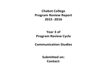 Chabot College Program Review Report 2015 -2016 Year 3 of Program Review Cycle Communication Studies Submitted on: Contact: A. What Have We Accomplished? Complete Appendices A (Budget History), B1 and B2 (CLO's), C (PLO's), and D (A few questions) prior to writing your narrative. You should also review your most recent success, equity, course sequence, and enrollment data at http://www.chabotcollege.edu/ProgramReview/Data2013.cfm. Communication Studies Courses With 112 majors in our Communication Studies Department, we are proud of the direction our department is heading. In ___ we changed our department name from Speech Communication to Communication Studies due in part to our need to identify what we do more accurately. We are continually motivated to teach public speaking skills but we also cover theoretical subjects such as Interpersonal Communication, Intercultural Communication, Persuasion, and Group Communication. And in Fall 2013 we added a new course, COMM 50 Introduction to Communication Studies. This long awaited course covers the discipline as a whole for communication majors and for those students curious about the subject. Registration has been so successful, we now offer it every semester. In the Spring of 2015 we are happy to bring Gender Communication (COMM 12) to the schedule as well. We also created COMM 70, a tutor training course, in order to provide space for an unlimited number of tutors to prepare to work in the Communication Lab. These courses, in combination with Forensics, argumentation, and oral interpretation create a well-rounded discipline for our students. Name Change After the name change, we completed our research and moved into the School of Arts/Humanities (now with Social Science division). This move has proved to be beneficial as we are already collaborating with faculty from mass communication and various performance areas. Vision Statement In terms of identity, we are also working on a Vision Statement for our area. Our temporary version is “the Communication Studies Department works to empower students and faculty to develop and evaluate verbal and nonverbal messages, their meaning, purpose, advocacy, and context through rigorous and creative scholarship.” Degrees / Majors / Certificates In addition to our Speech AA degree, we now offer a Communication Studies AA-T. For some time we have been trying to get an accurate count of majors within these two degrees and recently we found the number totaling over 112. The number of majors was less than 6 only 5 years ago.We are now the 4th largest growing major according to latest Institutional Research on student success. In addition to adding the AA-T we also now offer three communication certificates: Rhetoric, Interpersonal Communication, and Forensics. Maintaining Variety in Course Offerings We have successfully navigated tough economic times although we still need support. Even though we are a discipline with a “bottleneck,” we have had to make a number of tough cuts in the past. We have done this while maintaining the integrity of the discipline as a whole, struggling to maintain diversity in our course offerings and avoid becoming a “speech factory.” We appreciate the number of classes that have been added back into the schedule thus far but it’s not enough. We believe access to our classes, specifically the Oral Communication requirement, is as good as it could be given the current situation. For instance, we have added not only COMM 1, but also COMM 20 and 46, all meeting the Oral Communication requirement, at the same time adding variety and options for students. Enrollment& Success Currently the Communication Studies Department averages over 100% enrollment and about 72% success (IR). Students who use our Communication Lab succeed at a much higher rate than students who do not visit the lab. Overall our student achievement results are fairly consistent with the school’s overall success rate. On a related note, we have worked hard to maintain our student to teacher ratio in COMM 1. (More on this subject under “what’s next?”) Great Debate Last Fall we hosted our first annual “Great Debate.” We coordinated multiple disciplines on campus, community members, and the Chabot Forensics team to offer a variety of presentations in downtown Hayward, culminating with a debate about education. This gave students a first-hand look at how government operates and how public speaking/argumentation/performance interact with policy. The second Great Debate on the topic of the Environment will be held this December 2014. Staying Current in our Discipline All of our achievements speak to our goal to stay current in our field. Last Fall two of our full-time faculty were able to attend the Student Success Conference in Burlingame CA. And this summer one of our full-time faculty members was able to attend the FELI conference in Monterey CA. Staying current also includes keeping our course outlines up to date and having conversations about textbook choices. Recently we decided, as a department, to maintain one short list of acceptable textbook choices for COMM 1. Forensics Our award winning Forensic Team continues to shine despite limited funding. Recently funding for Forensics has improved and we have also received the desperately needed Assistant Coach. J add . . . Communication Lab Our CommLab is a support service for all students across campus. We continue to work to increase the open hours because our number of student visits has increased to over 900 students per year. We are also now offering workshops for groups and have tutors from all areas of the Communication discipline. Media Kit In order to better communicate all of our contributions to the campus we are working on a Media Kit. We have completed flyers, bookmarks, and a commercial for the Comm Lab. We are working on a pamphlet and information packet for our discipline, degrees, and certificates. Communication Club This semester o