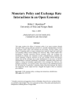 Monetary Policy and Exchange Rate Interactions in an Open Economy Hilde C. Bjørnland* University of Oslo and Norges Bank May 3, 2005 [PRELIMINARY AND INCOMPLETE] COMMENTS ARE WELCOME Abstract This paper analyses the effects of monetary policy in an open economy through structural VARs, paying particular attention to a possible interdependence between the monetary policy stance and exchange rate movements. Previous studies of the effects of monetary policy in open economies have typically found only small (and even puzzling) effects on the exchange rate. However, many of these studies have disregarded a possible interaction between monetary policy and exchange rate movements by placing zero restriction on their contemporaneous correlation. By instead imposing a long-run restriction on the real exchange, thereby allowing the interest rate and the exchange rate to react simultaneously to any news, we find the interdependence to increase considerably. In particular, a monetary policy shock now implies a strong and immediate appreciation of the exchange rate. However, the qualitative properties of a monetary policy shock found in the established literature are still preserved. In particular, a monetary policy shock that increases the interest rate temporarily lowers output and has a sluggish but negative effect on consumer price inflation. Keywords: VAR, monetary policy, exchange rate interactions, identification. JEL-codes: E61, E52, E43. * Valuable comments and suggestions from Leif Brubakk, Sharon McCaw and Kjetil Olsen are gratefully acknowledged. The views expressed are those of the author and should not be interpreted as reflecting those of Norges Bank. 1 1 Introduction Recently, there has been a great deal of interest in quantifying the effects of monetary policy on a set of macroeconomic aggregates. These empirical studies have been particularly successful in extracting information useful to evaluate the fit of the newly developed dynamic stochastic general equilibrium (DSGE) models like those of Christiano et al. (2005) and Altig et al. (2003) for the closed economy and Adolfson et al. (2005) for the open economy. In particular, the authors estimate the parameters of the DSGE model by matching conditional dynamics in response to certain structural shocks. For instance, the impulse response to a monetary policy shock is specified and taken as given; the DSGE parameterization is thereafter chosen to give the same answer. According to Faust (2005), “Clarifying the identification in this way could make more productive the efforts to constructively critique the models by both central bank staff and outside observers.” The quantitative effects of monetary policy shocks have to a large extent been addressed in terms of vector autoregressive (VAR) models, initiated by Sims (1980). Through the recent applications of Leeper et al. (1996) and Christiano et al. (1999, 2005), one has reached a consensus on how monetary policy affects the closed economy (like the U.S.). In particular, a contractionary monetary policy shock that increases the interest rate, gradually lowers output and has a sluggish but eventually negative effect on inflation (that peaks after 1-2 years). These results have been found using VARs that are identified with some sort of recursive identification strategy between the macroeconomic environment and monetary policy. However, studies identifying monetary policy without this restriction, have also found similar results, see for example Faust et al. (2004) and the references therein1. VAR studies of the open economy have on the other hand provided less of a consensus with regard to the effects of monetary policy, and have along certain dimensions even provided some puzzling results. The exchange rate, in particular, has been a troublesome issue. According to Dornbusch’s (1976) well known exchange rate hypothesis, a contractionary monetary policy shock (that increases the domestic interest rates relative to foreign interest rates) will lead to an impact appreciation followed by a persistent depreciation of the domestic currency. This view underlies most models for policy analysis, as emphasised by Walsh (2003).2 However, when confronted with data for the open economy, very few VAR studies have found support for Dornbusch overshooting. Instead they have found that following a contractionary monetary policy, the real exchange rate either actually depreciates, or, if it appreciates, it does so for a prolonged period of up to three years, thereby giving a humpshaped response that violates the uncovered interest parity (UIP) condition. In the literature, the first phenomenon has been termed the exchange rate puzzle, whereas the second has been 1 An exception is Uhlig (2005), who using sign restrictions finds monetary policy to have no clear effect on GDP, although prices move gradually as expected. 2 Walsh (2003, pp. 513-514) argues that "The real exchange rate does not overshoot; it falls below the baseline and then returns smoothly to its initial level. This behaviour is consistent with the empirical evidence of Eichenbaum and Evans (1995)". However, as we will see below, this result is actually not at all consistent with Eichenbaum and Evans (1995), who finds a persistent overshooting of up to three years. 2 referred to as delayed overshooting or forward discount puzzle, see Cushman and Zha (1997). Most of the recent VAR studies of the open economy, including Eichenbaum and Evans (1995), Kim and Roubini (2000) and Kim (2000) for the G7 countries, Peersman and Smets (2002) and Smets and Wouters (2002) for the aggregate Euro area, Mojon and Peersman (2003) for individual Euro area countries and Lindé (2003) for Sweden, have found evidence of at least one these puzzles, which is in sharp conflict to conventional wisdom. On the other hand, evidence of these puzzles has been so persuasive that the puzzles themselves are now considered consensus, as is evident from the followin