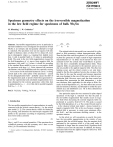 Z. Phys. B 102, 331–336 (1997) ZEITSCHRIFT FÜR PHYSIK B c Springer-Verlag 1997 Specimen geometry effects on the irreversible magnetization in the low field regime for specimens of bulk Nb3Sn M. Däumling1,? , W. Goldacker2 1 2 Département de Physique de la Matière Condensée, Université de Genève, CH-1211 Genève 4, Switzerland Forschungszentrum Karlsruhe, D-76021 Karlsruhe, Germany Received: 18 October 1996 Abstract. Irreversible magnetization curves in particular in self field conditions were investigated for specimens of bulk Nb3 Sn as an isotropic and non-granular alternative to high Tc materials. The specimens were cut into squares with side length to thickness ratios of about 0.8 to almost 20, leading to diamagnetic slopes |χd | ranging from slightly more than 1 (slab in parallel field) to 13 (plate in perpendicular field). The peak in the low field magnetization (caused by the field dependence of jc ) moves from negative field for specimens with small |χd | (where it should be according to the standard Bean model) to zero or even positive fields for specimens with large |χd |. Finite element self consistent calculations with field dependent and thus spacially varying jc were used to fit the measured hysteresis curves. A strong current peak in the center plane of the specimens – caused by the demagnetization field – probably causes the shift of the magnetization peak to positive field. Best agreement between the experimental and calculated magnetizations have been obtained for the extreme geometries: either thin disk in perpendicular (χd < −4) or thin slab in parallel magnetic field (χd > −1.2). PACS: 74.25.Ha; 74.60.Jg; 74.70.Ad 1. Introduction The irreversible magnetization of superconductors is usually connected with the critical current density jc by the critical state model [1, 2]. The current density values are limited by flux pinning, and determine the macroscopic magnetic field profile in the specimens according to (neglecting contributions from surface currents) jc = curlH. (1) Here jc and H are vectorial quantities. If the specimen has a cylindrical geometry with the symmetry axis z then we can write (j in circumferential direction) ? Current address: Forschungszentrum Karlsruhe, D-76021 Karlsruhe, Germany jc = dHz dHr − dz dr (2) The original critical state model was conceived for cylindrical or slab geometries without demagnetization effects. Thus the first term could be neglected. As a result of the disk or plate like geometry of single crystals of high temperature superconductors [3–11] lately much interest has been concentrated on how the critical state would behave in geometries that show considerable demagnetization fields. These magnetic fields are generated in the specimen and are usually not parallel to the applied magnetic field. Thus flux line bending occurs and the critical current is not only determined by the flux line gradient, but also the curvature of the flux lines. In this case the second term becomes important, and even dominant in the case of thin tapes or disks in a perpendicular field. However, most work has been carried out considered flux penetration for field independent jc in the zero thickness limit, applicable for thin strips or disks. Recently the field dependence of jc has been taken into account ([8] and references therein), and attempts to model flux penetration [12] and distribution [13, 14] in three dimensional objects have been made. One particular aspect that was measured in plate shaped specimens of the high Tc materials was that the peak in the irreversible magnetization that usually occurs in negative field when decreasing the external magnetic field was positioned at a positive field [15–17]. This peak is caused by the field dependence of jc or flux creep [18] and must be – in the classical critical state model – always located in a negative magnetic field. This is the case because a negative applied field is necessary to create some minimum effective field – and thus maximum shielding current – in the specimen interior. In this article we will concentrate on exactly this problem: the irreversible magnetization in the vicinity of zero magnetic field, the self-field regime. Here the magnetic field generated by the specimen itself is of the same order of magnitude or larger than the external field. Significant field variations exist across the specimen. In addition, the demagnetization field twists the applied magnetic field away from its original orientation. 332 The goal of this article is to examine this phenomenon using specimens of bulk polycrystalline Nb3 Sn. These specimens have the advantage that they are – contrary to the high Tc materials – isotropic, have rather high critical current densities and can be cut fairly easily into different shapes. In addition, flux creep effects [18] are negligible. 3D model calculations using magnetic field dependent – and thus spatially varying – jc values were carried out in order to fit the measured magnetization curves. z z r x H H I(r,z) I(x) φ Fig. 1a,b. Definitions of the geometry for magnetic field and current calculations 2. Experimental The Nb3 Sn specimens are polycrystalline, non-porous, and were prepared powder-metallurgically [19] in a high pressure/high temperature reaction between liquid tin and niobium. The specimens were sparc eroded first into a long square rod of cross section (3.72x3.72 mm2 ) From this rod slices with thicknesses of 4.25, 1.7, 0.71, 0.33 and 0.2 mm were eroded. The onset critical temperature (measured with a SQUID magnetometer) is 18.1K. From the data of Orlando et al. [20] we can estimate that the lower critical field Hc1 is of order 30mT (10K) or 50mT (5K). The microstructure of the specimens was investigated with optical microscopy. For this purpose a slice – broken into two pieces – was embedded into epoxy resin with the two pieces perpendicular to each other. The surfaces were then polished and investi