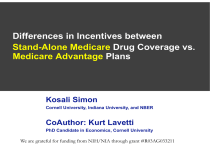 Differences in Incentives between Stand-Alone Medicare Drug Coverage vs. Medicare Advantage Plans Kosali Simon Cornell University, y, Indiana University, y, and NBER CoAuthor: Kurt Lavetti PhD Candidate in Economics, Cornell University We are grateful for funding from NIH/NIA through grant #R03AG033211 • Well-known tradeoffs between drugs and non-drug healthcare costs – “Medicare today will pay for extended hospital stays for ulcer surgery. surgery That That’ss at a cost of about $28,000 $28 000 per patient. Yet Medicare will not pay for the drugs that eliminate the cause of most ulcers, drugs that cost about $500 $ a year....Drug coverage under Medicare will allow seniors to replace more expensive surgeries and hospitalizations with less expensive prescription medicine.” (Source: G.W.B., December 8th 2003 MMA signing, emphasis added) • Unclear whether there are incentives to internalize these spillovers within stand-alone drug coverage • =>MA & PDPs have incentives to approach f formulary l d design i diff differently tl 1| Motivation Regulation limits the extent to which they can act on differential incentives – In aggregate, each plan formulary must be actuarially equivalent to standard benefit • Provides formulary flexibility in treatment of specific drugs, and allowed to use management tools – Must cover at least two drugs g in each therapeutic p class,, and substantially all drugs in 6 key classes • Cost sharing is not regulated; drugs just have to be on formulary – Pl Plans are prohibited hibit d from f decreasing d i generosity it after ft openenrollment • Permitted to make formularies more generous after open-enrollment – Coverage is heavily subsidized, with open enrollment periods, lessening scope for selection – Part D reinsurance reinsurance, risk adjustments in drug and non non-drug drug reimbursements in Medicare =>Despite restrictions, plans may still have incentive to engage in selection and medical management • 2| Formulary Design Restrictions • Hypothesis 1: MA formularies are more generous than SA formularies for drugs whose use can lower non-drug medical costs • T To test t t effect ff t off medical di l managementt incentive on formulary design: – Identify drugs that should have large non-drug cost offsets (”List M” drugs) – Test whether MA plan formularies treat List M drugs more generously than do SA plans, relative to other drugs covered by each plan plan. – Focus on formularies outside open-enrollment to avoid confounding selection issues issues. • 3| Medical Management Hypothesis • Hypothesis 2: MA plans also differ from SA plans l in i the th incentive i ti to t discourage di enrollment (or to encourage disenrollment) of beneficiaries with ith high medical costs costs. • To test effect of selection incentive on formulary design: – Identify drugs commonly taken by patients with large non-drug medical costs (”List S” drugs) – Test whether MA plan formularies during open enrollment treat List S drugs less generously than do MA formularies outside open open-enrollment. enrollment. • 4| Selection Hypothesis During Open Enrollment Outside Open Enrollment MA Plans Selection, Spillovers No Selection, Spillovers SA Plans No Selection, No Spillovers No Selection, No Spillovers Australian PBS No Selection, Selection Spillovers No Selection, Selection Spillovers – ’Selection’ Selection • a plan has the incentive to select patients with lower non-drug medical costs – ’Spillovers’ • Medical Management; a plan has the incentive to internalize tradeoffs between drugs and other medical treatment options • 5| Identification Summary – Chandra, Gruber and McKnight, 2010 – Goldman and Philipson, 2007 – Fendrick F d i k ett al., l 2001 – (& many others) => useful for defining drug list M • 6| Evidence of Drug and Non-Drug Spillovers – Lustig, 2007 • Evidence that the existence of adverse selection causes i insurers to t distort di t t design d i off insurance i plans l in i Medicare+Choice, leading to social welfare loss • 7| Evidence of Insurer Selection • CMS Formulary Files – Has cost-sharing rules and restrictions for every plan, every drug – Doesn't have full cost of drug (prior to 2009) • Plan Finder Pricing Data – Has full cost of drug – Sample p of drugs g ((not universe)) • Australian formulary – Has medical management incentive but no selection incentive • Preliminary work uses only 2007 data • 8| Data • Similar overall generosity • Both MA and SA plans decrease generosity during open enrollment via formulary restrictions – MA plans are more likely to increase use of quantity prior limits and p authorization during open enrollment • 9| Summary Stats Descriptive Statistics: Plan Generosity 2007 Formulary Files Number of Plans Num of plan-drug pairs Quantity Limits Open Enrollment Non Open Enrollment Prior Authorization p Enrollment Open Non Open Enrollment Step Therapy p Enrollment Open Non Open Enrollment MAPDP 3 760 3,760 11,376,713 13.16% 14 26% 14.26% 11.46% 10.77% 11.59% 9.51% 2.01% 2.30% 1.55% PDP 2 100 2,100 8,460,255 12.88% 13 91% 13.91% 11.84% 11.96% 11.93% 12.00% 1.77% 2.17% 1.37% 2007 Planfinder Data • MA and SA plans have similar costsharing levels • Both MA and SA plans are more generous than the Australian formulary • 10| Summary Stats Average Initial Coverage Cost / Full Cost Num of plan-drug pairs MAPDP PDP 40.10% 67,717 40.80% 568,133 A tr li n FFormulary Australian r lr Number of Drugs Average g Initial Coverage g Cost / Full Cost Restricted Benefit Prior Authorization 3,876 50.36% 28.19% 28 15% 28.15% During Open Enrollment Outside Open Enrollment MA Plans Selection, Spillovers No Selection, Spillovers SA Plans No Selection, Selection No Spillovers No Selection, Selection No Spillovers Australian PBS p No Selection, Spillovers No Selection, Spillovers p • Generosityjd = b0 + b1ListMd + b2ListMd * MAj + b3MAj + ejd • Depende