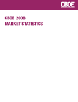 CBOE 2008 MARKET STATISTICS Table of Contents CBOE TRADING ACTIVITY - 2008 Total CBOE Options Trading Summary ..................................................................1 Total CBOE Options Average Premium Per Contract, Average Contracts Per Trade and Transactions................................................2 Total CBOE Options Contract Volume -All Options ..................................................3 Total Options Contract Volume By Exchange ..........................................................3 EQUITY OPTIONS - 2008 Equity Options Contract Volume ............................................................................4 Equity Options Open Interest and Dollar Volume.....................................................4 Equity Options Average Premium Per Contract, Average Contracts Per Trade and Transactions................................................5 Equity Options Contract Volume By Exchange ........................................................5 Equity LEAPS® Contract Volume and Dollar Volume................................................6 Equity LEAPS Average Contracts Per Trade and Transactions .................................6 Equity FLEX® Options Contract Volume, Open Interest and Dollar Volume ................7 Equity FLEX Options Average Premium Per Contract, Average Contracts Per Trade and Transactions................................................7 Equity LEAPS Contract Volume Detail ....................................................................8-27 CBOE Equity Options Volume .............................................................................28-67 CBOE Top 100 Equity Options Ranked By Volume ................................................68-69 CASH INDEX OPTIONS - 2008 (Each listing includes Contract Volume, Open Interest and Dollar Volume, Average Premium Per Contract, Average Contracts Per Trade and Transactions) Cash Index Options Launch Dates ......................................................................70 Most Active Cash Indexes-2008.........................................................................71-72 Total Cash Index Options ...................................................................................73-74 Total Cash Index Options Contract Volume By Exchange.......................................74 Total Cash Index FLEX (NDX, RUT, SPX)...............................................................75-76 Total CBOE Volume for FLEX, LEAPS, QUARTERLY, WEEKLY and Binary Options ....76 SPX® (S&P 500®) ..............................................................................................77-78 XSP® (Mini-S&P 500® Index) ..............................................................................79-80 OEX® (S&P 100®) ..............................................................................................81-82 XEO® (S&P 100® European Style) .......................................................................83-84 DJX (Dow Jones Industrial AverageSM) ................................................................85-86 NDX (Nasdaq-100 Index®) .................................................................................87-88 MNX (Mini Nasdaq-100 Index®) .........................................................................89-90 RUT (Russell 2000® Index) ................................................................................91-92 RVX (Russell 2000 Volatility Index) ......................................................................93-94 VIX (CBOE S&P 500 Volatility Index).....................................................................95-96 VXN (NASDAQ Volatility Index).............................................................................97-98 Other Cash Index Option Products ......................................................................99-100 Other Cash Index Options Contract Volume Detail ..............................................101-102 BINARY OPTIONS - 2008 BSZ CBOE Binary Options (SPX) Contract Volume and Open Interest ..................103 BVZ CBOE Binary Options (VIX) Contract Volume and Open Interest.....................104 EXCHANGE TRADED FUNDS OPTIONS – 2008 (Each listing includes Contract Volume, Open Interest and Dollar Volume, Average Premium Per Contract, Average Contracts Per Trade and Transactions) Exchange Traded Funds-2008..........................................................................105-106 Most Active Exchange Traded Funds .................................................................107 Total Exchange Traded Funds Options ..............................................................108-109 Total Exchange Traded Funds Options Contract Volume By Exchange..................109 Total Exchange Traded Funds FLEX (DIA, EFA, IYR, QQQQ, SPY)………………110-111 Total CBOE Volume for FLEX, LEAPS and QUARTERLY Options ...........................111 QQQQ (Nasdaq 100® Shares) ...........................................................................112 DIA (DIAMONDS®)............................................................................................113 SPY (S&P Depository Receipts)..........................................................................114 IWM (iShares Russell 2000® Index Fund) ..........................................................115 Other Exchange Traded Funds Option Products .................................................116-117 Other Exchange Traded Funds Options Contract Volume Detail ...........................118-123 INTEREST RATE OPTIONS - 2008 (Each listing includes Contract Volume, Open Interest and Dollar Volume, Average Premium Per Contract, Average Contracts Per Trade and Transactions) Total Interest Rate Options ..............................................................................124-125 IRX Options ....................................................................................................126-127 FVX Options ................................