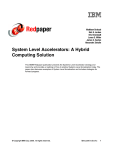 Redpaper Matthew Drahzal Kirk E. Jordan Eric Kronstadt Lance E. Miller James C. Sexton Alexander Zekulin System Level Accelerators: A Hybrid Computing Solution This IBM® Redpaper publication presents the Systems Level Accelerator strategy and taxonomy and provides a roadmap of how to employ Systems Level Accelerators today. The paper also discusses examples of System Level Acceleration and includes strategies for forward progress. © Copyright IBM Corp. 2008. All rights reserved. ibm.com/redbooks 1 Executive summary IBM Blue Gene® is the fastest computer architecture in the world, able to simulate nuclear collisions, the activity of the human mind, and the way a virus replicates. The IBM Cell Broadband Engine™ architecture provides supercomputer performance in a set-top gaming machine, as well as providing horsepower for the super computer system under development for Los Alamos National Labs. Yet, current mainstream system and software development paradigms have not embraced the power of these solutions for business- and technical-related computing. These specialized systems and processors, however, point the way into the future and in a direction that cannot be ignored. A review of compute technology shows that performance improvements have cycled through changes that have alternated between general purpose single central processor unit (CPU) speed increases and specialization. Historically, when performance improvements in High Performance Computing (HPC) were needed, specialization technologies such as vectorization and parallelization were embraced and then abandoned quickly as processor technology evolved. We depended upon Moore’s Law to improve single core performance, yet we always knew the speed of light would eventually limit that growth.1 Moore’s Law has held, but we have been cheating. Instead of adding more density to a single core, multiple core solutions on a single die have been created. Thus, the individual performance of each general purpose core has not improved. For single threaded applications, performance has hit the wall. The gating factor is just that, gate leakage at the very fundamentals of each microprocessor. In recent years gate leakage has been an increasing contributor to the passive power consumption in microprocessors. This paper proposes another paradigm: System Level Accelerators, the deployment of diverse compute resources to solve the problem of a single work stream, all with the experience of a single server to the user. Supported by middleware, ISV applications, and development tooling, System Level Acceleration allows you to take advantage of state-of-the-art specialized processors to accelerate applications without total code rewrite and speedup applications even faster than execution on a multi-core parallel system. Introduction This section discusses the current state of HPC and current industry trends. Current state of HPC This section discusses the current state of HPC. The end of classical CPU scaling IBM foresaw the end of CPU speed scaling many years ago and began to lay the framework for more innovative solutions by introducing the first multi-core POWER™ processors in 2001. Consequently, IBM has the most pervasive use of multi-core solutions in the market today, with experience in multithreaded and multi-core CPUs, servers, and application tooling. Although multi-core technology has extended Moore’s law for IBM, the performance increases to a single application can only, at best, be linear with the number of processors that are 1 2 Moore’s Law is the “empirical observation made in 1965 that the number of transistors on an integrated circuit for minimum component cost doubles every 24 months.” Source: Wikipedia System Level Accelerators: A Hybrid Computing Solution applied to the problem. Yet, as the industry approach 4 Gigahertz CPU speed, the current speed limit for general purpose processors, multi-core is all that are available, with many-core processors being the way of the future. As circuit sizing is reduced to the size of individual atoms, it is going to get rather difficult to get any smaller. There are two types of power that are used in calculating the power consumption of a processor: Active power, the power used to do work Passive power, the cost of being there Think of passive power as the overhead or bureaucracy of a processor. Figure 1 shows current trends of power consumption verse gate length (in microns). Notice that the passive power is approaching active power consumption. In recent years gate leakage has been an increasing contributor to the passive power consumption in microprocessors. So, as the gate length (size of the etchings of the lithography of a processor) shrinks, the bureaucracy increases, thus preventing processors from running at much higher speeds. When passive power equals active power, it is difficult to get any work done on a processor. 1000 100 Active Power 10 Passive Power 1 0.1 0.01 1994 2005 0.001 1 0.1 0.01 Gate Length (microns) Figure 1 Two relevant power consumption types in a microprocessor The energy crisis In addition to difficulty in obtaining greater speeds, we are now dealing with power consumption issues. IBM is beginning to see Requests for Proposals with floating point operations per megawatt as part of the information that is required. Electricity expense is becoming a large life-cycle issue for high performance computing users. As energy costs increase, the energy that is consumed by CPUs is becoming more important. The amount of energy that is required by a CPU increases polynomially (as the cube) with its speed. Larger clock speeds require more cooling, more airflow, and more electricity to drive the cooling System Level Accelerators: A Hybrid Computing Solution 3 process. If extra heat in a CPU is bad, the problem is exacerbated by the equally wasteful energy that is required to move the waste heat. It is no coincidence that the fastest Super Computer in the worl
