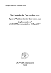 Eutrophication and Nutrients Series ----------------------------------------------------------------------------------------------------------------------------- Nutrients in the Convention area Inputs of Nutrients into the Convention area Implementation of PARCOM Recommendations 88/2 and 89/4 OSPAR Commission 2003 OSPAR Commission, 2003: Implementation of PARCOM Recommendations 88/2 and 89/4 ________________________________________________________________________________ The Convention for the Protection of the Marine Environment of the North-East Atlantic (the “OSPAR Convention”) was opened for signature at the Ministerial Meeting of the former Oslo and Paris Commissions in Paris on 22 September 1992. The Convention entered into force on 25 March 1998. It has been ratified by Belgium, Denmark, Finland, France, Germany, Iceland, Ireland, Luxembourg, Netherlands, Norway, Portugal, Sweden, Switzerland and the United Kingdom and approved by the European Community and Spain. La Convention pour la protection du milieu marin de l'Atlantique du nord-est, dite Convention OSPAR, a été ouverte à la signature à la réunion ministérielle des anciennes Commissions d'Oslo et de Paris, à Paris le 22 septembre 1992. La Convention est entrée en vigueur le 25 mars 1998. La Convention a été ratifiée par l'Allemagne, la Belgique, le Danemark, la Finlande, la France, l’Irlande, l’Islande, le Luxembourg, la Norvège, les Pays-Bas, le Portugal, le Royaume-Uni de Grande Bretagne et d’Irlande du Nord, la Suède et la Suisse et approuvée par la Communauté européenne et l’Espagne. © OSPAR Commission, 2003. Permission may be granted by the publishers for the report to be wholly or partly reproduced in publications provided that the source of the extract is clearly indicated. © Commission OSPAR, 2003. La reproduction de tout ou partie de ce rapport dans une publication peut être autorisée par l’Editeur, sous réserve que l’origine de l’extrait soit clairement mentionnée. ISBN 1-904426-16-6 2 OSPAR Commission, 2003: Implementation of PARCOM Recommendations 88/2 and 89/4 contents ________________________________________________________________________________ Summary 1. Introduction 2. Data submission 3. Nutrient discharges and losses at source 3.1 Diffuse losses at source 3.2 Discharges from sewage treatment works, sewerage and households not connected to public sewerage 3.3 Industry 3.4 Aquaculture 3.5 Reductions achieved per country at source towards the 50% reduction targets 4. Nutrient Inputs into the Sea 4.1 Introduction to riverine data 4.2 Nutrient inputs to the sea estimated by measured riverine loads 4.3 Inputs to the sea derived from source data and retention 5. Change in situation between 1995 and 2000 6. Conclusions 7. Considerations and existing related commitments 7.1 Atmospheric deposition on water bodies 7.2 Conclusions 8. References Annex 1: Implementation Reports from Belgium, Denmark, Germany, the Netherlands, Norway, Sweden and Switzerland. Annex 2: Overview of National Action Plans to achieve the 50% reduction target on nutrients; PARCOM Recommendation 89/4 Annex 3: Information provided by Contracting Parties on their national implementation of PARCOM Recommendation 89/4 4 5 7 8 8 8 9 11 11 13 14 14 15 15 16 17 17 17 18 19 28 33 3 OSPAR Commission, 2003: Implementation of PARCOM Recommendations 88/2 and 89/4 ________________________________________________________________________________ SUMMARY Based on data from 1985 and 2000, Belgium, Denmark, Germany, the Netherlands, Norway and Switzerland have all reached the 50% reduction target on phosphorus between 1985 and 2000 from sources in areas draining into their nationally defined problem areas. Sweden’s discharges/losses of phosphorus were reduced by about 34% between 1985 and 2000. Based on measures taken before 1985, Sweden is considered to have reached this target. The report from France was insufficient to allow an assessment of its progress towards achieving the 50% reduction target. Based on data from 1985 and 2000, no OSPAR Contracting Party committed to the 50% reduction in nutrient inputs has reached the 50% reduction target on nitrogen losses/discharges from sources in areas draining into defined problem areas. Germany and Denmark reached a reduction of 38–43% respectively. The report from France was insufficient to allow an assessment of its progress towards achieving the 50% reduction target. Although France has had problem areas with regard to eutrophication since 1990, no proper implementation report of PARCOM Recommendation 88/2 has been submitted to date. Ireland and the UK have in 2002 through the Comprehensive Procedure identified problem areas with regard to eutrophication, but not yet submitted any report in respect of these recently identified areas. Iceland has, to date, not reported on any identified problem area with regard to eutrophication. Luxembourg has not accepted PARCOM Recommendation 88/2. Compared with the situation in 1995, which was the year for the reduction target to be reached according to PARCOM Recommendation 88/2, Belgium have not reduced their nitrogen discharges/losses any further. The additional reductions in losses/discharges at source in the other countries vary from 6% in Sweden to 19% in Denmark. France reported a 19% reduction in discharges/losses of nitrogen in the period 1985-1996, but no information is provided for the year 2000. Compared with the situation in 1995, which was the year for the reduction target to be reached according to PARCOM Recommendation 88/2, Sweden has decreased its phosphorus discharges/losses at source with 11% between 1995 and 2000. In Denmark there has been no further reductions, whereas the additional reductions in losses/discharges in the other countries vary from 4% in Germany to 14% in the Netherlands and Norway. France reported a 26% reduction in discharges/losses of nitrogen in the period 1985-1995, but no information is p