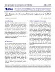 Engineer-to-Engineer Note a EE-301 Technical notes on using Analog Devices DSPs, processors and development tools Visit our Web resources http://www.analog.com/ee-notes and http://www.analog.com/processors or e-mail processor.support@analog.com or processor.tools.support@analog.com for technical support. Video Templates for Developing Multimedia Applications on Blackfin® Processors Contributed by Kaushal Sanghai Rev 1 – September 28, 2006 Introduction Video Templates Overview Blackfin® processors enable a variety of ways to efficiently manage data for high-performance applications. This document describes a set of “templates” that can be used to efficiently manage multimedia data on Blackfin processors. A video sequence can be regarded as a threedimensional (3-D) signal, comprising two dimensions in the spatial domain (i.e., a single 2D frame) and one dimension in the temporal domain (i.e., a temporal sequence of 2-D frames). The data flow of the video stream can thus be partitioned in one of the two dimensions: 1) a temporal dimension, or 2) a spatial dimension. In the temporal dimension, the data flow can be managed at the granularity of a group of pictures (GOP) level or at the frame level. In the spatial dimension, the data movement can be managed at the granularity of a line or a macro-block. These various levels of granularity in a video signal are called subprocessing blocks. Note that the granularity of the sub-processing decreases from GOP level to line level. The templates provided with this EE-Note can help users get started in implementing customized applications, as they can be modified to fit specific application needs. The first part of the EE-Note discusses the types of templates available, and the second part describes specific examples for each template. Background The size of data buffers involved in multimedia applications exceeds the processor’s internal memory space. To take advantage of the lowlatency access of the processor’s on-chip memory (L1/L2), some example templates have been created that can be used as a starting point to move peripheral data directly into L1 or L2 memory. The tradeoff to consider is between the size of the memory and the processing granularity of the image block within an application. The templates also exploit the predictable data access pattern inherent in multimedia applications to minimize the transfers required to move data between different levels of memory, thus improving resource utilization. The templates discussed in this document exploit the temporal and spatial characteristics inherent in video signals described above. The templates take advantage of the predictable data access pattern to hide the memory latencies and reduce the number of memory transfers between different levels of memory. In most image processing algorithms, the data access pattern of the sub-processing block is predictable. For example, in JPEG compression, the macro-blocks of an image are accessed sequentially across the rows. Table 1 shows Copyright 2006, Analog Devices, Inc. All rights reserved. Analog Devices assumes no responsibility for customer product design or the use or application of customers’ products or for any infringements of patents or rights of others which may result from Analog Devices assistance. All trademarks and logos are property of their respective holders. Information furnished by Analog Devices applications and development tools engineers is believed to be accurate and reliable, however no responsibility is assumed by Analog Devices regarding technical accuracy and topicality of the content provided in Analog Devices Engineer-to-Engineer Notes. a examples in which the access pattern of the subprocessing block is predictable. Example Application Comments Color Conversion (e.g., YUV to RGB) The image is accessed line by line Histogram Analysis Image data is accessed line by line Edge Detection Macro-blocks are accessed sequentially row wise JPEG/Motion JPEG Macro-blocks are accessed sequentially row wise Motion Detection Macro-blocks are accessed sequentially row wise; dependent on past frame MPEG2/MPEG4 Motion window sequentially across macroblocks; dependent on past and future frames Table 1. Predictable Access Patterns If the data access pattern of the image is known in advance, the data can be transferred to L1 memory before it is requested by the core. This avoids cycles consumed due to the core being held off for a memory request. Also, to hide the latency of the memory transfer, DMA can be effectively used in the background for any data transfer. Using DMA instead of cache helps to save core cycles consumed by cache misses. To further save system resources, the templates utilize the smaller and faster L1/L2 memory spaces by storing image data from the peripheral into on-chip memory, thus eliminating the delays that would be incurred during accesses to external SDRAM. This applies to algorithms that operate on finer sub-processing block granularities (i.e., a line or a macro-block). The templates are designed such that once the application’s sub-processing block is identified and the real time constrains are met, the image processing algorithm can be dropped into one of the templates to obtain an efficient data layout. This is demonstrated by taking specific examples for each of the templates. In certain algorithms, data dependency can exist between the sub-processing blocks in the temporal domain (i.e., current frame of reference and past or future frames). In these cases, managing data is more complicated. One such scenario is discussed in the Inter-Frame Processing template. The proposed video templates are discussed in the next few sections, and example applications are provided to demonstrate the recommended approach to using the templates. Proposed Video Templates In this section, three different templates, based on the granularity of the sub-processing block, are broadly described. They include the subpr