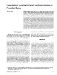 Using Relative Humidity to Predict Spotfire Probability on Prescribed Burns John R. Weir1 Abstract: Spotfires have and always will be a problem that burn bosses and fire crews will have to contend with on prescribed burns. Weather factors (temperature, wind speed and relative humidity) are the main variables burn bosses can use to predict and monitor prescribed fire behavior. At the Oklahoma State University Research Range, prescribed burns are conducted during different seasons of the year and in different fuel types all over the state of Oklahoma. Since 1996 records have been kept to track spotfires that occur on these prescribed burns. Most of these spotfires were due to firebrands caused by crowning eastern redcedar (Juniperus virginiana). Leaves from oak (Quercus spp.) trees or tallgrasses floating or blowing across the fireline and smoke or fire whirls were responsible for most of the other spotfires. When burn data were reviewed, one weather variable stood out as the main cause of spotfires, low relative humidity. Of the 99 burns conducted there were 21 spotfires. From the data, the probability of a spotfire occurring on any prescribed burn with the relative humidity between 20 and 80 percent was determined to be 21.2 percent or approximately one out of five burns. Looking at the 40 percent relative humidity threshold, there is a probability of 41.3 percent for a spotfire occurring below 40 percent and 3.8 percent above 40 percent. There also appears to be another threshold at less than 25 percent relative humidity. At this point, there is a 100 percent probability of a spotfire occurring. With this information burn bosses can determine spotfire potential when considering burn units or burn days. It can also assist them when considering crew size and equipment needed. Most of all, inexperienced burn bosses can use this to help reduce risk (liability) and increase safety for their crews. Introduction Spotfires have and always will be a problem that burn bosses and fire crews will have to contend with on prescribed burns. Spotfires can cause mental and physical stress on burn bosses and crews if they occur or not. If a spotfire does take place it can cause injury to personnel or even loss of life, as well as monetary damages and loss of public support for the prescribed burning program. From interviewing many private and public land managers in Oklahoma, spotfires or risk of escape (liability) is the main reason many of them do not conduct prescribed fires. Many of these land managers have the personnel and equipment needed to conduct prescribed fires, but lack the experience or knowledge to deal with spotfires. So any type of simple guideline or rule-of-thumb is always needed to assist these people with their prescribed fires. Temperature, wind speed, and relative humidity are the most important weather factors that burn bosses can use to predict and monitor prescribed fire behavior. Bunting and Wright (1974) determined that danger from firebrands was lower if the ambient air temperature was below 60ºF (15ºC) when conducting prescribed burns. Burning above 40 percent relative humidity has been shown to slow rates of spread significantly (Lindenmuth and Davis 1973) and reduce danger from firebrands (Green 1977). Wind speeds of 8 mph (13 km/h) are needed to ignite and burn standing fuels (Britton and Wright 1971), but with winds over 20 mph (32 km/h) firebrands and other debris become problems (Wright and Bailey 1982). As indicated from the research, there are several weather related thresholds that influence the occurrence of spotfires. So if spotfire causes can be narrowed down to one key weather factor, this will help burn bosses to focus on that single variable, possibly reducing the likelihood of spotfires. Methods At the Oklahoma State University Research Range (OSURR) prescribed burns are conducted during different seasons of the year and in different fuel types all over the state of Oklahoma. These burns are conducted in a wide variety of fuels: Tallgrass Prairie (NFES fuel models 1, 3), PostoakBlackjack Oak (NFES fuel models 3, 8, 9), Eroded Mixed Prairie (NFES fuel models 1, 3), Sandsage Grassland (NFES fuel model 4), and Oak-Pine Forest (NFES fuel models 3, 8, 9, 11) (NFES fuel models from Anderson 1982). Since 1996, records have been kept to track spotfires that occur on these prescribed burns. For this study, a spotfire is considered any fire that occurs outside the burn unit no matter what size it is or what caused it. The size of a spotfire is relative to fuel loads outside of the burn unit, crew size, crew experience, equipment present, equipment dependability, firebreak type and size, and weather conditions. The spotfires during this study ranged in size from less than 1 ft2 (.09-m2) to 120 acres (264 ha). Most of these spotfires were due to firebrands caused by crowning eastern redcedar (Juniperus virginiana), while leaves from In: Sosebee, R.E.; Wester, D.B.; Britton, C.M.; McArthur, E.D.; Kitchen, S.G., comp. 2007. Proceedings: Shrubland dynamics—fire and water; 2004 August 10-12; Lubbock, TX. Proceedings RMRS-P-47. Fort Collins, CO: U.S. Department of Agriculture, Forest Service, Rocky Mountain Research Station. 173 p. USDA Forest Service RMRS-P-47. 2007 69 Figure 1. Fire whirls and ignition by other volatile fuels can cause spotfires on prescribed burns. The probability of a spotfire occurring is considerably less when the burn is conducted when the relative humidity is over 40 percent. oak (Quercus spp.) trees or tallgrasses floating or blowing across the fireline and smoke or fire whirls were responsible for most of the other spotfires (fig. 1). When prescribed fires are conducted by the OSURR crew, weather is recorded on site before, during and after the burn. This weather data consists of dry bulb and wet bulb temperature, wind speed and direction, and relative humidity, which is calculated from the dry and wet bulb temperatures. Information is also reco