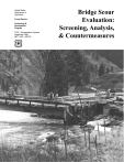 United States Department of Agriculture Forest Service Technology & Development Program 7700—Transportation Systems September 1998 9877 1207—SDTDC Bridge Scour Evaluation: Screening, Analysis, & Countermeasures Bridge Scour Evaluation: Screening, Analysis, & Countermeasures John Kattell, P.E. Regional Bridge Engineer USDA Forest Service Region 1 Merv Eriksson, P.E. Project Leader San Dimas Technology and Development Center/ Bridge Engineer Wood in Transportation Program USDA Forest Service San Dimas Technology and Development Center San Dimas, California September 1998 Information contained in this document has been developed for the guidance of employees of the Forest Service, USDA, its contractors, and cooperating Federal and State agencies. The Department of Agriculture assumes no responsibility for the interpretation or use of this information by other than its own employees. The use of trade, firm, or corporation names is for the information and convenience of the reader. Such use does not constitute an official evaluation, conclusion, recommendation, endorsement, or approval of any product or service to the exclusion of others that may be suitable. The United States Department of Agriculture (USDA) prohibits discrimination in its programs on the basis of race, color, national origin, sex, religion, age, disability, political beliefs, and marital or familial status. (Not all prohibited bases apply to all programs.) Persons with disabilities who require alternative means for communication of program information (braille, large print, audiotape, etc.) should contact USDA’s TARGET Center at 202-720-2600 (voice and TDD). To file a complaint, write the Secretary of Agriculture, U.S. Department of Agriculture, Washington, DC 20250, or call 1-800-245-630 (voice) or 202-7201127 (TDD). USDA is an equal opportunity employer. ACKNOWLEDGMENTS A project of this scope requires the efforts of many people. The authors gratefully acknowledge the Washington Office Engineering Staff and the Technology and Development Program Engineering Steering Committee for providing guidance and funding. The following persons are thanked for project guidance, reviewing documentation, and providing comments on use and applications: Dick Jones, Regional Hydraulic/Geotechnical Engineer, USDA Forest Service Region 8 Nelson Hernandez, Structural Engineer, USDA Forest Service Washington Office Bill Grabner, Regional Bridge Engineer, USDA Forest Service Region 6 Scott Mitchell, Regional Bridge Engineer, USDA Forest Service Region 2 iii CONTENTS ACKNOWLEDGMENTS ..................................................................................................................... iii INTRODUCTION ................................................................................................................................ 1 SCOUR EVALUATION REFERENCE STANDARDS ......................................................................... 2 FOREST SERVICE SCOUR EVALUATION PROGRAM ................................................................... 2 Required FHWA Reporting ..................................................................................................... 4 Documentation and Program Monitoring ................................................................................ 4 STEP 1 - OFFICE SCREENING AND MANAGEMENT PRIORITY ANALYSIS ................................. 4 STEP 1A - OFFICE SCREENING ...................................................................................................... 4 Objective ................................................................................................................................ 4 Office Screening Flow Chart .................................................................................................. 5 Suggested Responsible Person(s) ......................................................................................... 5 Recommended Documentation .............................................................................................. 5 STEP 1B - MANAGEMENT PRIORITY ANALYSIS ........................................................................... 5 Objective ................................................................................................................................ 5 Management Priority Analysis Flow Chart .............................................................................. 8 Suggested Responsible Person(s) ......................................................................................... 9 Recommended Documentation .............................................................................................. 9 STEP 2 - FIELD REVIEW, SCOUR VULNERABILITY ANALYSIS, & PRIORITIZE ........................... 9 STEP 2A - FIELD REVIEW ................................................................................................................ 9 Objective ................................................................................................................................ 9 Suggested Responsible Person(s) ....................................................................................... 10 Recommended Documentation ............................................................................................ 10 STEP 2B - SCOUR VULNERABILITY ANALYSIS ........................................................................... 10 Objective .............................................................................................................................. 10 Scour Vulnerability Appraisal ................................................................................................ 10 Available Methodologies ...................................................................................................... 10 CAESAR ............................................................................................................................... 10 Colorado Highway Department Scour Vulne