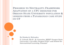 PROGRESS TO NEUTRALITY: FRAMEWORK ADAPTATION OF A CFC DESIGNED FOR OREGON STATE UNIVERSITY POPULATION & LESSONS FROM A PANAMANIAN CASE STUDY ON CF By Kimberly Melendez F. Colwell, Ph.D.1, R. Gonzalez, MIDP2 Oregon State University, Corvallis, Oregon 973311 and School for International Learning, Panama2 ROAD MAP General Introduction Background: • • • • • • • Greenhouse gas effect Climate change & The concept of sustainability What is a Calculator? How Carbon foot-printing may affect future neutrality goals OSU consumption Renewable Energy & Non-renewable Energy Two objectives 1st Objective Methods • Selecting a carbon footprint calculator Results • My Framework 2nd Objective • • • • • Question of Interest Methods and Methodology Carbon Footprint Calculations Results Discussion • • Conclusions from Panama Case Study OSU CFC Framework Conclusions: Now & future CLIMATE CHANGE Due to human activities, greenhouse gases have increased beyond expected pre-industrialized expectation.(Solomon, 2007). Preindustrial Values: 270 ppmv Today: 390 ppmv It is estimated that by 2050, there will be a 70% increase in oil demand and a rise of 130% in CO2 emissions (IEA, 2008). CLIMATE CHANGE The temperatures of the Earth have warmed about 0.7 degrees Celsius in the last hundred years. Consensus: Through 'International Journal of Public Opinion' published by Oxford University Press: 97% of the 489 surveyed said that scientists agreed that global temperatures have increased in the last century and more than 84% agree that the “human induced greenhouse warming” is now occurring. SUSTAINABILITY: IMPORTANT CONCEPT Throughout the world: Increasing energy consumption Increasing population sizes Environmental issues of depletion Source: meltingcoal.org, 2013 At the rate we consume one cannot simply ignore the present issues of climate change and it’s importance to our society. What is a Carbon Footprint Calculator? A measure of the total amount of carbon dioxide (CO2) and methane (CH4) emissions of a defined population, system or activity, considering all relevant sources, sinks and storage within the spatial and temporal boundary of the population, system or activity of interest. Calculated as carbon dioxide equivalent (CO2e). (Wright, L.; Kemp, S., Williams, I. 2011). FUTURE NEUTRALITY GOALS Oregon State University is one of many universities and college campuses hoping to decrease the release of greenhouse gases. Through a campus wide initiative OSU aims for a carbon neutral campus by 2025. Carbon Neutrality: “Pertaining to or having achieved a state in which the net amount of carbon dioxide or other carbon compounds emitted into the atmosphere is reduced to zero because it is balanced by actions to reduce or offset these emissions.” (dictionary.com, 2013) 124, 906 ECO2 :OSU’S FISCAL YEAR 2012 NET EMISSIONS FOR OSU EQUAL TO… Reser Stadium: 73 m Two objectives 1st objective: Establish a framework for the adaptation of a carbon footprint calculator to help gauge progress of OSU to its goal of campus neutrality by 2025. The proposed framework will analyze the carbon footprint calculator methodology and calculations as well as support background information to available local carbon neutral projects in the surrounding areas . 2nd objective: Analyze carbon footprint data collected in Panama as a point of comparison for carbon consumption. In an effort to understand the sustainable practices of Cerro Punta a survey was created to ascertain the carbon footprint of the inhabitants and the effects a small community may have towards their own goals of neutrality. Objective 1: Establishing A Framework 1ST OBJECTIVE: METHODOLOGY Collected information from various sources, including websites, reports, and peer-reviewed literature. Comparison of carbon footprint calculators; selecting carbon footprint calculator to adapt 1ST OBJECTIVE: RESULTS Carbon Footprint Calculator Comparisons Travel PDX-ANC Offset ------------ CO2/year (Metric Tons) 2.2 Nature Conservancy Terapass 3,076 0.54 $11.90 Carbon Fund 3,096 0.52 $5.73 Conservation International 2500-5000 3.1 $37.00 ------------ 0.49 Options to offset: $5.81- clean energy $7.35-Emission Reduct. $14.24Reforestation $18.99- UK tree planting Carbon Calculator, Ltd. $30 Table 2. Comparison of results obtained using different carbon footprint calculators to assess the carbon released as a result of a PDX-ANC round trip flight. RESULTS FOR CARBON FOOTPRINT CALCULATOR COMPARISONS Differences between calculators, may be because of possible ‘assumptions’ upon which organizations base their calculations. Many boast most accurate but each end result different. The best way to determine accuracy would be to evaluate their methodology and calculation process. However, this is not available for many calculators. Carbon footprint calculators lack consistency as well as information of their estimations and methods (padgett, 2008). SANTA CLARA UNIVERSITY CARBON CALCULATOR Through my research I chose Santa Clara University Carbon Footprint Calculator to adapt. I’ve found that every calculator has their own quirks that range from advantageous or in a small way still in need of improvement. I’ve found that calculator accuracy usually depend on the interpretation of each organization, the creative process in which they’ve obtained their calculations, and sources upon which they’ve based their calculations. Santa Clara University Carbon footprint calculator shows a step by step process on their creation of their carbon footprint calculator which includes calculations and methodology. FRAMEWORK On Campus Off Campus or Full-time Commuter Student Part time Commuter Student/Faculty and Staff Subsections will include: OSU Neutrality goal Introduction to the OSU carbon footprint calculator Transportation Energy usage: Items (e.g. fridge, microwave, laptop, etc) # of items, set wattage, usage: hrs in day plugged in Waste Amount of waste recycle: belo