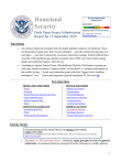 Homeland Security Current Nationwide Threat Level ELEVATED Daily Open Source Infrastructure Report for 15 September 2010 Significant Risk of Terrorist Attacks For information, click here: http://www.dhs.gov Top Stories • An ominous theme has emerged from the deadly pipeline explosion in California: There are thousands of aging more than 50-year-old pipes — past the normal life expectancy of steel pipes — just like it nationwide, and many experience mishaps. Federal officials have recorded 2,840 significant gas pipeline accidents since 1990, more than a third causing deaths and significant injuries. (See item 1) • According to Agence France-Presse, Whistleblower Web site WikiLeaks is teaming up with news outlets to release a “massive cache” of classified U.S. military field reports on the conflict in Iraq — a leak one journalism group called the “biggest leak of military intelligence” ever — Newsweek magazine reported September 10. (See item 41) Fast Jump Menu PRODUCTION INDUSTRIES • Energy • Chemical • Nuclear Reactors, Materials and Waste • Critical Manufacturing • Defense Industrial Base • Dams SUSTENANCE and HEALTH • Agriculture and Food • Water • Public Health and Healthcare SERVICE INDUSTRIES • Banking and Finance • Transportation • Postal and Shipping • Information Technology • Communications • Commercial Facilities FEDERAL and STATE • Government Facilities • Emergency Services • National Monuments and Icons Energy Sector Current Electricity Sector Threat Alert Levels: Physical: ELEVATED, Cyber: ELEVATED Scale: LOW, GUARDED, ELEVATED, HIGH, SEVERE [Source: ISAC for the Electricity Sector (ES-ISAC) [http://www.esisac.com] 1. September 14, The Associated Press – (National) Aging gas pipes at risk of explosion nationwide. An ominous theme has emerged from the wreckage of a deadly pipeline -1- explosion in California: There are thousands of pipes just like it nationwide. The pipe was more than 50 years old — right around the life expectancy for steel pipes. It was part of a transmission line that had an “unacceptably high” risk of failure. And it was in a densely populated area. Thousands of pipelines nationwide fit the same bill, and they frequently experience mishaps. Federal officials have recorded 2,840 significant gas pipeline accidents since 1990, more than a third causing deaths and significant injuries. Utilities have been under pressure for years to better inspect and replace aging gas pipes many of them laid years before the suburbs expanded over them and now are at risk of leaking or erupting. But the effort has fallen short. Critics said the regulatory system is ripe for problems because the government leaves it up to the companies to do inspections, and utilities are reluctant to spend the money necessary to properly fix and replace decrepit pipelines. Source: http://www.msnbc.msn.com/id/39159597/ns/us_news-life/ 2. September 13, Reuters – (California) PG&E ordered to inspect gas pipeline after blast. California regulators have ordered utility PG&E Corp to inspect its natural gas pipeline system following an explosion that destroyed a neighborhood in San Bruno last week, killing four people. The California Public Utilities Commission (CPUC) asked PG&E to immediately conduct an integrity assessment of its natural gas pipeline system. The regulators want the utility to survey all natural gas lines, particularly those that carry gas at higher pressure and those in areas of highest population density. CPUC also plans to appoint an independent panel of experts to help its investigation. In addition to killing four, the blast, caused by a ruptured natural gas pipeline, and ensuing firestorm destroyed 37 homes and injured more than 50 people. The 30-inch steel gas transmission pipeline belongs to PG&E, which has set up a $100 million fund to help the residents and city of San Bruno. Source: http://www.reuters.com/article/idUSTRE6890O120100913 3. September 13, Reuters – (National) Enbridge shuts 3rd pipeline, outages near 1 million bpd. A small oil spill September 13 forced Enbridge Inc. to close an oil pipeline in New York, just four days after another leak in Illinois forced it to shut a massive Canadian crude export pipeline. The Calgary, Canada-based pipeline giant said it shut the 70,000 barrel per day (bpd) Line 10, a 91-mile pipe from Westover, Ontario, Canada into New Yorke. The latest shutdown came after an oil spill near Buffalo, New York, which appeared tiny and was likely measurable in ounces, not gallons, a New York-based official at the U.S. Environmental Protection Agency told Reuters. There are now three U.S. stretches of Enbridge pipeline shut due to leaks, idling 930,000 barrels a day (bpd) of the company’s capacity. That is equivalent to around half the volume of Canadian oil shipped daily to the United States. Enbridge said September 13, work crews removed a damaged, 12-foot section of the largest oil pipeline linking Canada to the United States, Midwest, Line 6A, which spilled crude in Illinois September 9. Source: http://www.reuters.com/article/idUSN1320274720100914 [Return to top] -2- Chemical Industry Sector 4. September 13, Northwest Cable News – (Washington) Semi wreck shuts down I-90 west of Spokane in hazmat situation. A semi carrying 3,000 pounds of caustic sodium hydroxide rolled over on Interstate 90 west of Spokane, Washington, about 5:45 a.m. September 13, completely shutting down I-90 eastbound, and forcing drivers onto a detour around the wreck. The sodium hydroxide did not leak. It was contained inside of barrels in the semi’s two trailers. The male driver was trapped, but fire department crews were able to cut him out of the cab. An ambulance took the driver to Sacred Heart Medical Center, who suffered non-life-threatening injuries. The semi left the freeway, rolled and ended up on its side in the middle of I-90. The Washington State Patrol said the driver might have a me