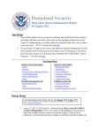 Homeland Security Daily Open Source Infrastructure Report 26 August 2011 Top Stories Three million gallons of raw sewage are streaming into the Missouri River each day in Omaha, Nebraska, after heavy rains took out four pumping stations the week of August 22, adding another six million gallons to untreated water daily since a station went out in June. – KETV 7 Omaha (See item 26) The governors of Virginia, New Jersey, and Maryland declared emergencies for their states, and the North Carolina governor declared a state of emergency in the eastern part of the state August 25 as Hurricane Irene threatened the United States’ Eastern Seaboard. – CNN (See item 31) Fast Jump Menu PRODUCTION INDUSTRIES • Energy • Chemical • Nuclear Reactors, Materials and Waste • Critical Manufacturing • Defense Industrial Base • Dams SUSTENANCE and HEALTH • Agriculture and Food • Water • Public Health and Healthcare SERVICE INDUSTRIES • Banking and Finance • Transportation • Postal and Shipping • Information Technology • Communications • Commercial Facilities FEDERAL and STATE • Government Facilities • Emergency Services • National Monuments and Icons Energy Sector Current Electricity Sector Threat Alert Levels: Physical: LOW, Cyber: LOW Scale: LOW, GUARDED, ELEVATED, HIGH, SEVERE [Source: ISAC for the Electricity Sector (ESISAC) - [http://www.esisac.com] 1. August 25, WPVI 6 Philadelphia – (Pennsylvania) Power restored to 20K in northeast Philadelphia. Power was restored in Philadelphia, Pennsylvania, to more than 20,000 customers who lost electricity August 25 after a fire at substation. A Pennsylvania Electric Company spokesman said the fire broke out -1- around 4:45 a.m. August 25 and damaged a circuit breaker. The fire mostly involved electrical cable contained within a control building and there are no reports of injuries. The spokesman said the fire was eventually extinguished around 7 a.m. He said all power was restored by midday after crews worked to reenergize the substation. Source: http://abclocal.go.com/wpvi/story?section=news/local&id=8325763 2. August 25, Associated Press – (California) Threat of propane blast ends in California. Authorities said thousands of evacuees returned home August 25 after fire crews contained a burning propane rail tanker and ended the threat of a major explosion in Lincoln, California. The Lincoln fire chief said firefighters allowed the propane rail tanker burn itself out after determining the car held less propane than previously thought. He said the fire from the tanker burned out before midnight, but then crews reignited it to allow vapors caught in the tank to also burn away. He said the threat of a catastrophic blast no longer exists and an evacuation order for Lincoln was lifted just after midnight. Between 4,000 and 5,000 homes in the northern California city of 40,000 people had been evacuated, and more than 6,000 students missed their first day of classes. Source: http://www.msnbc.msn.com/id/44269146/ns/us_news/#.TlZhrF0g1kA 3. August 25, Associated Press – (National) MSHA issues 375 citations, orders at mines in July. Federal regulators issued 375 citations and orders during special mine inspections in July. The Mine Safety and Health Administration (MSHA) said August 24 the inspections were conducted at 10 coal mines and 5 other mines in July. Coal mines were issued the majority of those 256 that were issued were citations and orders. Among the inspections, 32 citations and orders were issued at Wilcoal Mining Inc’s Tri-State One Mine in Claiborne County, Tennessee, and 13 were issued from an inspection at Inman Energy’s Randolph Mine in Boone County. The agency started the special inspections after 29 miners died in an explosion at the Upper Big Branch coal mine in southern West Virginia in April 2010. Since then, MSHA said it has conducted 307 inspections that have resulted in 5,526 violations and 518 orders. Source: http://www.wrcbtv.com/story/15329725/msha-issues-375-citationsorders-at-mines-in-july 4. August 24, Shreveport Times – (Louisiana) Storm brings rain, but heat still on tap for Thursday. About 30,000 Southwestern Electric Power Company customers in the Shreveport-Bossier City, Louisiana area were without power August 24 after storms with winds of up to 60 miles an hour downed trees and power lines. Bossier Parish school officials planned to review power outage information early August 25 before deciding whether to hold classes. Fire departments and police responded to scores of calls about downed trees and power lines as the line of storms swept through the area about 1:30 p.m. The area remained under a severe thunderstorm watch until 7 p.m. Source: http://www.shreveporttimes.com/article/20110824/NEWS01/110824014/Updated -Nearly-28-000-without-electricity?odyssey=tab|topnews|text|FRONTPAGE -2- 5. August 24, Reuters – (Texas) Texas grid declares power emergency due to heatwave. The Texas power grid agency initiated an electric emergency August 24 for the second day in a row as available power supplies strained to meet air conditioning load during a statewide heat wave. No rolling outages were reported, and afternoon demand was not expected to break the record demand August 3 of 68,294 megawatts. The Texas grid operator urged residents and businesses to reduce electric use daily from 3 p.m. to 7 p.m. At 2:30 p.m., power demand exceeded 65,000 MW. The grid agency declares the first step of its emergency plan when power reserves needed to avoid a widespread blackout fall below 2,300 MW. Source: http://news.yahoo.com/texas-grid-declares-power-emergency-dueheatwave-195309852.html 6. August 23, Associated Press – (Colorado) Federal management plan looking at doubling gas wells in southwest Colorado. Federal officials are reviewing a land management plan that could spark a new gas boom in southwestern Colorado, the Associated Press reported August 23. San Juan National Forest supervisor said new 