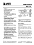 a FEATURES PERFORMANCE 25 ns Instruction Cycle Time 40 MIPS Sustained Performance Single-Cycle Instruction Execution Single-Cycle Context Switch 3-Bus Architecture Allows Dual Operand Fetches in Every Instruction Cycle Multifunction Instructions Power-Down Mode Featuring Low CMOS Standby Power Dissipation with 200 Cycle Recovery from Power-Down Condition Low Power Dissipation in Idle Mode INTEGRATION ADSP-2100 Family Code Compatible, with Instruction Set Extensions 20K Bytes of On-Chip RAM, Configured as 4K Words On-Chip Program Memory RAM and 4K Words On-Chip Data Memory RAM Dual Purpose Program Memory for Both Instruction and Data Storage Independent ALU, Multiplier/Accumulator and Barrel Shifter Computational Units Two Independent Data Address Generators Powerful Program Sequencer Provides Zero Overhead Looping Conditional Instruction Execution Programmable 16-Bit Interval Timer with Prescaler 100-Lead LQFP SYSTEM INTERFACE 16-Bit Internal DMA Port for High Speed Access to On-Chip Memory (Mode Selectable) 4 MByte Byte Memory Interface for Storage of Data Tables and Program Overlays (Made Selectable) 8-Bit DMA to Byte Memory for Transparent Program and Data Memory Transfers (Mode Selectable) I/O Memory Interface with 2048 Locations Supports Parallel Peripherals (Mode Selectable) Programmable Memory Strobe and Separate I/O Memory Space Permits “Glueless” System Design (Mode Selectable) Programmable Wait State Generation Two Double-Buffered Serial Ports with Companding Hardware and Automatic Data Buffering Automatic Booting of On-Chip Program Memory from Byte-Wide External Memory, e.g., EPROM, or Through Internal DMA Port ICE-Port is a trademark of Analog Devices, Inc. All trademarks are the property of their respective holders. DSP Microcomputer ADSP-2184 FUNCTIONAL BLOCK DIAGRAM POWER-DOWN CONTROL DATA ADDRESS GENERATORS PROGRAM SEQUENCER DAG 1 DAG 2 MEMORY 4K 3 24 4K 3 16 PROGRAM DATA MEMORY MEMORY FULL MEMORY MODE PROGRAMMABLE I/O AND FLAGS EXTERNAL ADDRESS BUS EXTERNAL DATA BUS PROGRAM MEMORY ADDRESS DATA MEMORY ADDRESS BYTE DMA CONTROLLER PROGRAM MEMORY DATA OR DATA MEMORY DATA EXTERNAL DATA BUS ARITHMETIC UNITS ALU MAC SHIFTER SERIAL PORTS SPORT 0 SPORT 1 ADSP-2100 BASE ARCHITECTURE TIMER INTERNAL DMA PORT HOST MODE Six External Interrupts 13 Programmable Flag Pins Provide Flexible System Signaling UART Emulation through Software SPORT Reconfiguration ICE-Port™ Emulator Interface Supports Debugging in Final Systems GENERAL DESCRIPTION The ADSP-2184 is a single-chip microcomputer optimized for digital signal processing (DSP) and other high speed numeric processing applications. The ADSP-2184 combines the ADSP-2100 family base architecture (three computational units, data address generators and a program sequencer) with two serial ports, a 16-bit internal DMA port, a byte DMA port, a programmable timer, Flag I/O, extensive interrupt capabilities and on-chip program and data memory. The ADSP-2184 integrates 20K bytes of on-chip memory configured as 4K words (24-bit) of program RAM and 4K words (16-bit) of data RAM. Power-down circuitry is also provided to meet the low power needs of battery operated portable equipment. The ADSP-2184 is available in 100-lead LQFP package. In addition, the ADSP-2184 supports instructions that include bit manipulations—bit set, bit clear, bit toggle, bit test— ALU constants, multiplication instruction (x squared), biased rounding, result free ALU operations, I/O memory transfers, and global interrupt masking for increased flexibility. Fabricated in a high speed, double metal, low power, CMOS process, the ADSP-2184 operates with a 25 ns instruction cycle time. Every instruction can execute in a single processor cycle. REV. 0 Information furnished by Analog Devices is believed to be accurate and reliable. However, no responsibility is assumed by Analog Devices for its use, nor for any infringements of patents or other rights of third parties which may result from its use. No license is granted by implication or otherwise under any patent or patent rights of Analog Devices. One Technology Way, P.O. Box 9106, Norwood, MA 02062-9106, U.S.A. Tel: 781/329-4700 World Wide Web Site: http://www.analog.com Fax: 781/326-8703 © Analog Devices, Inc., 1999 ADSP-2184 The EZ-ICE performs a full range of functions, including: • In-target operation • Up to 20 breakpoints • Single-step or full-speed operation • Registers and memory values can be examined and altered • PC upload and download functions • Instruction-level emulation of program booting and execution • Complete assembly and disassembly of instructions • C source-level debugging The ADSP-21xx family DSPs contain a shadow bank register that is useful for single cycle context switching of the processor. The ADSP-2184’s flexible architecture and comprehensive instruction set allow the processor to perform multiple operations in parallel. In one processor cycle the ADSP-2184 can: • Generate the next program address • Fetch the next instruction • Perform one or two data moves • Update one or two data address pointers • Perform a computational operation This takes place while the processor continues to: • Receive and transmit data through the two serial ports • Receive or transmit data through the internal DMA port • Receive or transmit data through the byte DMA port • Decrement timer See Designing An EZ-ICE-Compatible Target System in the ADSP-2100 Family EZ-Tools Manual (ADSP-2181 sections), as well as the Target Board Connector for EZ-ICE Probe section of this data sheet, for the exact specifications of the EZ-ICE target board connector. Additional Information This data sheet provides a general overview of ADSP-2184 functionality. For additional information on the architecture and instruction set of the processor, refer to the ADSP-2100 Family User’s Manual, Third Edition. For more information about the development tools, refer to the ADSP-2100 Family Development Too