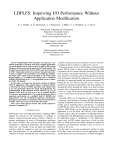 LDPLFS: Improving I/O Performance Without Application Modification S. A. Wright∗ , S. D. Hammond† , S. J. Pennycook∗ , I. Miller‡ , J. A. Herdman‡ , S. A. Jarvis∗ ∗ Performance Computing and Visualisation Department of Computer Science University of Warwick, UK Email: steven.wright@warwick.ac.uk † Scalable Computer Architectures/CSRI Sandia National Laboratories Albuquerque, NM ‡ Supercomputing Solution Centre UK Atomic Weapons Establishment Aldermaston, UK Abstract—Input/Output (I/O) operations can represent a significant proportion of run-time when large scientific applications are run in parallel and at scale. In order to address the growing divergence between processing speeds and I/O performance, the Parallel Log-structured File System (PLFS) has been developed by EMC Corporation and the Los Alamos National Laboratory (LANL) to improve the performance of parallel file activities. Currently, PLFS requires the use of either (i) the FUSE Linux Kernel module; (ii) a modified MPI library with a customised ROMIO MPI-IO library; or (iii) an application rewrite to utilise the PLFS API directly. In this paper we present an alternative method of utilising PLFS in applications. This method employs a dynamic library to intercept the low-level POSIX operations and retarget them to use the equivalents offered by PLFS. We demonstrate our implementation of this approach, named LDPLFS, on a set of standard UNIX tools, as well on as a set of standard parallel I/O intensive mini-applications. The results demonstrate almost equivalent performance to a modified build of ROMIO and improvements over the FUSE-based approach. Furthermore, through our experiments we demonstrate decreased performance in PLFS when ran at scale on the Lustre file system. Index Terms—Data Storage Systems, File Systems, High Performance Computing, I/O I. I NTRODUCTION Historically, much of the high performance computing (HPC) industry has focused on the development of methods to improve compute-processing speeds, creating a tendency to measure performance in terms of floating-point operations per second (FLOP/s). The result has been that many other contributors to application performance have developed at a slower rate. An example of this are input and output (I/O) activities which are required to read and store application data and checkpoints. As the performance of I/O systems continues to diverge substantially from compute performance, a number of projects have been initiated to look for softwareand hardware-based solutions to address this concern. One recent project of note is the Parallel Log-structured File System (PLFS) which is being actively developed by EMC Corporation, the Los Alamos National Laboratory (LANL) and their academic and industrial partners [1]. To date, PLFS has been reported to yield large gains in both application read and write performance through the utilisation of two well known principles for improving parallel file system performance: (i) through the use of a log-structured file system – where write operations are performed sequentially to the disk regardless of intended file offsets (keeping the offsets in an index structure instead); and (ii) through the use of file partitioning – where a write to a single file is instead transparently transposed into a write to many files, increasing the number of available file streams. Currently PLFS can be deployed in one of three ways: (i) through a File System in Userspace (FUSE) mount point, requiring installation and access to the FUSE Linux Kernel module and its supporting drivers and libraries; (ii) through an MPI-IO file system driver built into the Message Passing Interface (MPI) library; or (iii) through the rewriting of an application to use the PLFS API directly. These methods therefore require either the installation of additional software, recompilation of the MPI application stack (and, subsequently, the application itself) or modification of the application’s source code. In HPC centres which have a focus on reliability, or which lack the time and/or expertise to manage the installation and maintenance of PLFS, it may be seen as too onerous to be of use. In this paper we present an alternative method of using PLFS that avoids the need to rewrite applications, obtain specific file/system access permissions, or modify the applica- tion stack. Such a method will allow HPC centres to quickly and simply assess the impact of PLFS on their applications and systems. We call this solution ‘LDPLFS’ since it is dynamically linked (using the Linux linker ld) immediately prior to execution, enabling calls to POSIX file operations to be transparently retargeted to PLFS equivalents. This solution requires only a simple environment variable to be exported in order for applications to make use of PLFS – existing compiled binaries, middleware and submission scripts require no modification. Specifically, this paper makes the following contributions: • • • We present LDPLFS, a dynamically loadable library designed to retarget POSIX file operations to functions on PLFS file containers. We demonstrate its use with standard UNIX tools, providing users with an alternative method for extracting raw data from PLFS structures without the need for a FUSE file system; We demonstrate the performance of LDPLFS in parallel with respect to: the FUSE mounted alternative, the PLFS ROMIO file system driver and standard MPI-IO file operations without PLFS. Our study shows performance that is near identical to the PLFS ROMIO driver and greater than the PLFS FUSE file system, without the need for FUSE specific permissions; Finally, we utilise LDPLFS at scale on the 260 TFLOP/s Sierra cluster located at the Lawrence Livermore National Laboratory (LLNL), utilising two mini-applications designed for file system performance analysis. We show how LDPLFS can improve the performance of applications without requiring any modification to the system’s 