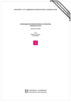 w w ap eP m e tr .X w UNIVERSITY OF CAMBRIDGE INTERNATIONAL EXAMINATIONS om .c s er Cambridge International Diploma in Business Advanced Level Scheme of Work 5173 Business Finance Core Module Introduction The overall programme comprises three core and six option modules: Core Option Business Organisation and Environment Effective Business Communication Business Finance Marketing Human Resources Management Interpersonal Business Skills Business Start-Up Customer Care Information and Communications Technology The modules have been chosen to reflect the key areas of business. It is important that in the delivery of each module, tutors appreciate that the programme is concerned with Skills and Knowledge. Students should be encouraged not only to demonstrate their knowledge but also their acquisition and development of complementary skills. The programme has four general aims that are designed to encourage the students to: · · · · understand key concepts of business apply acquired skills to real work situations think about and resolve business problems work independently using their initiative The over-riding objective of the programme is to prepare students either for employment or, if already in employment, for advancement. Employers expect those completing the Cambridge International Diploma in Business modules to be able to offer a working combination of skills and knowledge. The accompanying scheme of work focuses specifically around the skills and knowledge of each competence criterion and clearly they must form the essence of the delivery of the modules. Business Finance (5173) Advanced The overall aim of this module is to allow candidates to understand the significance of finance within the activities of business organisations. Tutors and candidates should therefore appreciate that there is likely to be some overlap with other modules within the International Diploma e.g. Business Organisation and Environment 5171. The cross- referencing of information/ideas between modules should be encouraged as it will promote positive reinforcement and will contribute towards a holistic approach towards the study of business. The assessment objectives of the Business Finance module may possibly be subdivided into two distinct groups: (a) Objectives 1.0 and 2.0 which deal in more general terms with the nature and availability of finance for business (b) Objectives 3.0, 4.0 and 5.0 which deal in more specific detail with the structure of the accounting framework and the methods and techniques employed to manage and control the financial affairs of business organisations. Although this distinction between the objectives may be useful in planning the delivery, and order of delivery of the module, there is likely to be considerable overlap between the competence criterion and associated skills and knowledge within the module. In developing exercises and activities to assist in the delivery of the objectives care should be taken to ensure that the tasks to be undertaken are not too broad or involve too many competence criterion. © CIE 2002 2 Tutors and candidates are urged to study closely the previous Examination papers for this module. Unlike many standard accounting papers, the Business Finance module contains a single case study scenario with a number of related compulsory tasks. The case study is designed to provide sufficient stimulus material to allow testing of objectives across the whole breadth of the module. The use of Case study exercises in this way is recommended to tutors, in addition to individual testing of competence criterion via distinct criterion exercises. It is important that the role of the Accountant and the various accounting processes are put forward as a positive influence on the activities of the organisation, rather than being seen as a limiting or restricting factor. Encouraging candidates to think positively about the control and monitoring of financial affairs enhances their understanding of the purpose of accounting and will help them to think in terms of the 'wider picture'. Centres are reminded that the module is designated as being of Advanced level and therefore candidates will be expected to be reflective and evaluative within their answers to the tasks set by the examiner. For example, they should think about how useful particular information is when making business decisions. Tutors are recommended to encourage this approach during the delivery of the module. Tutors and candidates need to be aware that in the final assessment process the 'own figure rule' will be applied. This ensures that candidates are not unduly penalised for making a single mistake when arriving at a solution to tasks. It is essential that candidates minimise the risk of losing marks by providing evidence of how they have arrived at their solutions, as marks will be available for the understanding of the process of problem solving, in addition to providing the correct answer. Tutors are recommended to stress the need to provide such evidence during the delivery of the module. Although there are no formal candidate entry requirements for the Diploma programme, it will be assumed that the candidates will have a background of achievement in literacy and numeracy skills. The lack of basic numeracy skills would present a barrier to progress in the Business Finance module and Centres might therefore wish to consider the introduction of a diagnostic numeracy exercise to assess individual candidate's abilities. The Scheme of Work The module is designed to be delivered over a period of 60 hours. The time allocation for the delivery of each assessment objective will be influenced by both the personal preferences of the tutor and the experience and capabilities of the candidates. Similarly, the order of delivery of the objectives cannot be prescribed to fit all circumstances. The Scheme of Work that follows should therefore be seen as an exemplar rather than a prescribed format, and is very much th
