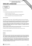 w ap eP m e tr .X w ENGLISH LANGUAGE w Cambridge Advanced International Certificate of Education 0396 English Language June 2011 Principal Examiner Report for Teachers om .c s er Paper 0396/11 Composition Key Messages It is recommended that to secure higher marks candidates pay particular attention to: • planning the development of their writing • avoiding more predictable or derivative plots (Section A) and ideas (Section B) • using a tone appropriate to the type of writing specified by the question. General Comments Some very able writing was in evidence: original, thoughtful and perceptive work was seen by Examiners. At the higher end of the range, there was skilful use of descriptive elements and structure in responses to Section A and cogent, well exemplified argument in responses to Section B. At the lower end of the range, it was most often lapses in technical areas and expression that limited the marks that could be awarded. In the main, candidates made real efforts to meet the prescribed task, but a number needed to address the question focus and consider more carefully the nature of the guidelines of the task (as shown in words such as ‘character and motivation’, ‘setting’, ‘mood’, ‘mystery’ or ‘suspense’; or a prescribed structure: e.g. opening to a novel or short story). Audience and purpose sometimes needed to be more convincing in Section B. Tone would be a particularly useful area to address and focus upon in classroom practice for such tasks. A significant number of candidates produced work that was well short of the lower word limit. Comments on Specific Questions Section A Question 1 There were some very effective answers where responses captured the mood and setting very imaginatively, often using the present tense. There was often a fusion of descriptions of people – usually opposing sets of fans – and places. The better answers brought out vivid contrasts; less effective answers tended to make the second piece simply the negative image of the first piece (‘There were cars….There were no cars’). Less effective answers seemed to offer a narrative rather than descriptive approach, with the writer at the centre, offering too narrow a perspective. In such answers there was often a tendency towards formulaic structures: steady build-up of expectations in the arriving crowd (sometimes a focus on participants, too) in the first piece, contrasting emotions of the winning and losing sides and their supporters in the second piece. These tended to be stronger on ‘mood’ than ‘place’. 1 © 2011 Cambridge Advanced International Certificate of Education 0396 English Language June 2011 Principal Examiner Report for Teachers Better answers included first and third person narratives, with third person sometimes a more appropriate choice, as this could give the narratives greater range with settings. When approached with imagination, this task produced some excellent descriptions based on detailed sensory perceptions. Question 2 This question allowed candidates to offer imaginative and carefully constructed narrative elements combined with a sense of character and motivation. The most successful answers did this very well indeed; some answers were genuinely entertaining and intriguing. Less successful ones needed to show some sense of planning and direction. Sometimes those did not make ‘deception’ the hinge. Some candidates ignored the question wording and wrote about a character being motivated generally. There was an impressive mix of first and third-person narration and a range of character types, jilted lovers, duped espionage agents and mistrusting offspring of secretive parents being the most prevalent. The title certainly lent itself to some tense, atmospheric openings culminating in cliff-hangers or the introduction of problems promising further confrontation and misunderstandings. Less effective answers tended to focus on stitched-up spies out for revenge only, with little character development and over-reliance on dialogue. A number of plots were based on somewhat cliched ideas of sentimental love stories, which worked well if carefully and engagingly handled but which often descended into unoriginal and predictable outcomes. The problem in some scripts was that deception was not clear until the end and/or very contrived: a story not building character or motivation but something totally unrelated until the end. Question 3 This was the most popular narrative choice. The title produced a full range of responses – from the atmospheric to the mundane. Most responses developed the idea of a threatening presence in the forest. Effective compositions created a mysterious, at times gothic, ambience and sustained this approach throughout; others produced a less effective focus of the Hansel and Gretel type, or unloaded narratives which seemed rather random in their direction and credibility. Stronger responses were carefully crafted with a well-managed climax. A number of candidates wrote thirdperson narratives where the employment of the omniscient narrator allowed some explication of a suspenseful situation whilst describing a mysterious locale. Equally, when the first-person was used it made for a genuine build-up of mystery and fear, due to the restricted perspective and limited knowledge of the main character. The best answers used the forest to intrigue, leaving the reader to want to know more about the characters and the situation. Less effective responses tended to list a series of events, some of which were quite unconvincing. Quite a few forgot they were writing with the forest as the main title. Several thought that if the final sentence mentioned it they were covered. On the other hand some relied, unhelpfully, on simply offering descriptions of a forest as though that were a means to an end: simple, sometimes effective, descriptions were delivered but did not invite the reader to sense the next chapter or the novel as a w