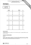 w w m e tr .X w Cambridge International General Certificate of Secondary Education 0443 Physics (US) June 2013 Principal Examiner Report for Teachers ap eP PHYSICS om .c s er Paper 0443/13 Multiple Choice Question Number Key Question Number Key 1 2 3 4 5 B B A D B 21 22 23 24 25 C A A D A 6 7 8 9 10 B A C C D 26 27 28 29 30 B B C C D 11 12 13 14 15 C B D A B 31 32 33 34 35 B A D D C 16 17 18 19 20 C C D D B 36 37 38 39 40 C B D C C General comments Candidates performed best in questions 2, 5, 8, 10, 15, 32, 33 and 38. The greatest difficulty was with questions 12 and 34. Comments on individual questions Question 1 Although a sizeable majority of responses to this measuring cylinder question were correct, a significant number of chose C. Possibly they judged by eye how many extra cubes would fit into the cylinder, or they failed to read the question carefully and included the cube already there. 1 © 2013 Cambridge International General Certificate of Secondary Education 0443 Physics (US) June 2013 Principal Examiner Report for Teachers Question 3 A number of candidates opted for D here, despite this distractor including the phrase ‘at constant speed’. These candidates probably did not realise that a car that is slowing down is accelerating, albeit negatively, so rejected option A, which was the key. Question 6 This question on resultant force and acceleration was generally well answered, although distractor C was chosen quite commonly. These candidates failed to add the two resistive forces and then realise that their total was less than the force from the engine. Question 11 The most common error here was caused by a lack of understanding that the useful work done by the escalator and the lift was the same in each case. Question 12 This question concerned the simple barometer, and candidates needed to be aware that the difference in liquid levels could be used to find the atmospheric pressure. A significant number opted for C, failing to appreciate that the lower level was not zero. Question 20 Many candidates were not aware that television pictures are transmitted from satellites to Earth using microwaves. The syllabus gives this as one of several specific examples of uses of electromagnetic waves. Question 25 This question concerned the magnetisation of iron rods inside a solenoid. The most common mistake was to think that reversing the battery connections would cause the rods to repel, whereas before the change they had attracted. Question 26 In any question involving echoes students must always take care that they have considered the time taken for the sound to travel out and return to its source, and many failed to do so here. Question 29 A significant number of candidates chose D in this question, not realising that a thin wire would have a higher resistance than an otherwise similar thick wire. Question 34 All distractors were popular in this question on fuses, with option C attracting more candidates than the key (D). It was explained that the lamp was not faulty, so the wrong choice of fuse would not be apparent and the lamp would work normally. The point is that a fuse that is rated too highly for a particular purpose is a hidden danger. 2 © 2013 Cambridge International General Certificate of Secondary Education 0443 Physics (US) June 2013 Principal Examiner Report for Teachers PHYSICS Paper 0443/23 Core Theory Key Messages Apart from basic matters of learning, there were two further aspects where candidates could have improved their performance. Candidates should concentrate on answering the question just as it has been asked. Marks are only awarded for the specific answers required, not for comments on related matters or a general discourse about the situation. In calculations, candidates must set out and explain their working correctly. If poor or no working is shown by the candidate and it leads to the correct answer, the Examiner may be able to give credit due to the merit of the work. However, when a candidate gives a wrong final answer and no working is shown, it is often impossible for the Examiner to give due reward for those parts that are correct. General Comments A high proportion of candidates had clearly been well taught and prepared for this paper. There remains the tendency to think less rigorously and logically in non-numerical questions than in numerical questions. Equations were generally well known by better and by slightly below average candidates but many struggled when required to rearrange the equations. Often candidates had been well taught how to apply their knowledge and understanding to fairly standard situations. On occasions, when asked to apply their knowledge to a new situation, they could become confused and display a lack of breadth of understanding. More practice in applying knowledge and understanding in unfamiliar situations would deepen candidates’ understanding and improve their marks in the examination. Failure to read the question carefully and the subsequent omission of part of an answer was a major factor in weaker candidates losing marks. The majority of candidates indicated by their knowledge and skills that they were correctly entered for this Physics Core paper. However, a significant minority of candidates found the subject matter and level of some questions very easy and so accessible to them that they would have been better entered for the Extended Theory paper. The English language ability of the vast majority of the candidates was adequate for the demands of this paper. However, there was a small minority, who struggled to express themselves adequately. Comments on specific questions Question 1 (a) (i) The majority of candidates correctly calculated the time. However, a significant number made errors including adding the two times. (ii) Most candidates gained full credit. Candidates were not penalised again for any mistakes carried forward from (a)(i). (b) (i)(ii) Most candidates correctly read the volume and divided b